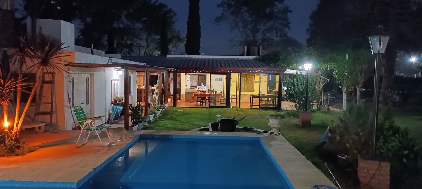 Casa impecable dispuesta en una planta sobre terreno parqueado de 2.500 m2 (5 lotes) con gran arboleda añosa. Propiedad totalmente alambrada. Con doble ingreso. Consta de 3 dormitorios con camas matrimoniales y otro dormitorio con 4 cuchetas, 2 baños completos, cocina y comedor, living/estar, quincho de invierno cerrado con estructura de aluminio y vidrio, quincho de verano con horno de barro y asador a la estaca, piscina con solárium, ambiente para huéspedes con camas y baño privado y aire acondicionado (apto también como tercer dormitorio). Cuarto de herramientas con tractor cortacésped y herramientas de corte. Cochera techada para dos vehículos con doble ingreso y luminarias. Parque con gran arboleda, césped y cancha de fútbol con luminarias. La propiedad se encuentra íntegramente cerrada con alambrado olímpico y cuenta con servicios de luz, gas natural, TV por cable, internet fibra óptico y alarmas. La propiedad se alquila amoblada íntegramente en todos sus ambientes con todos los requerimientos para su inmediata habitación (camas con colchones, cocina industrial, horno pizzero, heladera con frezzer, microondas, lavarropas y demás artefactos domésticas, 3 TV Leds, 3 aires acondicionados f/c, 2 hogares para calefacción con gas natural, placares, mesas, sillas y vajillas etc.) y alarma. Excelente ubicación a 50 metros de ruta 21 y a pocos metros del río. Cerca del Camping Municipal y bajada al río. Barrio residencial, zona de los countries: Bahìa, Campos de Esther y Gimnasia y Esgrima (GER Pueblo Esther). El TERRENO es apto para el desarrollo comercial y/o uso familiar (optativo). NO POSEE GASTOS CENTRALES, EXPENSAS NI COMISION de INMOBILIARIA. Contrato mínimo por 3 años, uso Familiar: U$S 1.200/mes, sin gastos centrales. Garantías: únicamente a través de Seguro de Caución. Para Uso comercial: consultar. Contacto solo por WhatApp:+5493415496881
