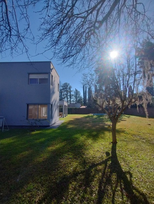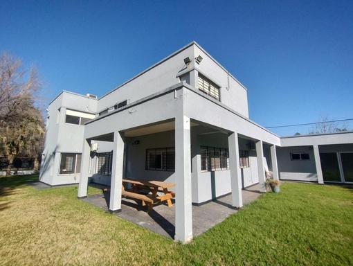 Casa de 5 Dorm. en Funes. Propiedad de dos plantas ubicada sobre calle MIGUEL CANE esquina Lugones.- Migue Cane 4280 en la ciudad de FUNES, garita 14, A metros de la Ruta 9, donde se visualiza el comercio de Mueblería y Ferretería.- Casa moderna, con ingreso a patio seco y en su lateral el parquizado con plaza infantil, luminosa, con grandes ambientes, de 440 m2 desarrollados en dos plantas. Planta baja compuesta por un amplio living comedor con hogar a leños, cocina comedor diario con cocina y horno empotrado, lavadero independiente con salida a un patio interno el cual también tiene acceso a la cochera, un dormitorio, comodín, baño social. Espacios de guardado. Escalera de porcelanato con barandas de vidrio para acceso a la planta alta, en la cual se desarrollan cuatro dormitorios; dos de ellos en suite, escritorio, baño completo a compartir por los otros dormitorios, espacio de guardado en sector de uso común. Toda la planta posee pisos flotantes con ventanales que le otorgan aireación e iluminación.- Quincho con parrillero, ventiladores de techo, mesada con bajomesada y grifería.- Espacio de guardado.- Baño.- Cuarto de huésped, Puertas vidriadas con salida al parquizado donde se encuentra piscina y sector de Bombas. La propiedad cuenta con Alarma, rejas en todas sus aberturas, cortinas roller, aires acondicionados frio, ventiladores de techo, persianas de enrollar en dormitorios, calefacción tiro balanceado. Garaje para dos vehículos. (2387870 / 3417477300).