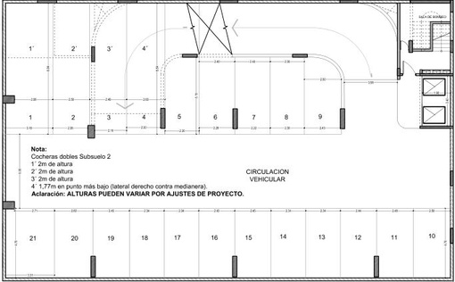 Cochera Doble de 21m2 en subsuelo. Acceso a la misma por rampa de Hormigón armado. Ingreso por porton electrico de acceso independiente. GENERALIDADES: Edificio compuesto por dos niveles de subsuelo para estacionamiento de vehículos y 6 pisos exclusivamente de oficinas para múltiples usos comerciales. UBICACIÓN: Proyecto emplazado en una ubicación excepcional del centro, donde encontramos a escasos pasos la Bolsa de Comercio de Rosario y de entidades bancarias, locales comerciales de toda índole, locales gastronómicos, Sanatorio Británico y espacios verdes. TERMINACIONES: -Control contra incendios, Sistema aspersores contra-incendio, Portón automático para las cocheras, Barrera automática para rápido acceso, Ascensores de última generación, Generador propio, Sistema de control de cámaras por piso/en ingresos. Para concretar una entrevista, visitar el departamento o recibir más información podés contactarnos al (0341) 558 1414 / 558 8888, escribinos por WhatsApp 3416 77-3093