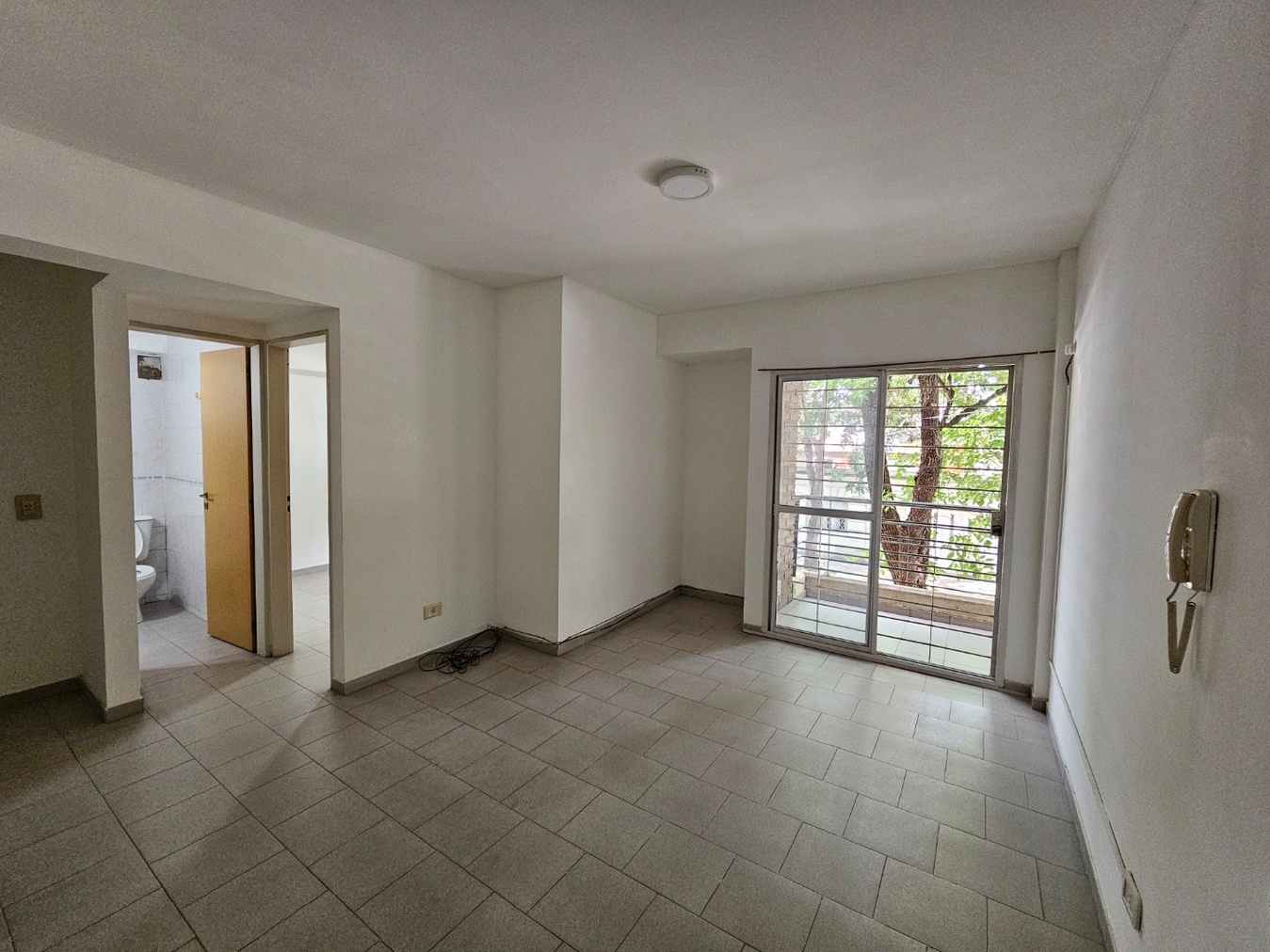 Edificio de escalera Piso 1 Departamento de un dormitorio, estar comedor con cocina integrada, dormitorio con placard, baño, balcón externo con rejas Contrato por dos años, actualizado cuatrimestralmente. Requisitos: - 1 garantía propietaria y dos recibos de sueldo - 2 Garantías propietarias. No solicitamos deposito en garantía
