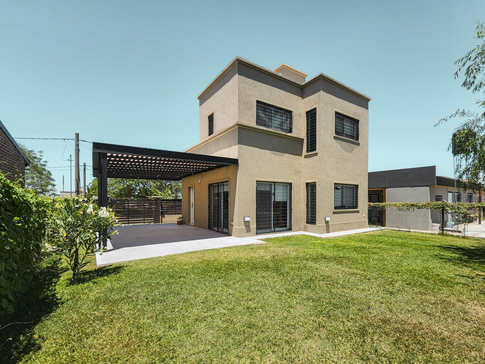 Casa desarrollada en 2 plantas con 2 dormitorios, jardín y pileta, en Barrio Las Tardes, Roldan. Ingreso principal a un amplio ambiente conformado con estar comedor, con amplios ventanales y vista al jardín; cocina semi integrada con barra separadora con vista al frente de la propiedad, baño completo. Planta alta: Baño principal, 2 dormitorios y un balcón terraza (posibilidad de realizar un 3º dormitorio). Área exterior: cochera cubierta para 1 vehículo con portón corredizo. Amplio jardín con pileta recientemente colocada con bomba y filtro en perfecto funcionamiento. Calidad moderna con una cocina totalmente equipada con mesada de granito negra, bacha doble de acero inoxidable con grifería mono comando, bajo mesadas y alacenas, espacio técnico para heladera y lavarropas. Baños con artefactos línea Roca, baño de planta baja con ducha y baño de planta alta con bañera, ambos con ventilación e iluminación natural. Pisos de porcelanato en espacio social y flotante en dormitorios, aberturas de aluminio con vidrio blindex, cortinas tipo rollers black-out, mosquiteros y rejas colocadas. Placares completos con interiores colocados. Preinstalación de aire acondicionado en todos los ambientes y picos de gas para colocación de estufas. Apliques de luces colocados. Tanque de agua en altura con bomba de presión. Agua caliente por termotanque a gas. • Ubicación: Con un acceso rapidísimo, en la intersección de la AO12 con ruta 9, se encuentra barrio las tardes, una localización perfecta para vivir o descansar de la ciudad. • Proyecto: Barrio residencial abierto con 30 manzanas consolidadas con muchas viviendas desarrolladas y varias en desarrollo. Esta propiedad se encuentra desarrollada en una sola planta de dos dormitorios, con jardín y pileta. El barrio cuenta parques con gran forestación y un lago artificial sector de deportes y eventos. • Observación: Entrega inmediata. Venta en Efectivo. Terreno de 578.5m² con 13 metros de frente por 45.5 metros de fondo. No es apto credito NOTA: Las medidas informadas incluyen el 50% de los muros medianeros y el 100% de los muros interiores. Todas las fotos publicadas son propiedad intelectual de Vanzini Black S.A. No es permitida su utilización comercial. Las medidas y superficies expuestas son estimativas y a corroborar con sus respectivos planos y títulos. La publicación de este inmueble es a solo título informativo, la venta de la propiedad está supeditada a que el propietario cumplimente el trámite ante la AFIP para la obtención del Número de COTI correspondiente. La información no es contractual. Si querés saber el valor de tu propiedad, contactate con nosotros y tasamos tu propiedad en 48hs.