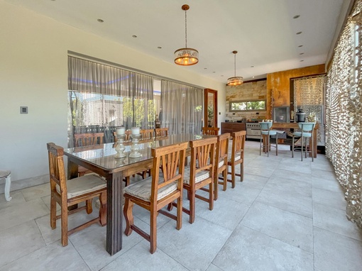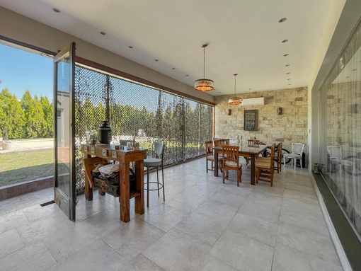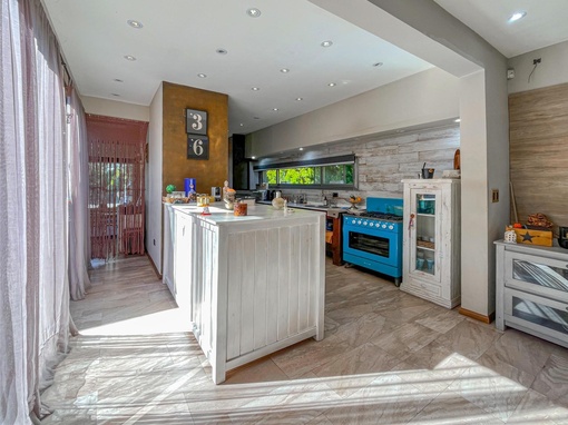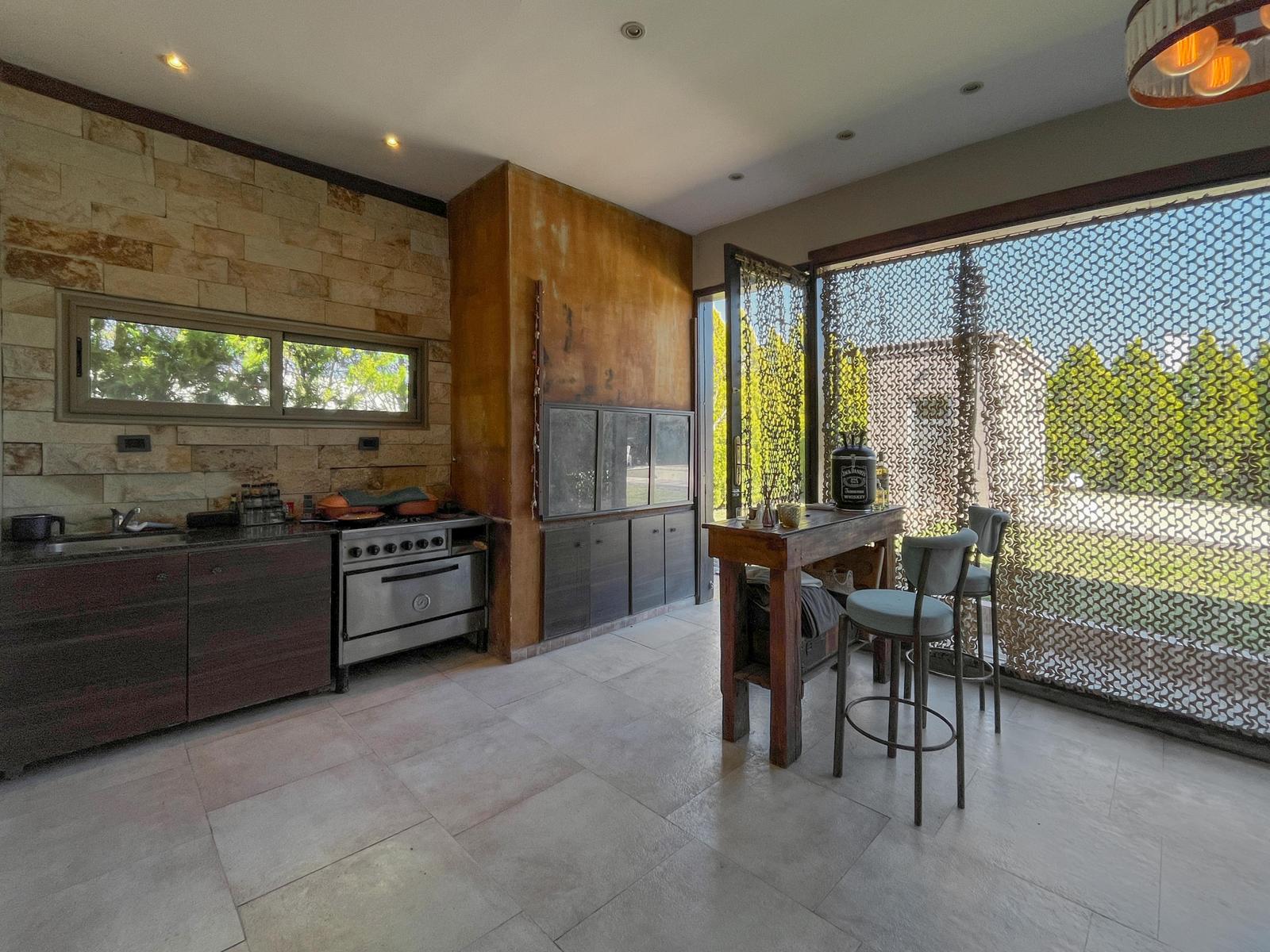 Propiedad de 3 dormitorios desarrollada en una sola planta. Al frente, amplio espacio de cocheras para dos vehículos. Ingreso mediante hall distribuidor con vistas a un patio central de invierno que aporta gran luminosidad a toda la propiedad. Toilette de servicio. Cocina integrada al living-comedor con vistas hacia la galería cubierta. Tres dormitorios con placares, uno de ellos en suite con vestidor, y un baño completo con ducha. La galería está cerrada con Blindex polarizado y cuenta con parrilla, cocina industrial con hornallas y horno. En el jardín, cuarto de guardado, un baño adicional y piscina climatizada. El cerco vivo está completamente forestado, brindando máxima privacidad. La propiedad cuenta con detalles en piedra Bariloche en varias paredes, terminaciones en yeso en otras, techos con molduras y luces dicroicas. Los pisos son de porcelanato y las aberturas combinan aluminio y madera. Sistema de calefacción por radiadores, preinstalación de aire acondicionado, agua caliente por termotanque a gas y tanque de agua elevado. • Ubicación: Puerto Roldán, en la localidad de Roldán, muy próximo a Rosario. Excelente accesibilidad por la Autopista Rosario-Córdoba a la altura del kilómetro 313. Ubicación estratégica en un entorno residencial ideal tanto para vivienda permanente como de fin de semana. • Observación: Lote perimetral. Terreno amplio de 950m² (21,48m por 45,80m apropiadamente). Con escritura y apto crédito. Se analiza permuta por departamento de 2 dormitorios en zona Pichincha. Nota: Las medidas informadas incluyen el 50% de los muros medianeros y el 100% de los muros interiores. Todas las fotos publicadas son propiedad intelectual de Vanzini Black S.A. No se permite su uso comercial. Las medidas y superficies son estimativas, sujetas a verificación con planos y títulos correspondientes. La publicación de este inmueble es meramente informativa; la venta está supeditada a que el propietario complete el trámite ante AFIP para la obtención del número de COTI. Si querés saber el valor de tu propiedad, contactate con nosotros y tasamos tu propiedad en 48hs.