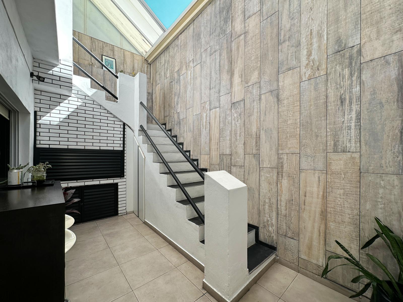 Casa al frente de 3 dormitorios más comodín o 4 dormitorios, con cochera y totalmente reciclada. Ingresamos a través de una amplia cochera con portón automático, que además permite el acceso directo a un dormitorio en planta baja, actualmente utilizado como consultorio. En este nivel también encontramos un baño completo, equipado con loza sanitaria, vanitory y ducha con receptáculo. A través de un pasillo accedemos a un espacioso living comedor, cómodo y muy luminoso, con pisos de porcelanato español importado y aberturas de PVC con DVH, que garantizan excelente aislación. La cocina se presenta semi integrada, con mobiliario completo de alacenas y bajo mesada, cocina a gas con extractor, doble bacha de acero inoxidable con grifería mono comando y espacios definidos para heladera, lavarropas y calefón. Desde el área social salimos a un patio interno cerrado, con techo rebatible, sector de parrilla y práctico espacio de guardado bajo escalera. Desde aquí se accede a la planta alta. En planta alta se desarrolla el sector íntimo, compuesto por un amplio baño completo con bañera y mampara, seguido de tres dormitorios de generosas dimensiones: uno con placar integrado y los otros dos con placares empotrados. Todos los ambientes cuentan con excelente iluminación natural, aberturas de PVC con blackout incluidos y climatización mediante equipos de aire acondicionado split frío/calor. La propiedad ha sido reciclada en su totalidad, incluyendo cañerías de agua, gas y el sistema eléctrico, lo que garantiza confort y tranquilidad a futuro. Calefacción a gas. Tanque de agua. • Ubicación: En pleno Barrio Echesortu, próximo al Club Plaza Jewell y al patio de la madera, zona ideal de vivienda. • Proyecto: Casa en 2 plantas con 3 dormitorios mas comodín, patio interno, terraza y cochera. • Observación: Escrituración inmediata. Terreno de 7,42 metros por 12 metros aproximadamente. Cuenta con cochera. No es PH. Reciclada en 2025. No es apto crédito, finalizando un crédito hipotecario. Plano de mensura desactualizado (1972). • NOTA: Las medidas informadas incluyen el 50% de los muros medianeros y el 100% de los muros interiores. Todas las fotos publicadas son propiedad intelectual de Vanzini Black S.A. No es permitida su utilización comercial. Las medidas y superficies expuestas son estimativas y a corroborar con sus respectivos planos y títulos. La publicación de este inmueble es a solo título informativo, la venta de la propiedad está supeditada a que el propietario cumplimente el trámite ante la AFIP para la obtención del Número de COTI correspondiente. La información no es contractual. Si querés saber el valor de tu propiedad, contactate con nosotros y tasamos tu propiedad en 48hs.