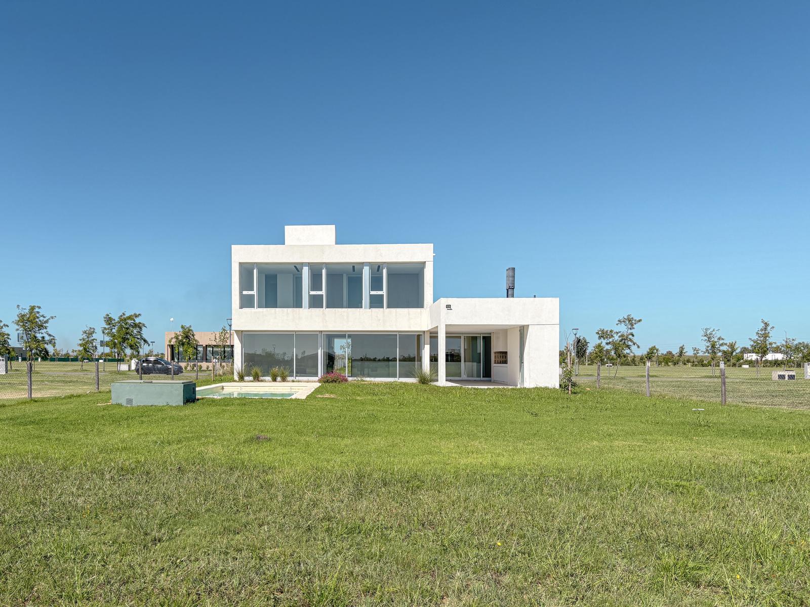 Hermosa casa de 4 dormitorios con jardín y pileta en Country Vida Club de Campo, sobre un lote de 1040m² con fondo norte. Propiedad de diseño desarrollada en dos plantas. Ingreso principal a hall de recepción con una imponente escalera de madera natural. Sector social compuesto por un amplio living-comedor, con posibilidad de independizarlo, que se conecta con la cocina totalmente equipada con una gran isla central y mobiliario completo, amplio ambiente con ventanales de piso a techo con vista despejada al jardín, lo cual brinda mucha luminosidad, amplitud y conexión con el área exterior. Junto a la cocina, encontramos un lavadero independiente y un depósito. En planta baja se desarrolla un dormitorio con placar y un baño completo. Jardín con pileta y galería semicubierta con parrillero, mesada, espacio de guardado, baulera, además de un baño exterior. En planta alta se encuentran 3 dormitorios, el principal con vestidor y baño en suite y los otros 2 dormitorios cuentan con placares completos con interiores, comparten un baño con ante baño; todos cuentan con vista despejada hacia el jardín. La propiedad incluye cochera semicubierta para tres vehículos, con acceso de cemento alisado y espacio de guardado. Terminaciones de alta calidad, pisos de porcelanato de primera línea, aberturas de aluminio con doble vidrio hermético y mosquiteros, mesadas de Silestone y Dekton, griferías mono comando FV, sanitarios Ferrum y un equipamiento de cocina premium con horno eléctrico, anafe vitrocerámico y extractor de acero inoxidable de diseño circular. La calefacción es por radiadores con caldera dual y termostato. Preinstalación para A/A. • Proyecto: Vida Club de Campo, cuenta con 135 hectáreas totales, contará con servicios de agua potable, luz, cloacas, calles asfaltadas e iluminadas, cable e internet. Áreas recreativas, deportivas, y comerciales, 2 canchas de tenis, una cancha de futbol 5, 2 piscinas (para adultos y para niños), solárium con mobiliario, juegos infantiles con arenero y equipamiento de exteriores. El Club House tendrá un bar restaurante, una sala de lectura, áreas administrativas, vestuarios y 2 quinchos. El acceso al predio será por Av. Arturo Illia, y contará con un sector comercial que separa dicha calle, del barrio. Con una superficie de 50.000 m2, el área comercial albergará supermercados, locales comerciales y oficinas, rodeadas de espacios verdes y del estacionamiento. • Ubicación: El ingreso al barrio será por Av. Arturo Illia, y contará con un sector comercial que separa dicha calle, del barrio. • Observación: Lote no perimetral. Entrega inmediata. Casa a estrenar, año 2026. Terreno de 1040m². Cuenta con cocheras para 3 autos semicubierta. NOTAS: Todas las fotos publicadas son propiedad intelectual de Vanzini Black S.A. No es permitida su utilización comercial. Las medidas y superficies expuestas son estimativas y a corroborar con sus respectivos planos y títulos. La publicación de este inmueble es a solo título informativo, la venta de la propiedad está supeditada a que el propietario cumplimente el trámite ante la AFIP para la obtención del Número de COTI correspondiente. La información no es contractual. Si querés saber el valor de tu propiedad, contactate con nosotros y tasamos tu propiedad en 48hs. Si querés saber el valor de tu propiedad, contactate con nosotros y tasamos tu propiedad en 48hs.