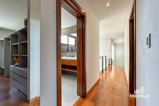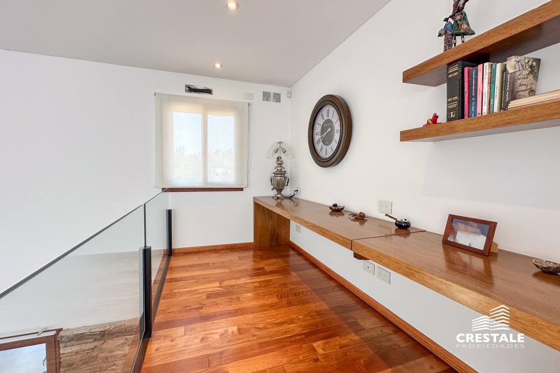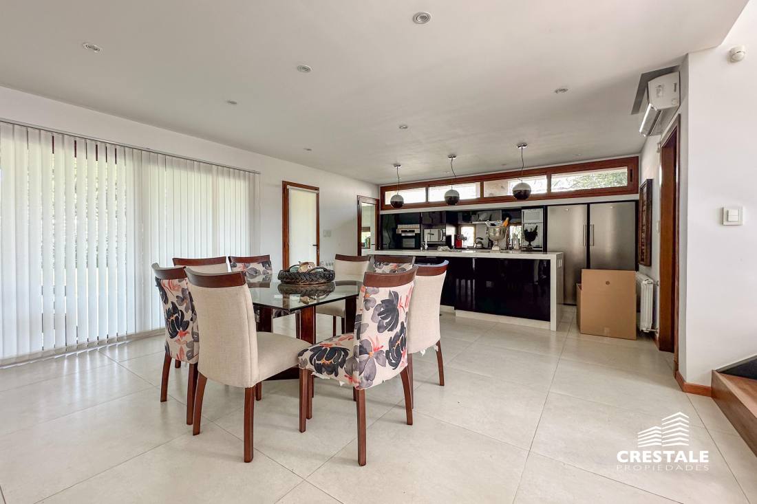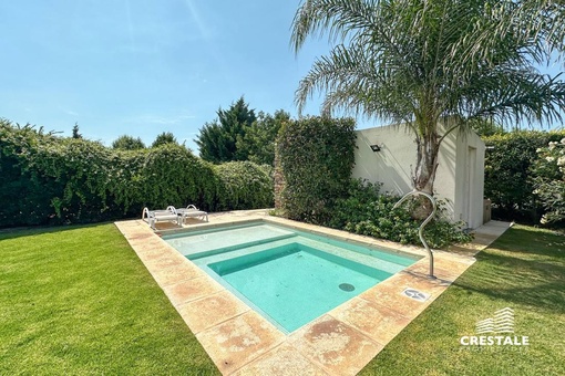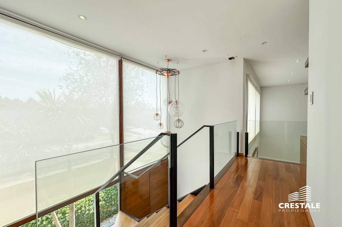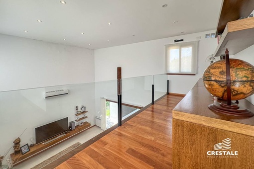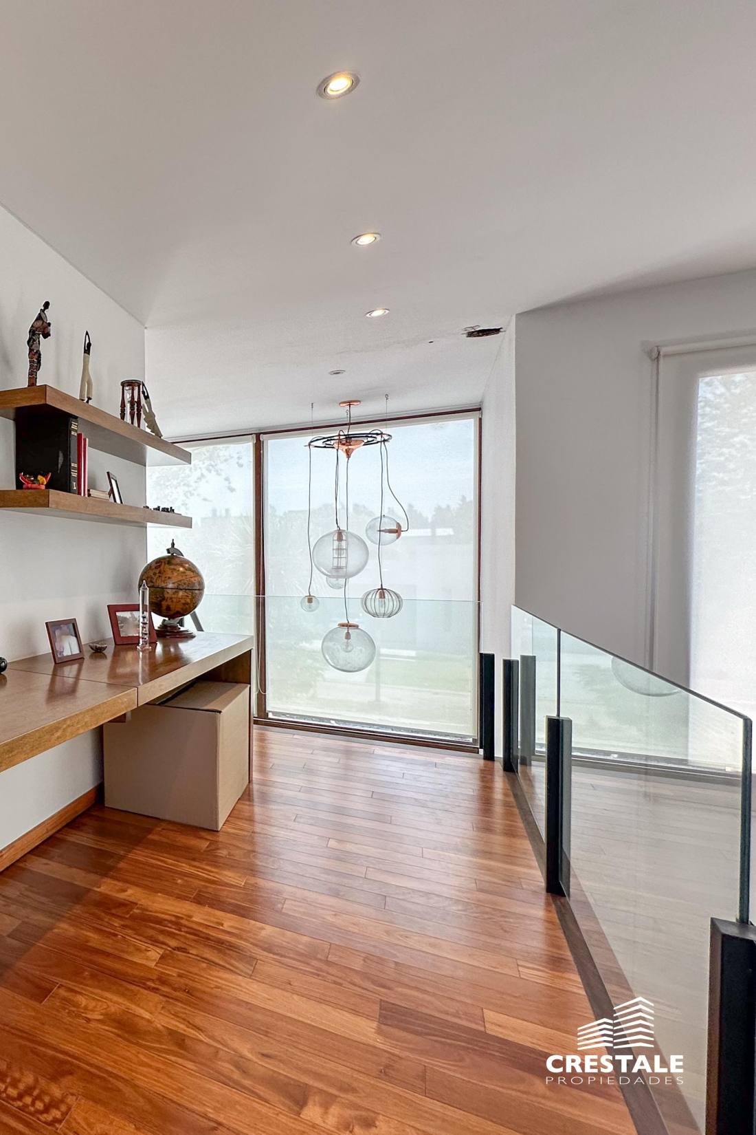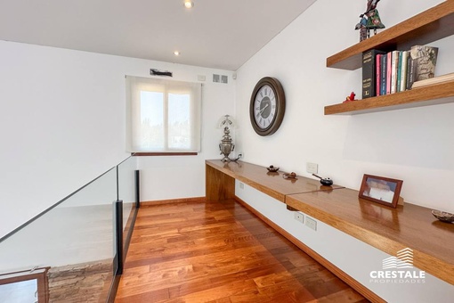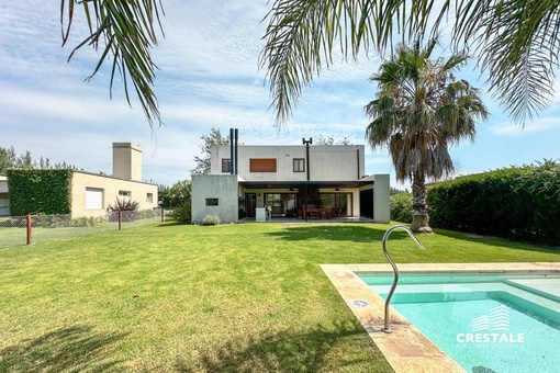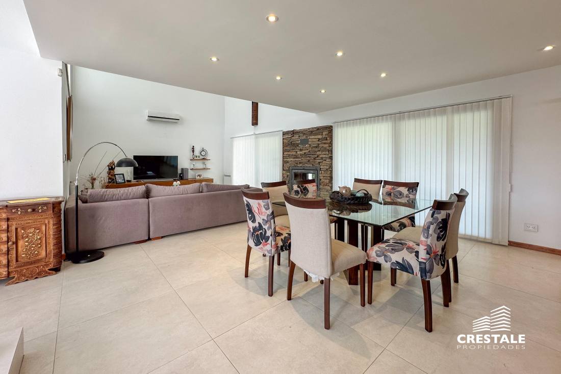 Propiedad desarrollada sobre un lote ubicado en el boulevard principal del barrio, con orientación frente Norte y fondo Sur, destacándose por su excelente calidad constructiva, diseño funcional y óptimo estado de mantenimiento. La vivienda se organiza en dos plantas. En planta baja, se accede a un amplio living comedor de doble altura, con excelente ingreso de luz natural. Cuenta con hogar / salamandra de doble frente, funcional tanto hacia el interior como hacia la galería. La cocina se presenta integrada, con generosos espacios de guardado. En este nivel se dispone además de un dormitorio versátil, ideal como escritorio o habitación de huéspedes, un baño completo, lavadero independiente y cochera cubierta para dos vehículos. En planta alta, se desarrolla el sector íntimo con el dormitorio principal en suite, con vestidor y baño completo, y un espacio comodín actualmente utilizado como área de trabajo o estudio. La propiedad posee estructura prevista para una futura ampliación, permitiendo generar fácilmente un tercer dormitorio. El sector exterior ofrece una galería cubierta equipada con parrillero y horno a gas, jardín totalmente parquizado con riego automático, piscina con sistema de filtrado completo, baño exterior y cuarto de guardado. La casa incorpora sistemas de climatización por radiadores mediante caldera dual, equipos de aire acondicionado instalados y un sistema de energía solar (actualmente a reacondicionar) destinado a abastecer bomba de agua y luminarias. Tratamiento de impermeabilización profesional realizado recientemente en techos.Todos los metros cuadrados se encuentran debidamente regularizados. Nota: posibilidad de venta completamente amueblada (consultar valor). Barrio Privado Aguadas se encuentra estratégicamente ubicado sobre la Autopista Rosario–Córdoba, con ingreso por calle Hipólito Yrigoyen, consolidándose como uno de los desarrollos residenciales más reconocidos de Funes. Implantado sobre un predio de aproximadamente 30 hectáreas y conformado por solo 234 lotes, ofrece un entorno de baja densidad, privacidad y tranquilidad, con excelente conectividad hacia Rosario y el centro de Funes. El barrio cuenta con infraestructura completa, incluyendo gas natural, agua corriente, red de cloacas y tendido subterráneo de servicios. Dispone de seguridad permanente con control de accesos, vigilancia 24 hs y monitoreo perimetral. Entre sus espacios comunes se destacan el Club House, quinchos, piscinas climatizada y exterior, gimnasio, mini market, canchas deportivas y amplias áreas verdes pensadas para la vida familiar. Código web: CHO7681896