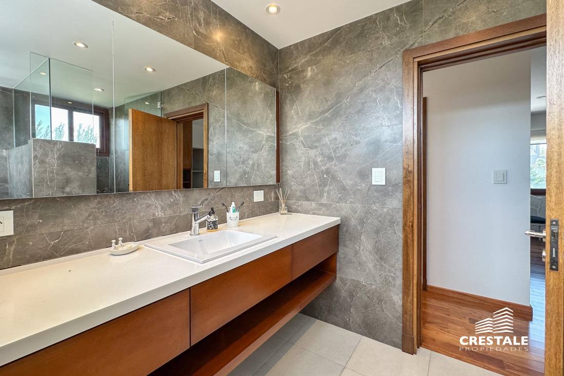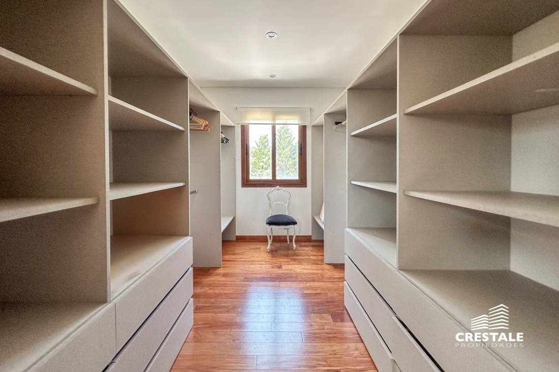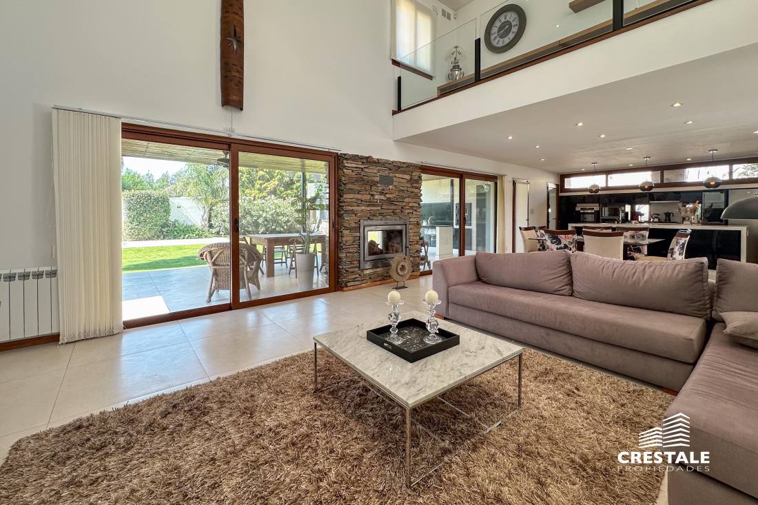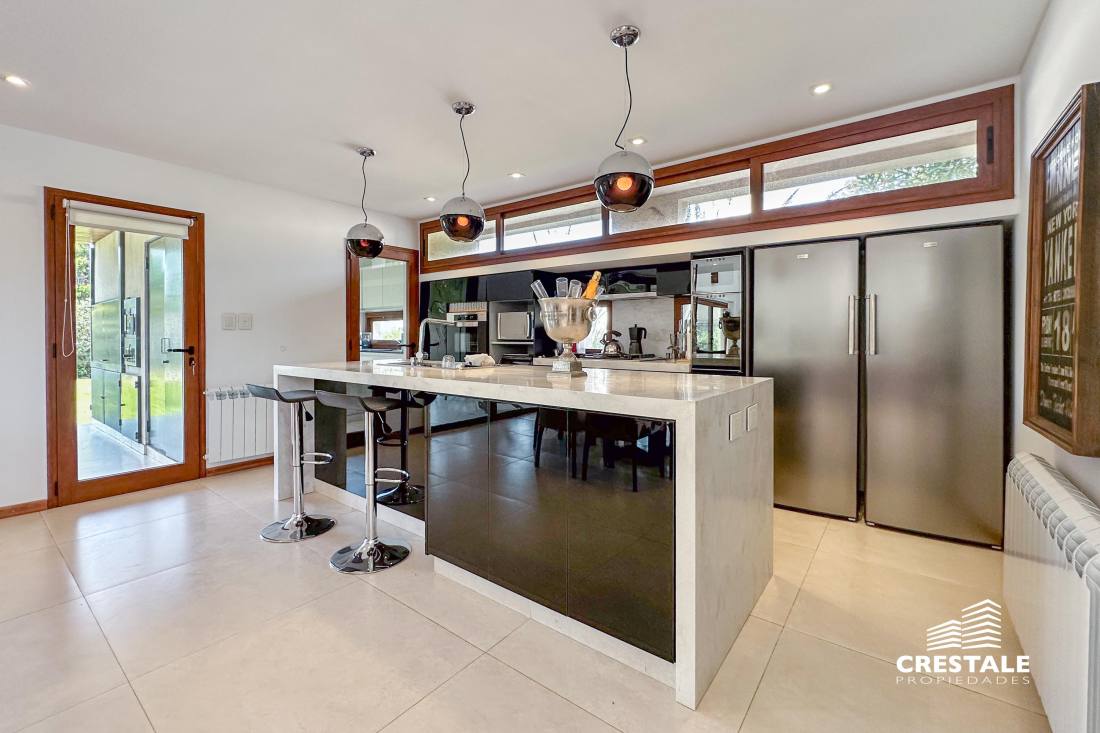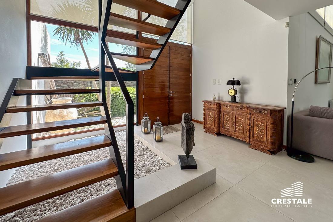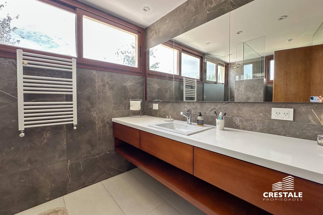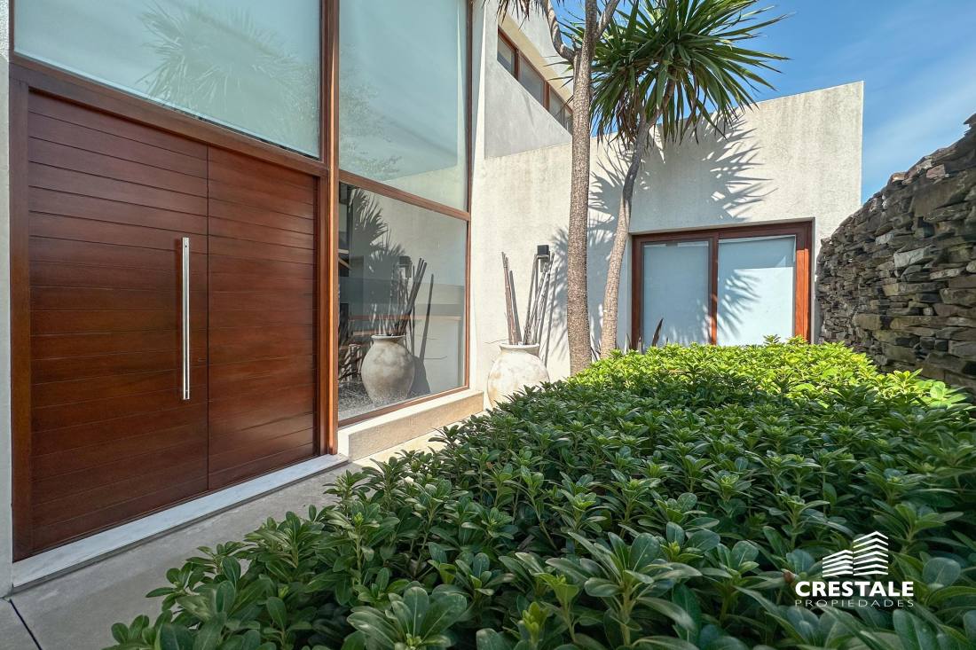 Propiedad desarrollada sobre un lote ubicado en el boulevard principal del barrio, con orientación frente Norte y fondo Sur, destacándose por su excelente calidad constructiva, diseño funcional y óptimo estado de mantenimiento. La vivienda se organiza en dos plantas. En planta baja, se accede a un amplio living comedor de doble altura, con excelente ingreso de luz natural. Cuenta con hogar / salamandra de doble frente, funcional tanto hacia el interior como hacia la galería. La cocina se presenta integrada, con generosos espacios de guardado. En este nivel se dispone además de un dormitorio versátil, ideal como escritorio o habitación de huéspedes, un baño completo, lavadero independiente y cochera cubierta para dos vehículos. En planta alta, se desarrolla el sector íntimo con el dormitorio principal en suite, con vestidor y baño completo, y un espacio comodín actualmente utilizado como área de trabajo o estudio. La propiedad posee estructura prevista para una futura ampliación, permitiendo generar fácilmente un tercer dormitorio. El sector exterior ofrece una galería cubierta equipada con parrillero y horno a gas, jardín totalmente parquizado con riego automático, piscina con sistema de filtrado completo, baño exterior y cuarto de guardado. La casa incorpora sistemas de climatización por radiadores mediante caldera dual, equipos de aire acondicionado instalados y un sistema de energía solar (actualmente a reacondicionar) destinado a abastecer bomba de agua y luminarias. Tratamiento de impermeabilización profesional realizado recientemente en techos.Todos los metros cuadrados se encuentran debidamente regularizados. Nota: posibilidad de venta completamente amueblada (consultar valor). Barrio Privado Aguadas se encuentra estratégicamente ubicado sobre la Autopista Rosario–Córdoba, con ingreso por calle Hipólito Yrigoyen, consolidándose como uno de los desarrollos residenciales más reconocidos de Funes. Implantado sobre un predio de aproximadamente 30 hectáreas y conformado por solo 234 lotes, ofrece un entorno de baja densidad, privacidad y tranquilidad, con excelente conectividad hacia Rosario y el centro de Funes. El barrio cuenta con infraestructura completa, incluyendo gas natural, agua corriente, red de cloacas y tendido subterráneo de servicios. Dispone de seguridad permanente con control de accesos, vigilancia 24 hs y monitoreo perimetral. Entre sus espacios comunes se destacan el Club House, quinchos, piscinas climatizada y exterior, gimnasio, mini market, canchas deportivas y amplias áreas verdes pensadas para la vida familiar. Código web: CHO7681896