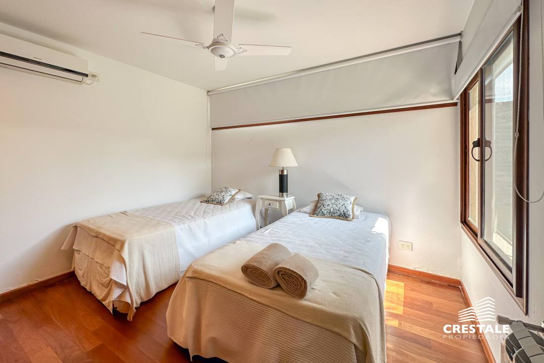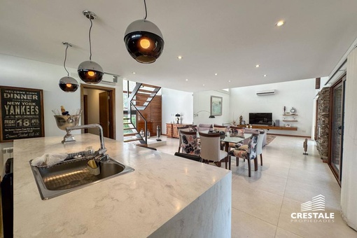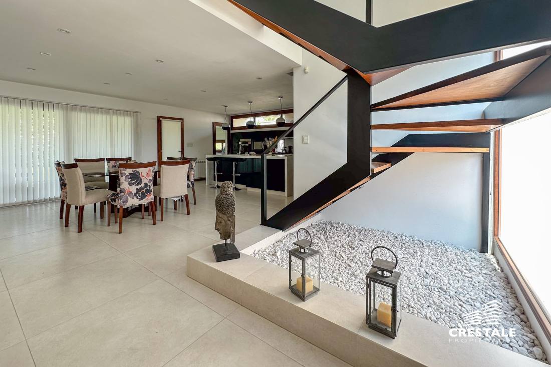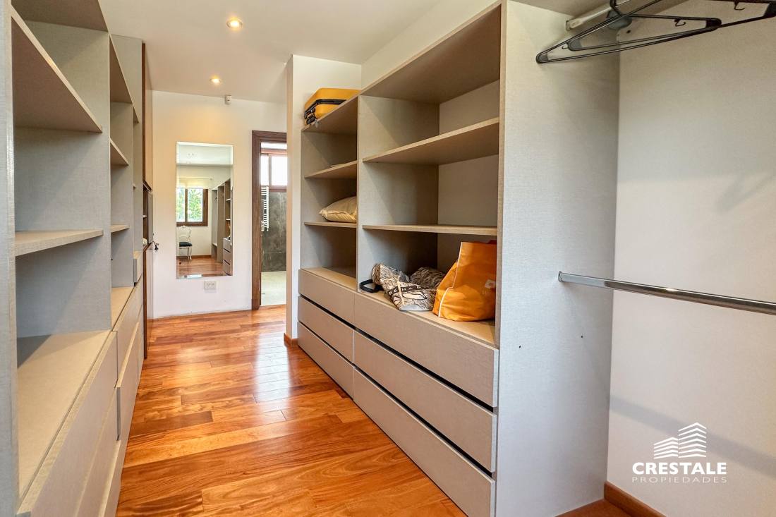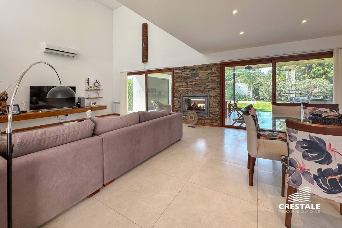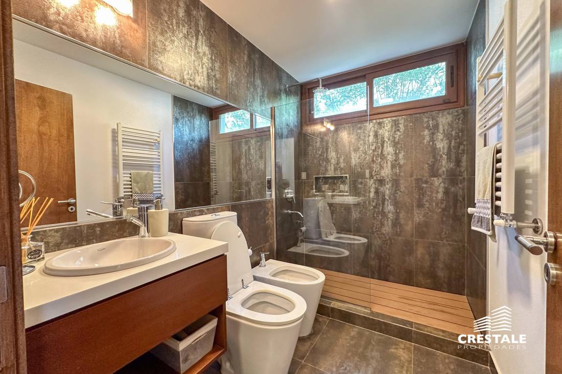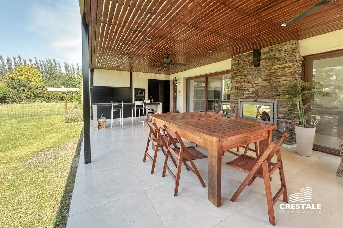 Propiedad desarrollada sobre un lote ubicado en el boulevard principal del barrio, con orientación frente Norte y fondo Sur, destacándose por su excelente calidad constructiva, diseño funcional y óptimo estado de mantenimiento. La vivienda se organiza en dos plantas. En planta baja, se accede a un amplio living comedor de doble altura, con excelente ingreso de luz natural. Cuenta con hogar / salamandra de doble frente, funcional tanto hacia el interior como hacia la galería. La cocina se presenta integrada, con generosos espacios de guardado. En este nivel se dispone además de un dormitorio versátil, ideal como escritorio o habitación de huéspedes, un baño completo, lavadero independiente y cochera cubierta para dos vehículos. En planta alta, se desarrolla el sector íntimo con el dormitorio principal en suite, con vestidor y baño completo, y un espacio comodín actualmente utilizado como área de trabajo o estudio. La propiedad posee estructura prevista para una futura ampliación, permitiendo generar fácilmente un tercer dormitorio. El sector exterior ofrece una galería cubierta equipada con parrillero y horno a gas, jardín totalmente parquizado con riego automático, piscina con sistema de filtrado completo, baño exterior y cuarto de guardado. La casa incorpora sistemas de climatización por radiadores mediante caldera dual, equipos de aire acondicionado instalados y un sistema de energía solar (actualmente a reacondicionar) destinado a abastecer bomba de agua y luminarias. Tratamiento de impermeabilización profesional realizado recientemente en techos.Todos los metros cuadrados se encuentran debidamente regularizados. Nota: posibilidad de venta completamente amueblada (consultar valor). Barrio Privado Aguadas se encuentra estratégicamente ubicado sobre la Autopista Rosario–Córdoba, con ingreso por calle Hipólito Yrigoyen, consolidándose como uno de los desarrollos residenciales más reconocidos de Funes. Implantado sobre un predio de aproximadamente 30 hectáreas y conformado por solo 234 lotes, ofrece un entorno de baja densidad, privacidad y tranquilidad, con excelente conectividad hacia Rosario y el centro de Funes. El barrio cuenta con infraestructura completa, incluyendo gas natural, agua corriente, red de cloacas y tendido subterráneo de servicios. Dispone de seguridad permanente con control de accesos, vigilancia 24 hs y monitoreo perimetral. Entre sus espacios comunes se destacan el Club House, quinchos, piscinas climatizada y exterior, gimnasio, mini market, canchas deportivas y amplias áreas verdes pensadas para la vida familiar. Código web: CHO7681896