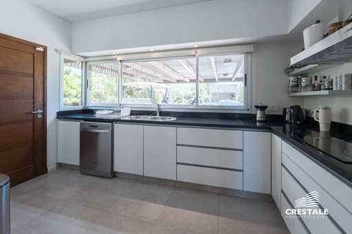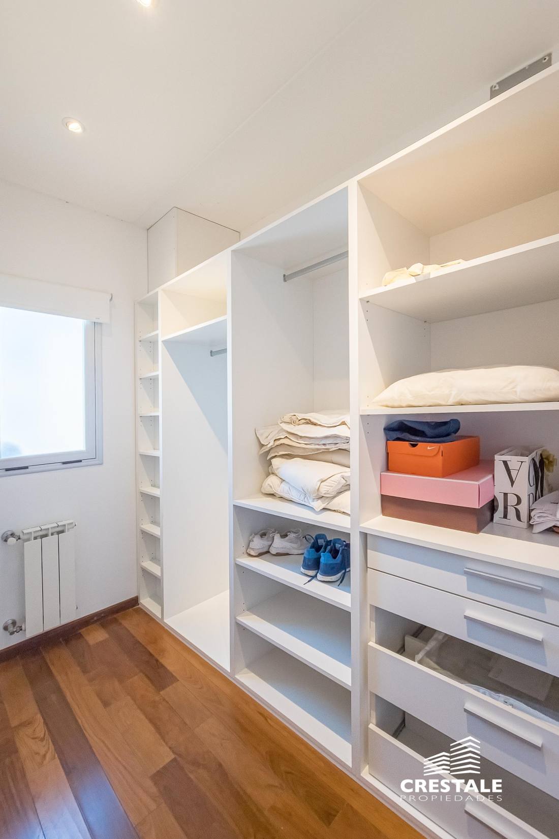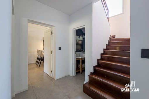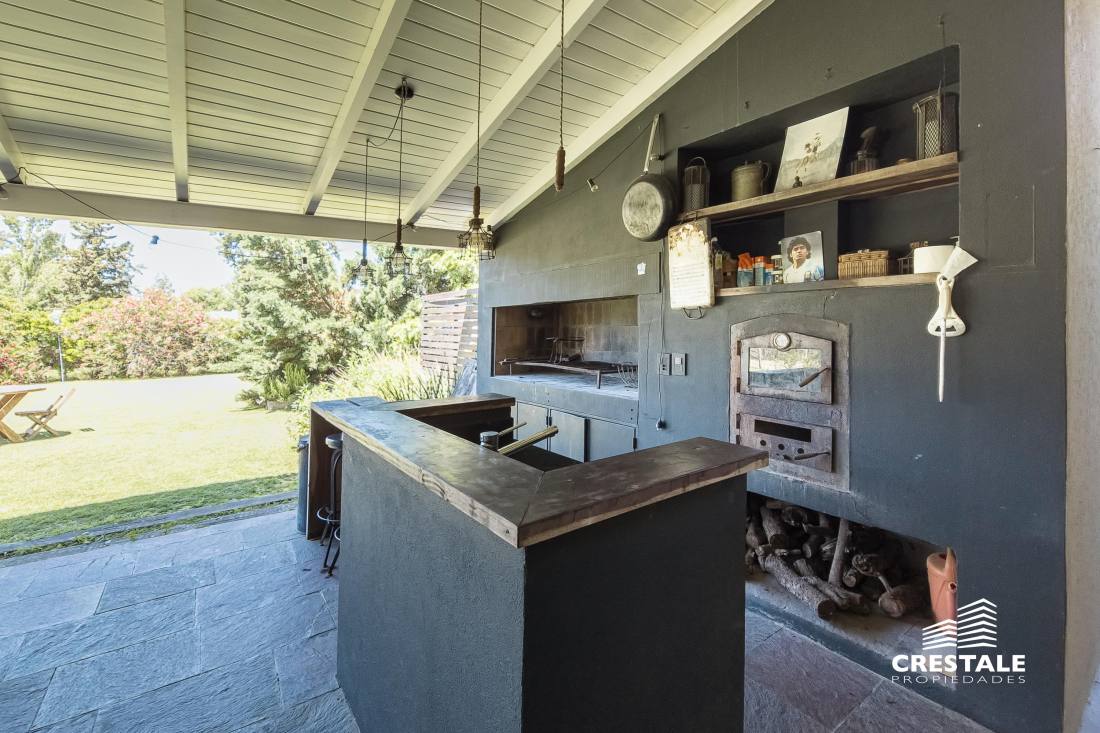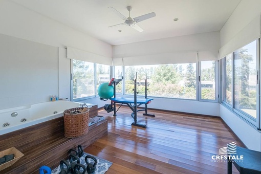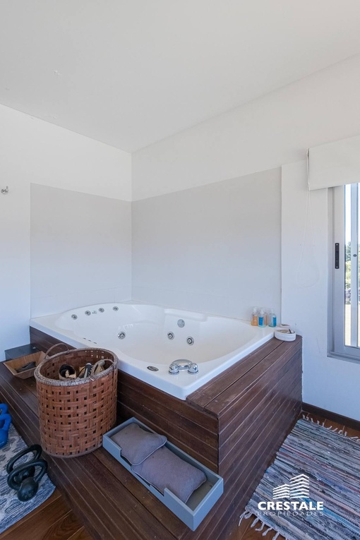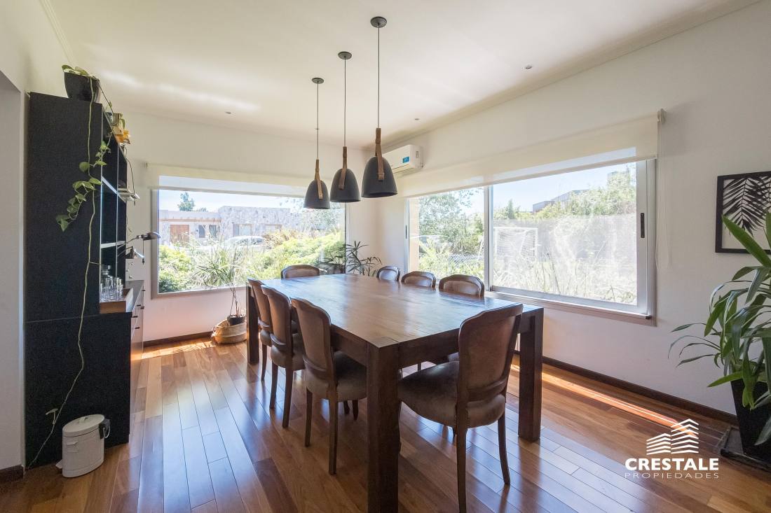 Hermosa casa desarrollada en dos plantas, implantada en un lote de más de 1.000 m² con orientación norte, dentro del exclusivo barrio privado Rosario Golf. Su diseño prioriza la amplitud, la funcionalidad y la integración con el entorno verde. Al ingresar, un hall de recepción conecta con un living–comedor de 10 metros de largo, equipado con hogar a leña y vistas destacadas hacia el jardín. El estar diario, también orientado al verde, otorga calidez y confort al área social. La cocina, de generoso desarrollo, cuenta con amplia mesada, muebles en melamina, horno, anafe y espacio para lavavajillas. El comedor diario se integra naturalmente y brinda un ambiente ideal para la vida cotidiana. La planta baja se completa con lavadero independiente, habitación y baño de servicio. La galería, de excelente ancho, permite disponer una gran mesa y un living exterior. El parrillero posee un espacio de guardado diseñado especialmente. En el jardín, la piscina de 9 x 4 metros recibe sol pleno durante todo el día. La vegetación consolidada, el cerco vivo y los jazmines generan un marco natural único. En planta alta, un distribuidor con espacio para escritorio organiza el sector privado. Los dos dormitorios secundarios presentan dimensiones excepcionales (4,40 x 3,80 y 5,10 x 4,00), uno con vestidor, y están asistidos por un baño con antebaño y gran ventana. El dormitorio principal, orientado al norte, cuenta con vestidor de 4 metros, sauna, hidromasaje y un gimnasio privado con vistas al jardín, conformando una suite de alto confort. Todas las aberturas poseen DVH, y los dormitorios incluyen cortinas de enrollar automatizadas.Ubicada en Rosario Golf, uno de los barrios privados más prestigiosos de la región, esta propiedad se beneficia de un entorno natural consolidado, con forestación madura, seguridad permanente y acceso rápido a los principales corredores que conectan Funes con Rosario. El barrio ofrece tranquilidad, privacidad y una infraestructura de excelencia, ideal para quienes buscan calidad de vida en un entorno residencial de alto nivel.Código web: CHO7529683