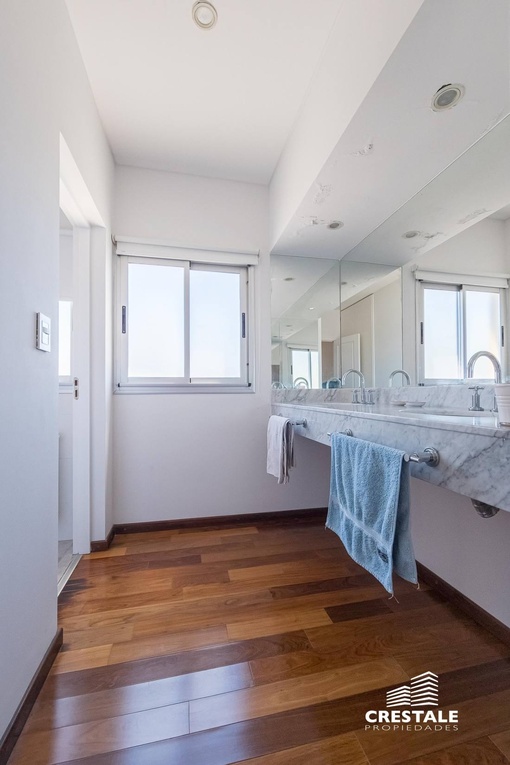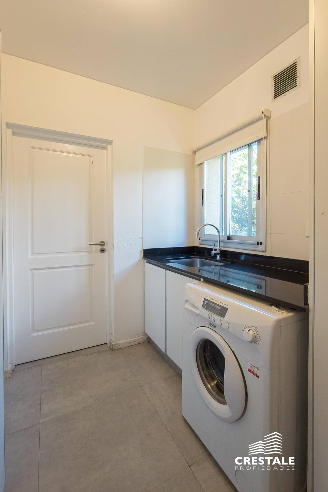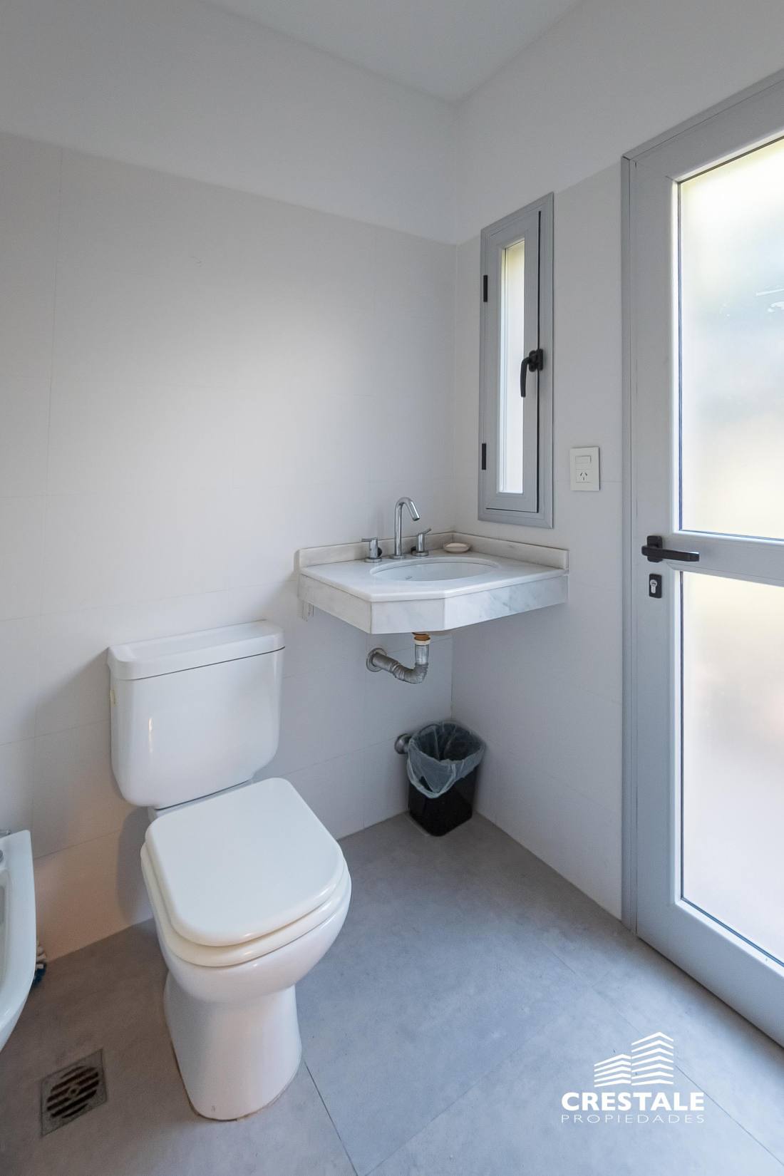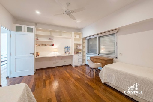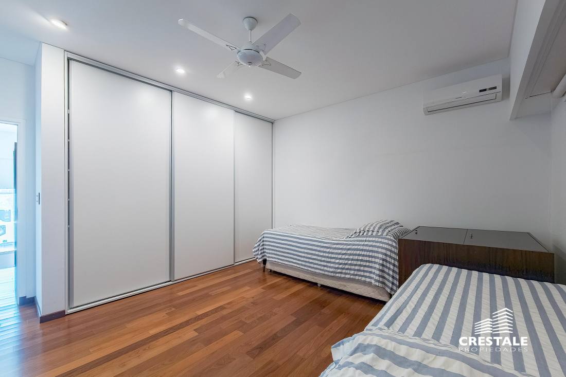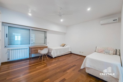 Hermosa casa desarrollada en dos plantas, implantada en un lote de más de 1.000 m² con orientación norte, dentro del exclusivo barrio privado Rosario Golf. Su diseño prioriza la amplitud, la funcionalidad y la integración con el entorno verde. Al ingresar, un hall de recepción conecta con un living–comedor de 10 metros de largo, equipado con hogar a leña y vistas destacadas hacia el jardín. El estar diario, también orientado al verde, otorga calidez y confort al área social. La cocina, de generoso desarrollo, cuenta con amplia mesada, muebles en melamina, horno, anafe y espacio para lavavajillas. El comedor diario se integra naturalmente y brinda un ambiente ideal para la vida cotidiana. La planta baja se completa con lavadero independiente, habitación y baño de servicio. La galería, de excelente ancho, permite disponer una gran mesa y un living exterior. El parrillero posee un espacio de guardado diseñado especialmente. En el jardín, la piscina de 9 x 4 metros recibe sol pleno durante todo el día. La vegetación consolidada, el cerco vivo y los jazmines generan un marco natural único. En planta alta, un distribuidor con espacio para escritorio organiza el sector privado. Los dos dormitorios secundarios presentan dimensiones excepcionales (4,40 x 3,80 y 5,10 x 4,00), uno con vestidor, y están asistidos por un baño con antebaño y gran ventana. El dormitorio principal, orientado al norte, cuenta con vestidor de 4 metros, sauna, hidromasaje y un gimnasio privado con vistas al jardín, conformando una suite de alto confort. Todas las aberturas poseen DVH, y los dormitorios incluyen cortinas de enrollar automatizadas.Ubicada en Rosario Golf, uno de los barrios privados más prestigiosos de la región, esta propiedad se beneficia de un entorno natural consolidado, con forestación madura, seguridad permanente y acceso rápido a los principales corredores que conectan Funes con Rosario. El barrio ofrece tranquilidad, privacidad y una infraestructura de excelencia, ideal para quienes buscan calidad de vida en un entorno residencial de alto nivel.Código web: CHO7529683