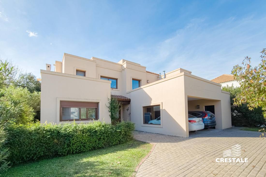 Venta / permuta - Casa 4 dormitorios en barrio privado - Country Golf Rosario, Fisherton. Casa 4 dormitorios en el Country Golf de Rosario, cercano a colegios, shoppings y de fácil acceso. Desarrollada en dos plantas con ambientes cómodos bien diferenciados y luminosos. En planta baja nos recibe un hall de ingreso que nos lleva a un estar comedor amplio, contiguo se desarrolla un play/family. Dormitorio con baño en suite. Cocina amplia con muebles Reno de alto y bajo mesada- isla - horno industrial de 6 hornallas - mesada de granito y pisos de porcelanato comedor diario, living diario, lavadero independiente. En la planta alta una amplia y cómoda escalera nos conecta a un distribuidor de gran dimensión con espacio para escritorio. 3 dormitorios con placares y muy luminosos. Baño con ante baño. Amplísima suite, con doble vestidor y su baño con ante baño con doble lavabo en mármol, con detalles de categoría. En el dormitorio principal escalera plegable con acceso a altillo. Galería - parrilla - pileta de natación con filtro - doble cochera semicubierta - Pisos de porcelanato en recepción y de madera en los dormitorios - aberturas de PVC color madera - Caldera y radiadores - aire acondicionados en todos los ambientes - termotanque - Techos de teja exteriores y cielo raso interior - tanque de agua y bomba presurizadora- posee todos los servicios - internet por fibra óptica. Country golf es uno de los barrios privados más importantes de la ciudad de Rosario. Ubicado en pleno Fisherton y a sólo 15 minutos del centro de la ciudad. Vivir en el Country golf Rosario no es vivir cerca de la ciudad, es vivir en la ciudad. Esto significa disponer de absolutamente todos los servicios necesarios dentro de un típico paisaje de una cancha de golf especialmente pensada para deportistas que quieran unir plenamente su vida al deporte. En la zona encontramos colegios de categoría a muy pocos metros (Los Arroyos y Mirasoles), y variedad de locales comerciales y de servicios, así como también al Fisherton Plaza Mall y al Aeropuerto de Rosario. El barrio tiene conexión directa y exclusiva al Rosario Golf. Código web: CHO6819957