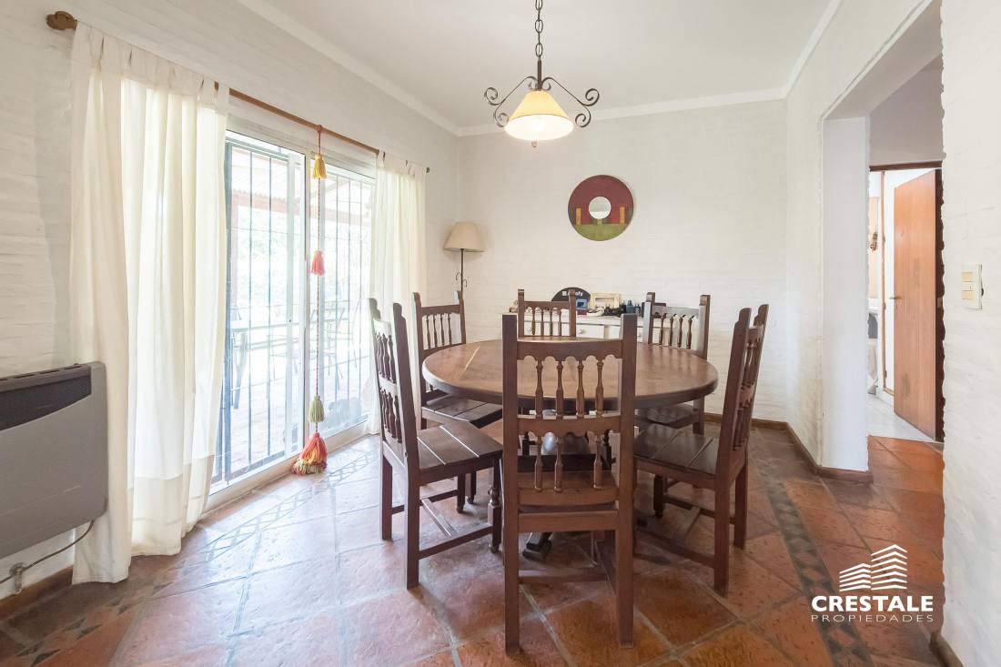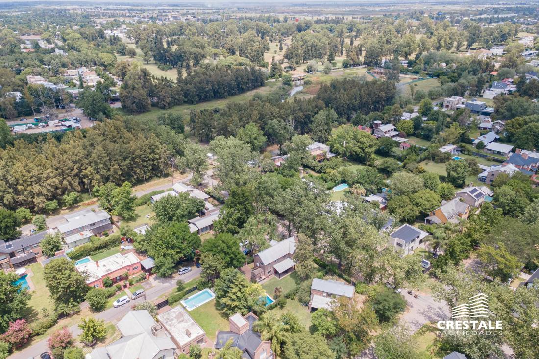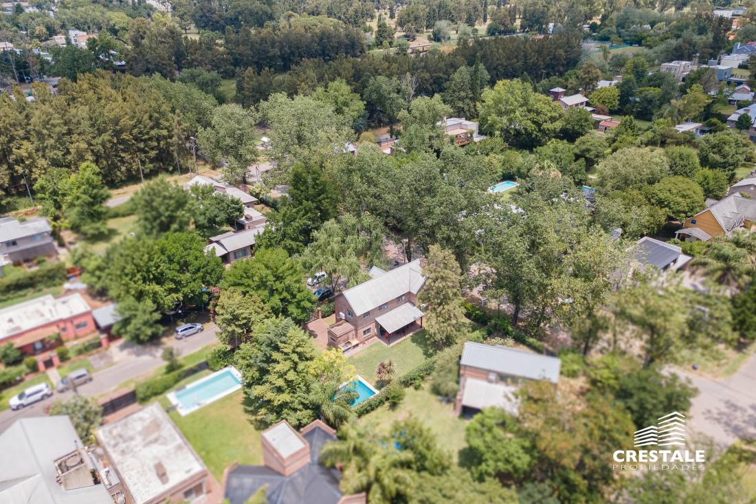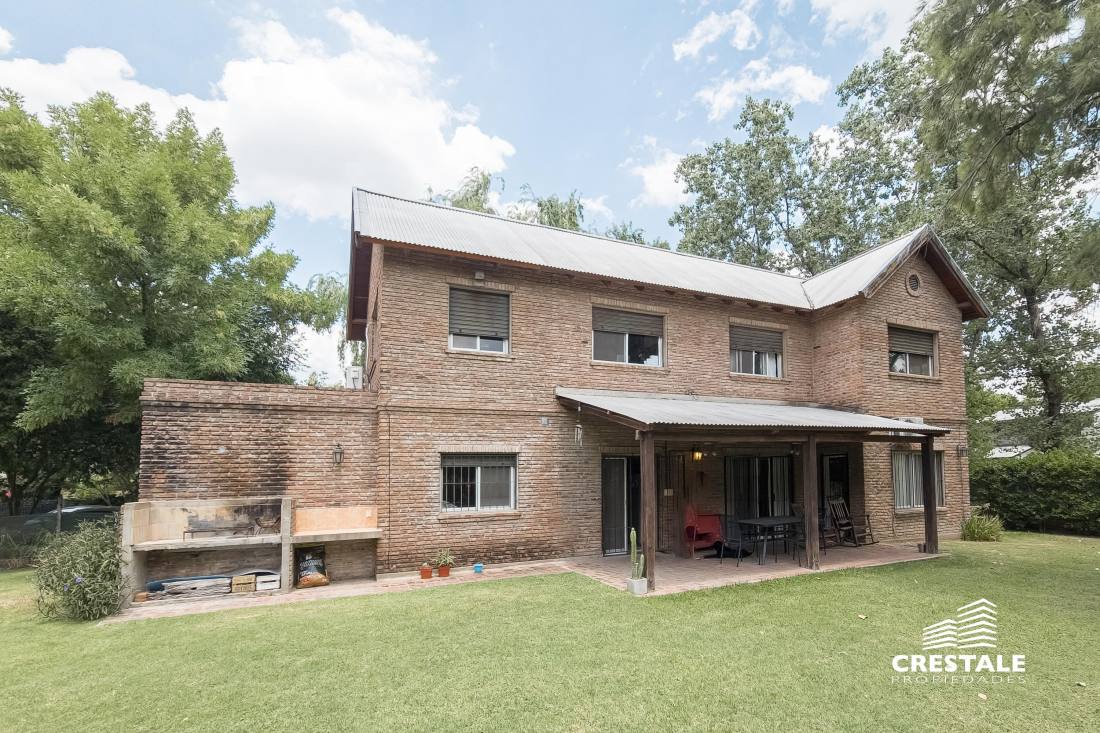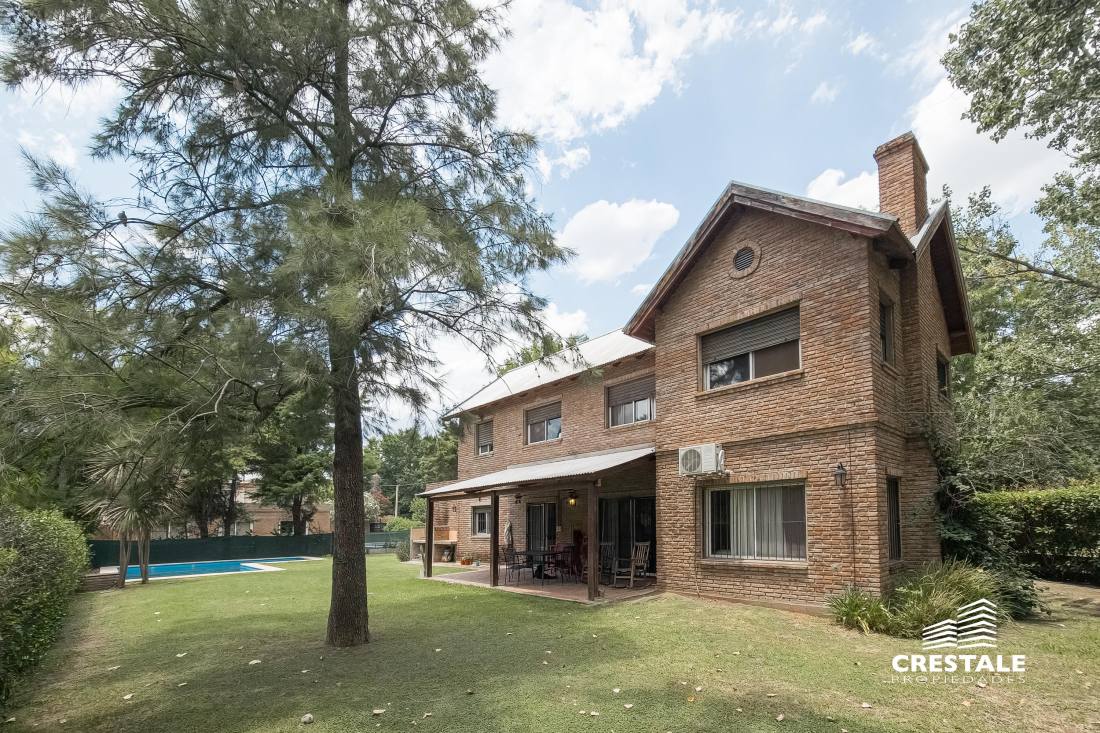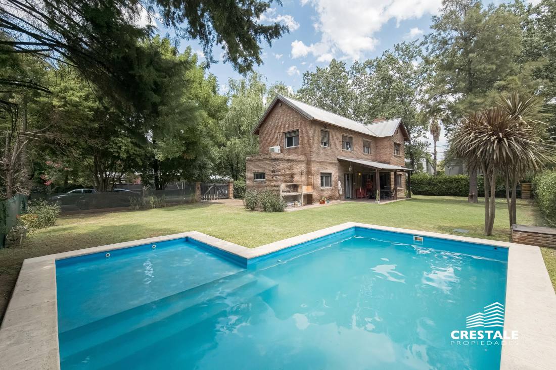 Casa 4 dormitorios, desarrollada sobre un lote de esquina en el tradicional barrio Aldea Fisherton, destacándose por su entorno verde, su sólida construcción y su funcional distribución. La propiedad se desarrolla en dos plantas, con construcción tradicional de paredes de ladrillo común con juntas tomadas y techos a dos aguas de madera y chapa, lo que aporta carácter y durabilidad. En planta baja, se ingresa a un living–comedor de cómodas dimensiones con hogar a leña, generando un ambiente cálido y acogedor. La cocina, con salida directa a la galería, se vincula visualmente con el jardín, al igual que los principales ambientes sociales. Completa este nivel un lavadero independiente, un toilette de recepción y una habitación con baño completo, con acceso independiente, ideal para huéspedes, escritorio o dormitorio de servicio. En planta alta, un pasillo distribuidor conduce a tres dormitorios con placares, dos de ellos en suite, ofreciendo privacidad y confort en el sector íntimo. En el exterior, la propiedad cuenta con una galería semicubierta, parrillero, y un amplio jardín parquizado y arbolado, con especies consolidadas que brindan privacidad. La piscina en forma de “L”, de aproximadamente 8 x 4 metros, se integra armónicamente al entorno verde. El acceso vehicular es descubierto y dispone de depósito de guardado. Ubicada en Aldea Fisherton, una de las zonas residenciales más valoradas de Rosario, caracterizada por su entorno arbolado, calles tranquilas y excelente calidad de vida. El barrio ofrece rápida conexión con avenidas principales, colegios, centros comerciales y servicios, combinando vida suburbana con cercanía urbana. Código web: CHO7680620