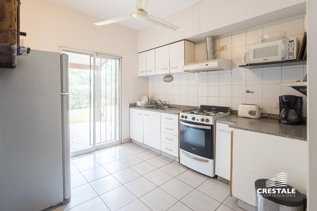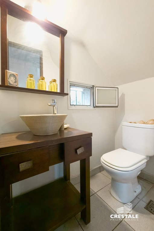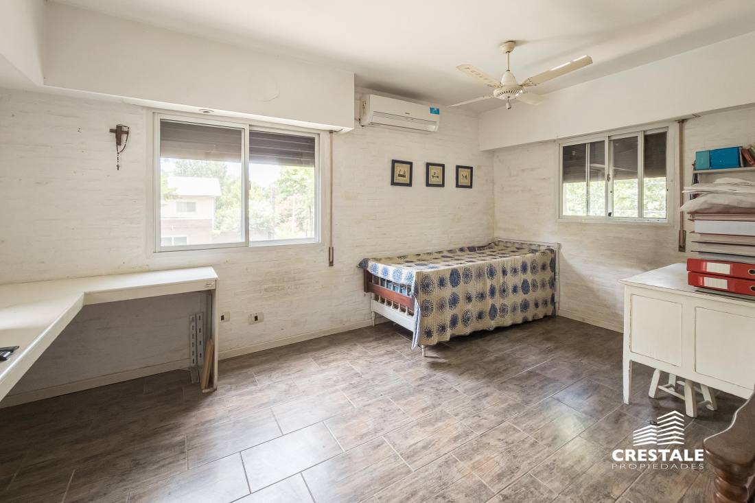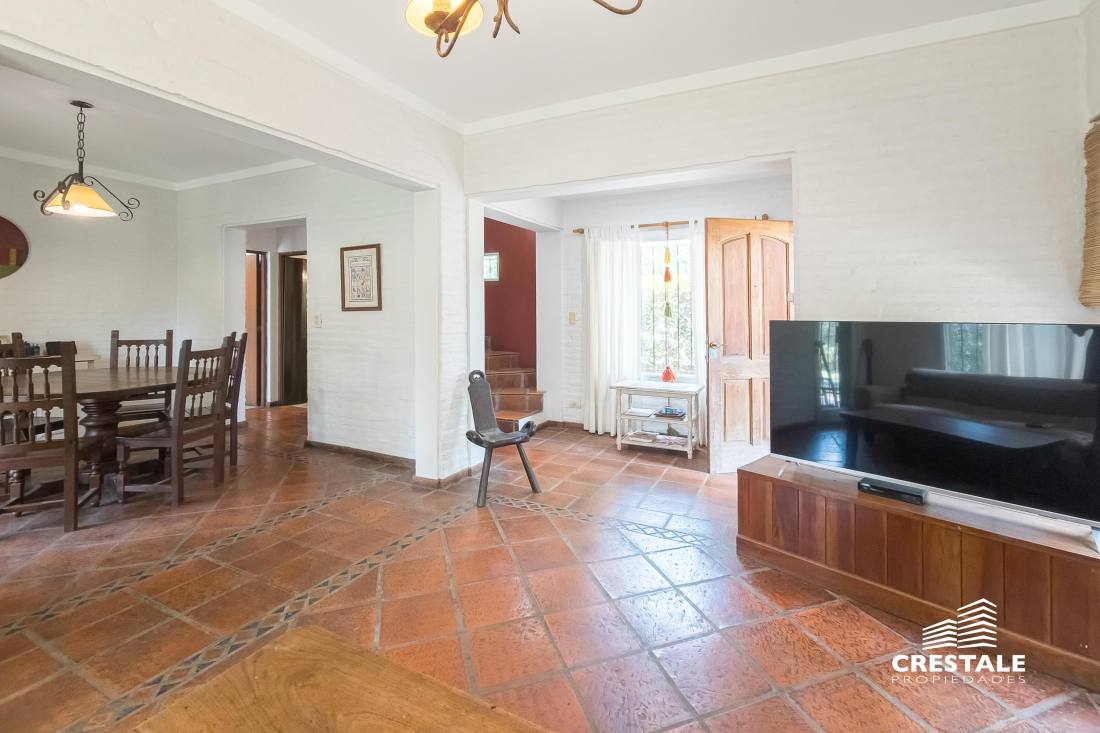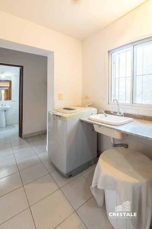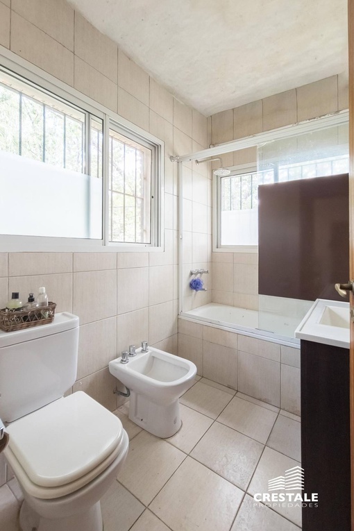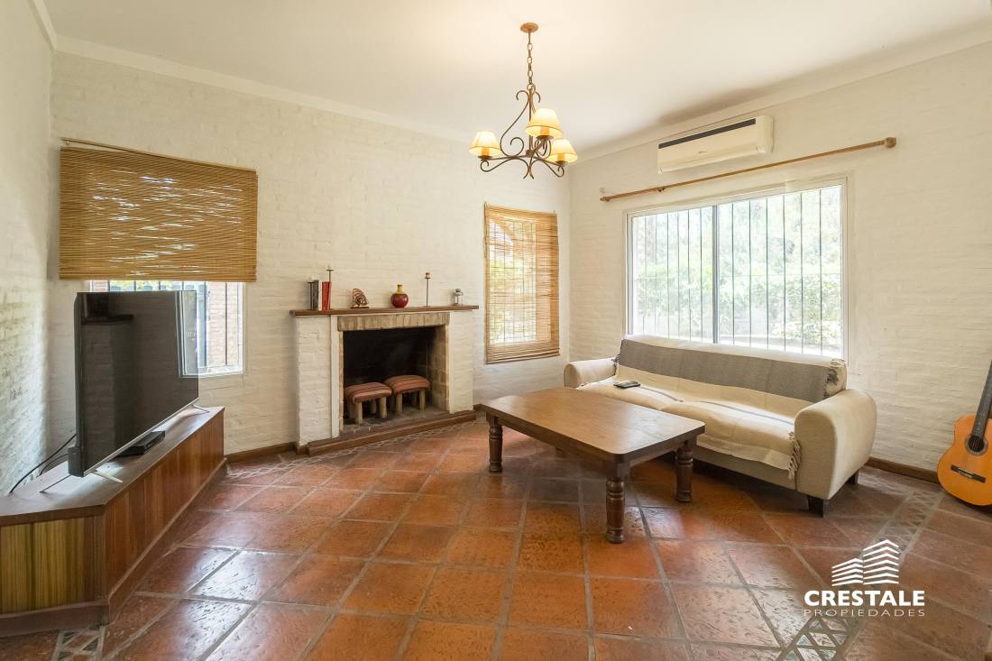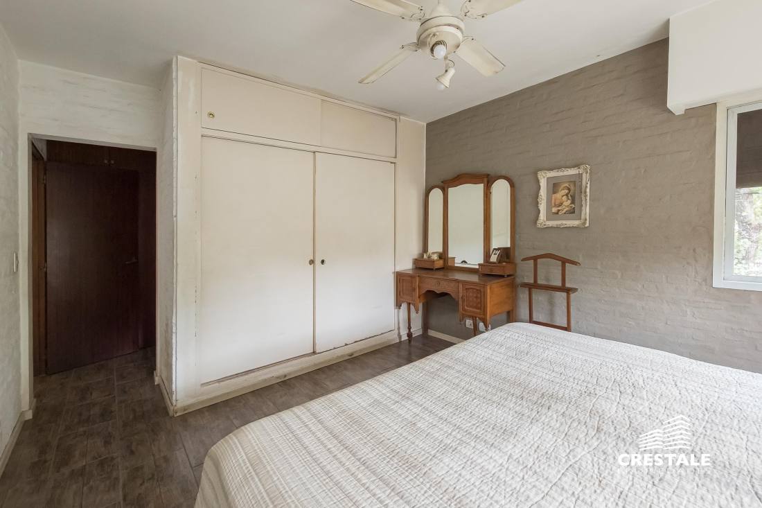 Casa 4 dormitorios, desarrollada sobre un lote de esquina en el tradicional barrio Aldea Fisherton, destacándose por su entorno verde, su sólida construcción y su funcional distribución. La propiedad se desarrolla en dos plantas, con construcción tradicional de paredes de ladrillo común con juntas tomadas y techos a dos aguas de madera y chapa, lo que aporta carácter y durabilidad. En planta baja, se ingresa a un living–comedor de cómodas dimensiones con hogar a leña, generando un ambiente cálido y acogedor. La cocina, con salida directa a la galería, se vincula visualmente con el jardín, al igual que los principales ambientes sociales. Completa este nivel un lavadero independiente, un toilette de recepción y una habitación con baño completo, con acceso independiente, ideal para huéspedes, escritorio o dormitorio de servicio. En planta alta, un pasillo distribuidor conduce a tres dormitorios con placares, dos de ellos en suite, ofreciendo privacidad y confort en el sector íntimo. En el exterior, la propiedad cuenta con una galería semicubierta, parrillero, y un amplio jardín parquizado y arbolado, con especies consolidadas que brindan privacidad. La piscina en forma de “L”, de aproximadamente 8 x 4 metros, se integra armónicamente al entorno verde. El acceso vehicular es descubierto y dispone de depósito de guardado. Ubicada en Aldea Fisherton, una de las zonas residenciales más valoradas de Rosario, caracterizada por su entorno arbolado, calles tranquilas y excelente calidad de vida. El barrio ofrece rápida conexión con avenidas principales, colegios, centros comerciales y servicios, combinando vida suburbana con cercanía urbana. Código web: CHO7680620