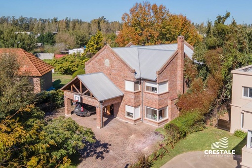 Casa en el Country Carlos Pellegrini, acceso directo al Jockey Club. De 4 dormitorios y 5 baños, con jardín y pileta. Desarrollada en dos plantas, de estética de ladrillo visto y techos a dos aguas. Planta Baja: Living-comedor principal, hall de acceso, cocina completa, semi integrado a un amplio estar comedor con lugar de play-room, lavadero independiente con baño de servicio. Planta Alta: 4 dormitorios con vestidor (2 de ellos con baño en suite), 1 baño compartido, un enorme altillo de guardado. Exterior: enorme jardín arbolado, con piscina de 8 x 4 metros. , Galería semicubierta con parrillero. Calefacción por radiadores en toda la casa, cuenta también con aires acondicionados. Materiales: Paredes doble muro con aislación. Aberturas DVH (doble vidrio hermético), aluminio adonizado color peltre, cortinas de enrollar en todos los ambientes. Puerta principal, exteriores e interiores, puertas tablero con marco macizo cajón y tapa juntas realizadas a medida. En planta alta los pisos son de porcelanato, y en planta alta de madera plastificados, (pre finish), en altillo piso de madera flotante. Muebles de cocina Johnson. Artefactos baños Ferrum y griferías FV. Cuenta con un grupo electrógeno a gas. Superficie Construida Total: 425 m² Superficie del Terreno: 1.100 m² El barrio Carlos Pellegrini es el primer barrio cerrado de la ciudad de Rosario, concebido para tener interacción directa con el “Jockey club de Rosario” ya que cuenta con ingreso exclusivo al mismo. Cuenta con 140 lotes y posee una añosa arboleda en todo el territorio. Código web: CHO4018873