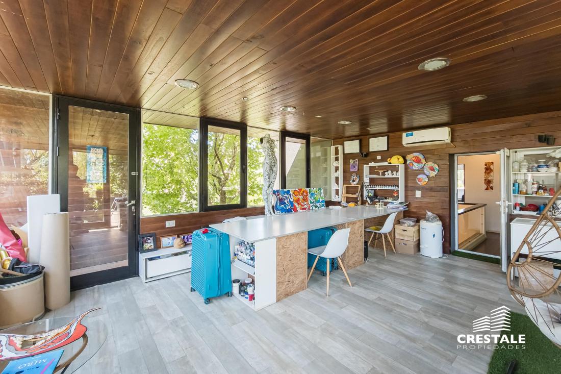Venta / Permuta / Financiación - Casa 3 dormitorios con galería y pileta - Miraflores, FunesPropiedad desarrollada en dos plantas sobre lote de 800 m² con orientación fondo norte. En planta baja se dispone un amplio living-comedor con cocina integrada y isla, toilette de recepción, lavadero con baño, depósito y galería semicubierta tipo quincho con parrillero y barra. Exterior con jardín parquizado, pileta de material con solárium húmedo y cochera pasante cubierta para hasta 3 vehículos.En planta alta se desarrollan dos dormitorios con placares, baño completo con antebaño y una suite principal con vestidor y baño. Además, cuenta con estar/escritorio y un playroom independiente con ingreso propio, balcón al jardín y múltiples posibilidades de uso (oficina, estudio o espacio profesional). Configuración funcional con sectores bien definidos y potencial de uso mixto. Entorno residencial consolidado con alta demanda y opciones de financiación que potencian la liquidez de la operación. Ubicada en Funes Hills Miraflores, con acceso ágil desde autopista Rosario-Córdoba y cercanía a centros comerciales y de servicios. A minutos de Aeropuerto Internacional Rosario y con conexión rápida hacia Centro de Rosario. Barrio privado con seguridad 24 hs, amplios espacios verdes y desarrollo urbanístico consolidado, ideal tanto para vivienda permanente como para resguardo de valor. Código web: CHO7959991