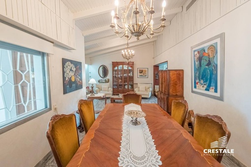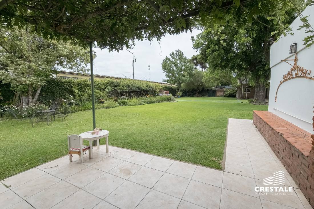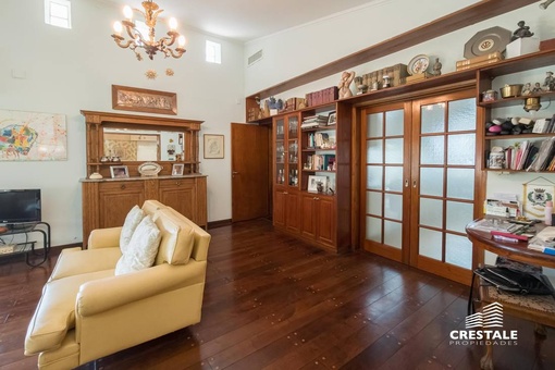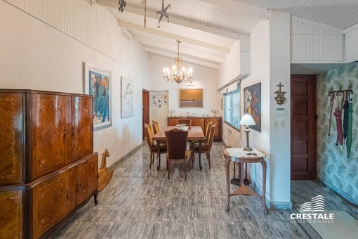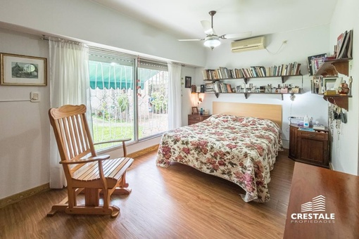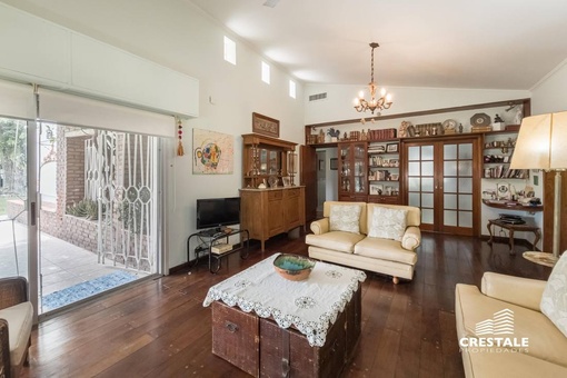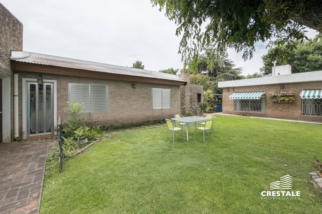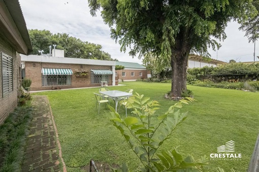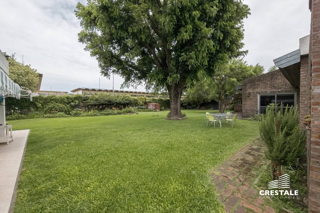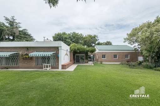 Importante casa estilo chalet desarrollada sobre dos lotes, que se destaca por su calidad constructiva, excelente distribución y generosos espacios interiores y exteriores. La propiedad cuenta con siete ambientes, tres dormitorios y se implanta sobre un terreno de 1.023 m², ofreciendo un amplio jardín con arboleda consolidada.Al ingreso se encuentra el comedor principal ubicado al frente, con cielorrasos de madera de buena altura que aportan amplitud y jerarquía. El living se desarrolla hacia el contrafrente, con grandes ventanales con vista abierta al jardín, y se encuentra separado de la cocina mediante una elegante puerta de madera con vidrio repartido, que suma calidez y valor estético.La planta baja se completa con una sala destinada a manualidades o espacio multifunción, lavadero independiente y tres dormitorios, uno de ellos en suite, todos con visuales al jardín.De manera contigua a la vivienda se ubica el garaje con capacidad para dos vehículos y, a continuación, un galpón construido con materiales de buena calidad. En el exterior se desarrolla un amplio jardín delantero y trasero, junto a un quincho con parrillero, ideal para reuniones sociales y disfrute al aire libre. Ubicada en Juan José Paso al 7900, en el tradicional barrio Fisherton, una zona residencial consolidada caracterizada por su entorno arbolado, calles tranquilas y viviendas de categoría. El sector cuenta con buena conectividad hacia el centro de Rosario, cercanía a avenidas principales, centros educativos, clubes, espacios verdes y áreas comerciales del barrio. Una ubicación ideal para quienes priorizan tranquilidad, amplitud de terreno y calidad de vida. Código web: CHO7266251