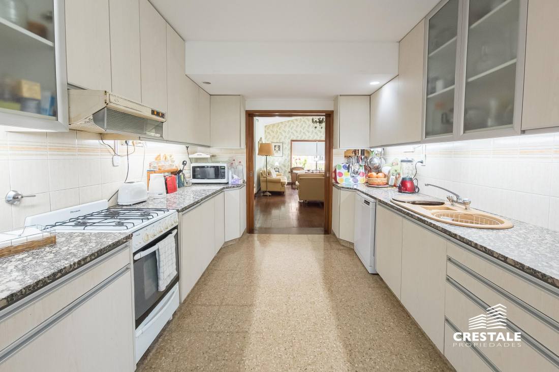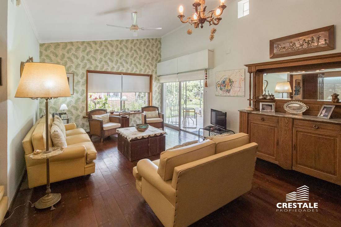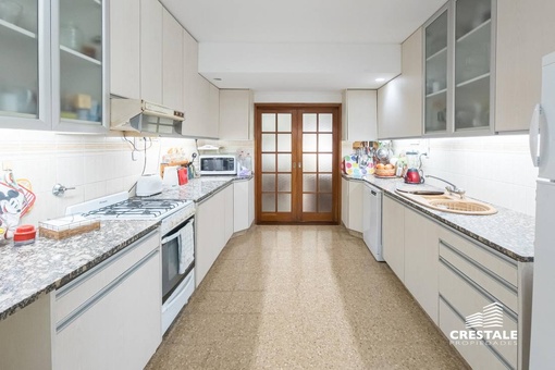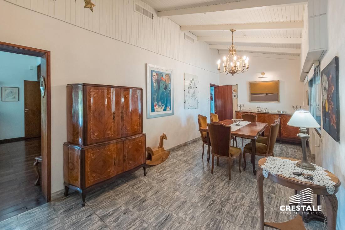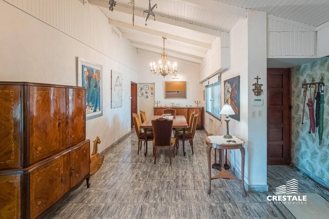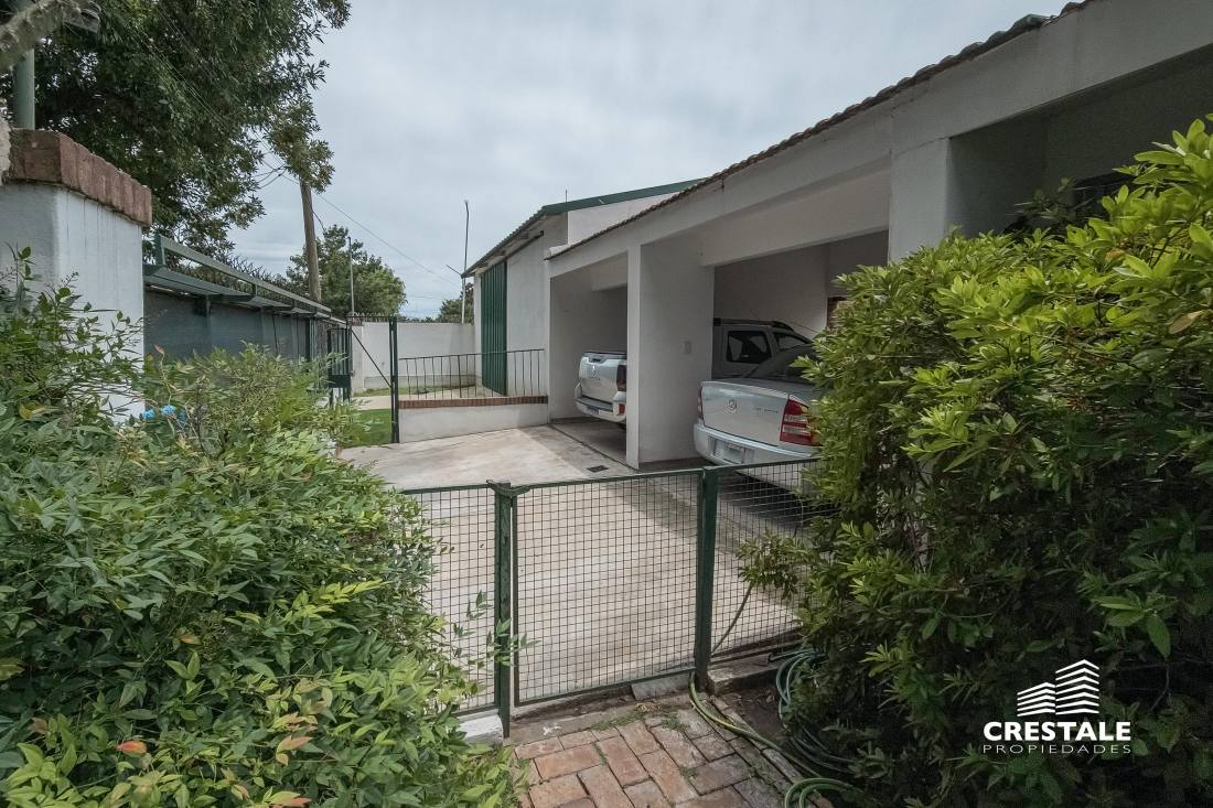 Importante casa estilo chalet desarrollada sobre dos lotes, que se destaca por su calidad constructiva, excelente distribución y generosos espacios interiores y exteriores. La propiedad cuenta con siete ambientes, tres dormitorios y se implanta sobre un terreno de 1.023 m², ofreciendo un amplio jardín con arboleda consolidada.Al ingreso se encuentra el comedor principal ubicado al frente, con cielorrasos de madera de buena altura que aportan amplitud y jerarquía. El living se desarrolla hacia el contrafrente, con grandes ventanales con vista abierta al jardín, y se encuentra separado de la cocina mediante una elegante puerta de madera con vidrio repartido, que suma calidez y valor estético.La planta baja se completa con una sala destinada a manualidades o espacio multifunción, lavadero independiente y tres dormitorios, uno de ellos en suite, todos con visuales al jardín.De manera contigua a la vivienda se ubica el garaje con capacidad para dos vehículos y, a continuación, un galpón construido con materiales de buena calidad. En el exterior se desarrolla un amplio jardín delantero y trasero, junto a un quincho con parrillero, ideal para reuniones sociales y disfrute al aire libre. Ubicada en Juan José Paso al 7900, en el tradicional barrio Fisherton, una zona residencial consolidada caracterizada por su entorno arbolado, calles tranquilas y viviendas de categoría. El sector cuenta con buena conectividad hacia el centro de Rosario, cercanía a avenidas principales, centros educativos, clubes, espacios verdes y áreas comerciales del barrio. Una ubicación ideal para quienes priorizan tranquilidad, amplitud de terreno y calidad de vida. Código web: CHO7266251