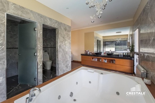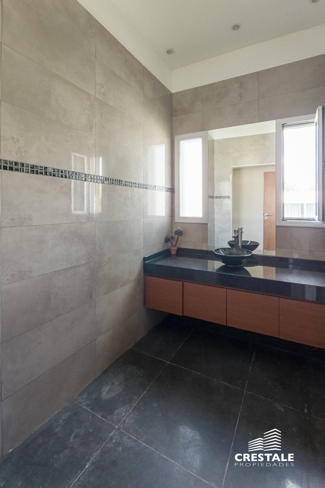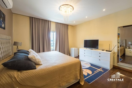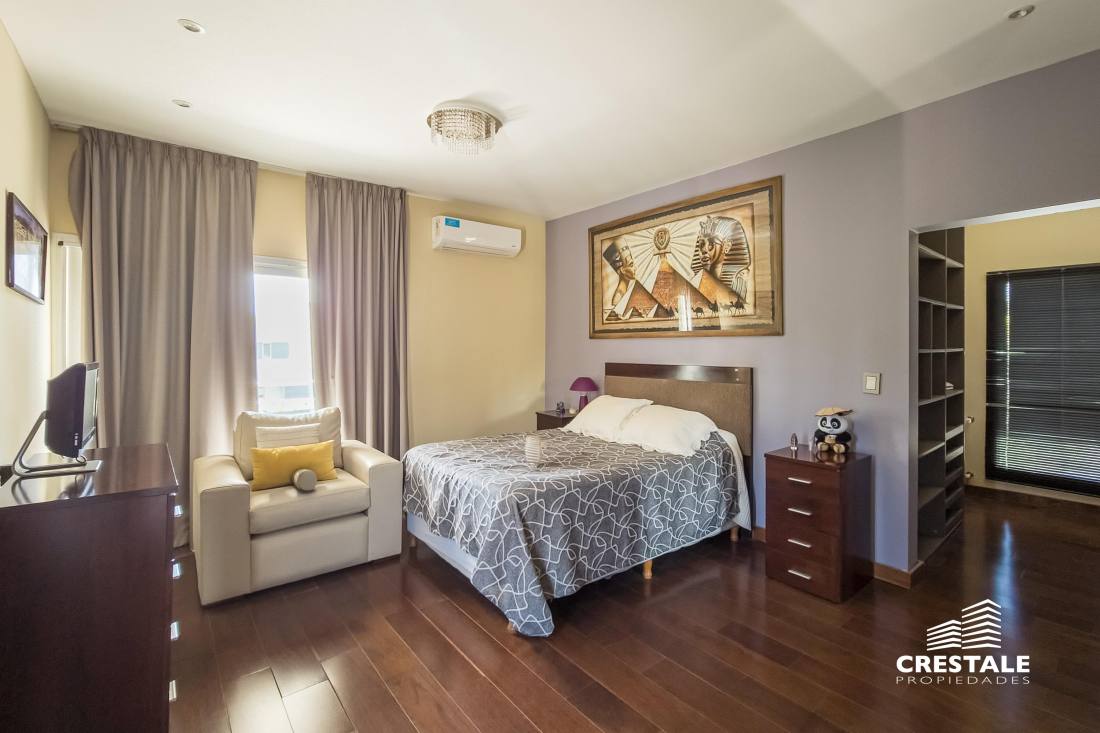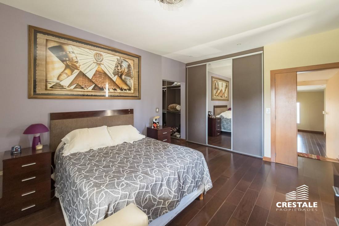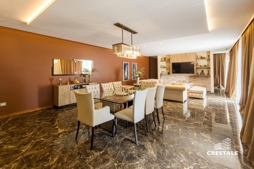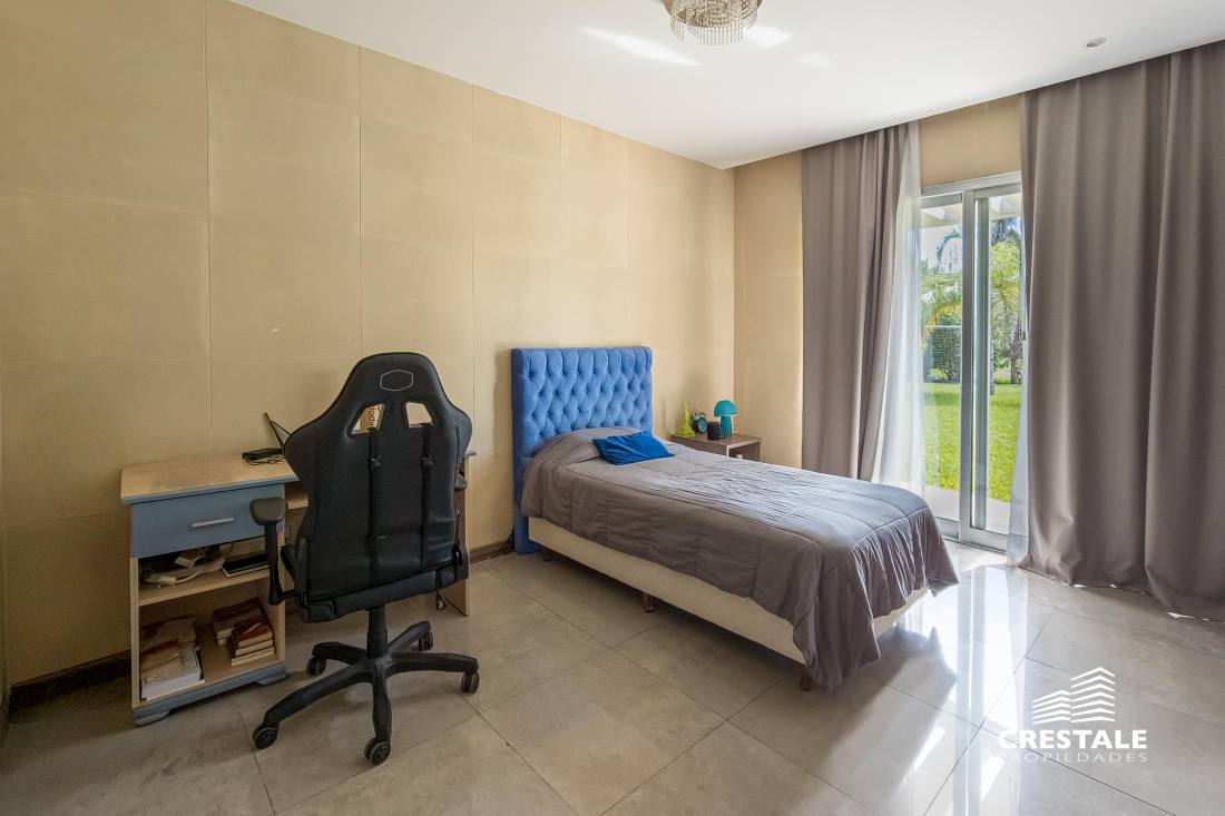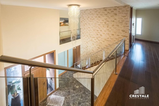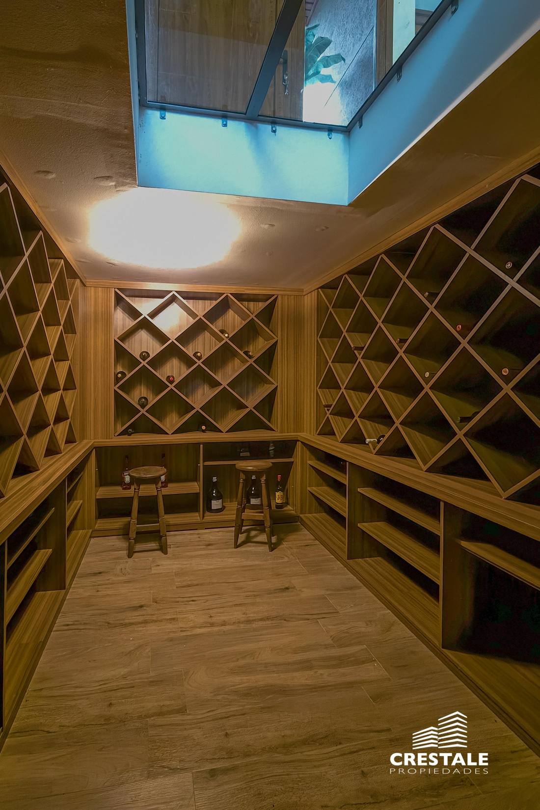 Venta / Permuta - Casa 4 dormitorios con piscina, quincho y subsuelo - Kentucky, Funes Propiedad desarrollada sobre un lote de 1200 m² (25 m de frente por 48 m de fondo), con una superficie cubierta de 458 m², distribuida en tres niveles y orientada al este, lo que favorece la luminosidad natural en los principales ambientes. En planta baja se dispone un amplio estar comedor con grandes ventanales al jardín, generando integración visual y espacial con el exterior. La cocina es independiente, equipada con isla central, mesadas y alzadas en mármol, mobiliario de primera línea Johnson y alacenas con frentes de vidrio, complementada con lavadero independiente. En este nivel también se desarrolla un dormitorio con baño completo y un escritorio, ideal para home office o uso flexible. En planta alta se encuentra la master suite de generosas dimensiones, con vestidor doble, sector íntimo adicional y baño completo con hidromasaje, doble bacha y box de ducha. Los dormitorios secundarios cuentan con excelentes dimensiones, uno de ellos en suite con vestidor, mientras que el restante es asistido por un baño completo. La propiedad incorpora un subsuelo con cava y SUM, ideal para usos recreativos, sociales o de guardado. El sector exterior cuenta con galería semicubierta, quincho independiente de grandes dimensiones con parrillero revestido en acero inoxidable, y piscina equipada con sistema de bomba y filtrado, conformando un espacio ideal para reuniones y esparcimiento. El ingreso vehicular dispone de portón automatizado de PVC, rampa de hormigón y cochera cubierta para dos vehículos. La vivienda se destaca por su calidad constructiva, amplitud y diseño funcional, con calefacción por radiadores en todos los ambientes. Residencia de alta gama en barrio privado Kentucky Club de Campo, uno de los desarrollos más exclusivos de Funes. Ubicado sobre la autopista Rosario–Córdoba, el barrio ofrece rápida conexión con Rosario y cercanía a los principales corredores de la región. Kentucky se caracteriza por su entorno natural, amplios lotes y urbanización de primer nivel, consolidado como uno de los barrios más buscados para vivienda permanente. El desarrollo cuenta con infraestructura deportiva y recreativa, incluyendo canchas de golf, tenis, fútbol y espacios verdes, además de seguridad las 24 horas y accesos controlados, brindando un entorno seguro y de calidad para la vida familiar. Código web: CHO7870382