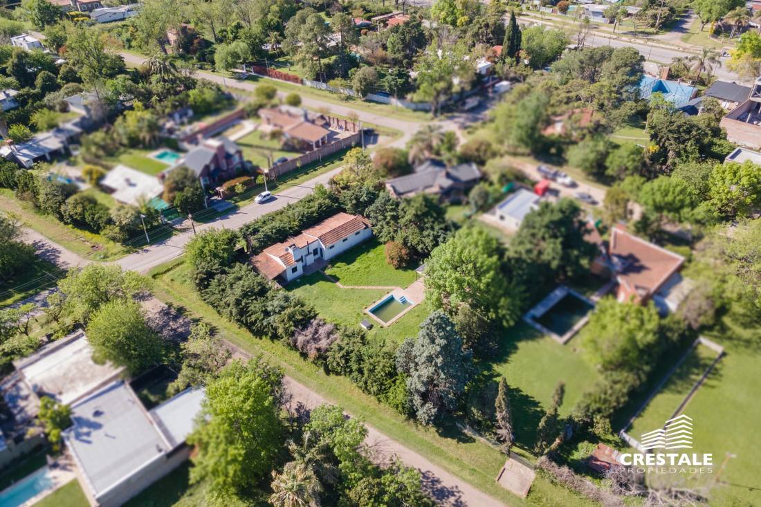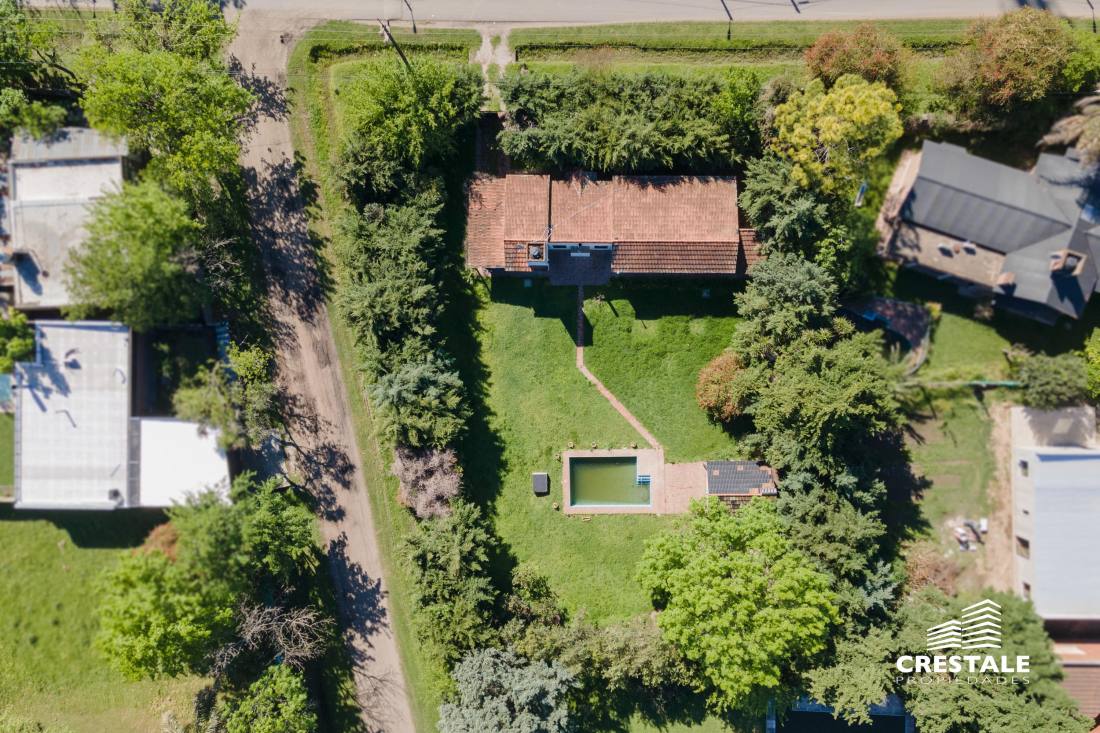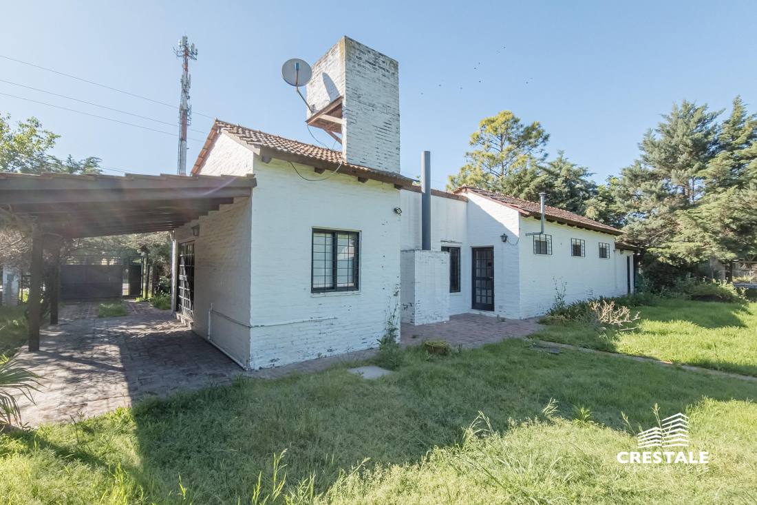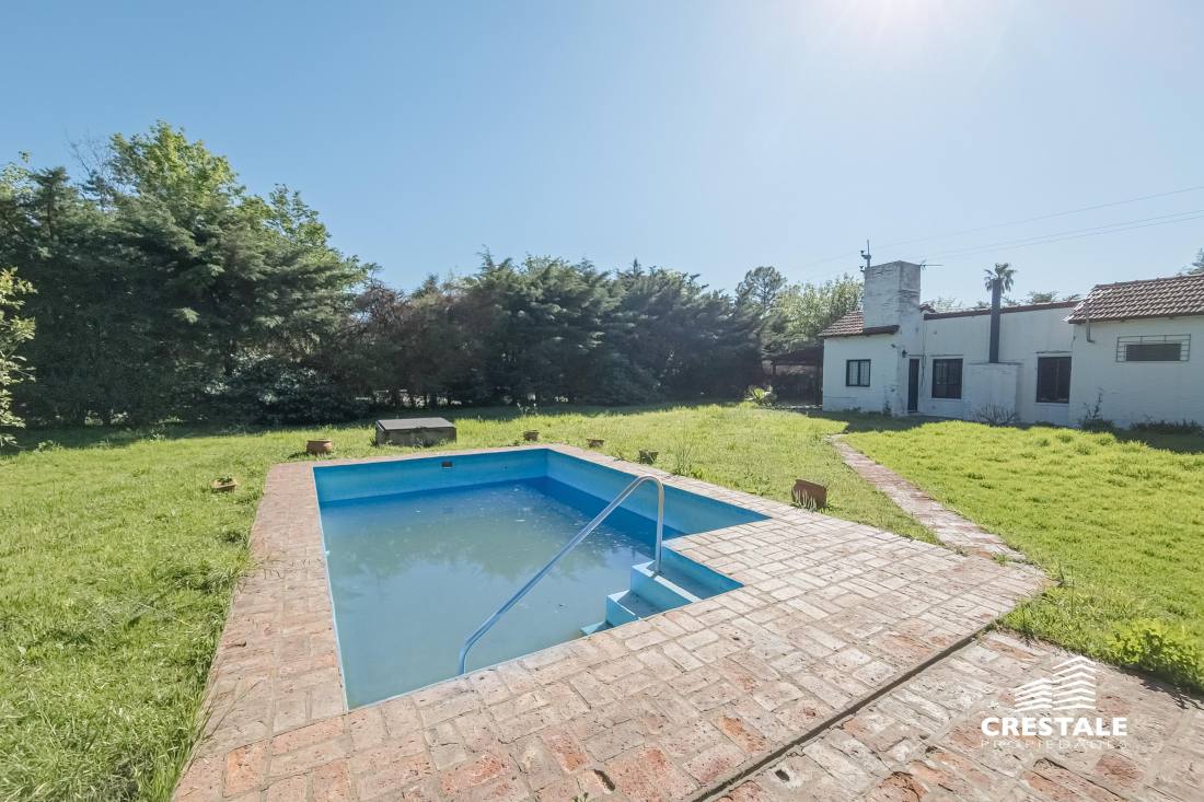 Excelente propiedad desarrollada en planta baja, ubicada en un lote de esquina con posibilidad de doble ingreso. Cuenta con cochera pasante semicubierta para dos vehículos, amplio living-comedor con cocina integrada, y en el área íntima dispone de tres dormitorios, todos con placard (uno de ellos en suite) y un baño completo. En el exterior se destaca un gran jardín con amplios espacios verdes, piscina, quincho semicubierto, baño exterior y depósito.Propiedad ubicada en Funes, Garita 17, sobre calle pavimentada y a solo 100 metros de la Ruta 9. En un entorno residencial consolidado y arbolado, ideal para disfrutar de la tranquilidad y el aire libre. Cercana a colegios como Mirasoles y Colegio Joan Miró; a espacios recreativos como Paseo del Ferrocarril y Estación Funes; y a centros comerciales y de servicios como Paseo Madero y Funes Mall. La propiedad combina amplitud, funcionalidad y una excelente ubicación, con rápido acceso a la ciudad de Rosario y a las principales vías de circulación.Código web: CHO7421223