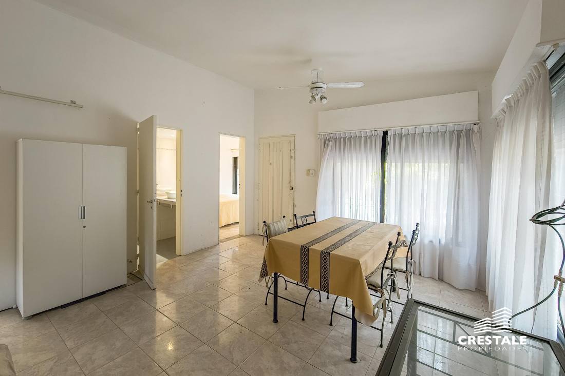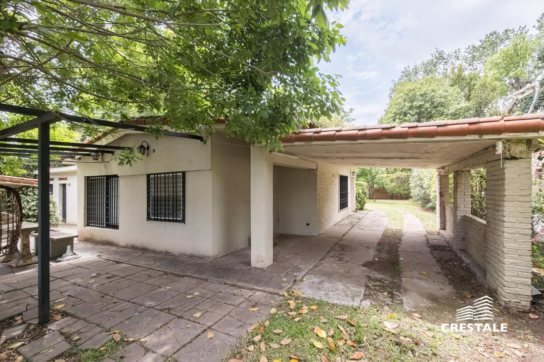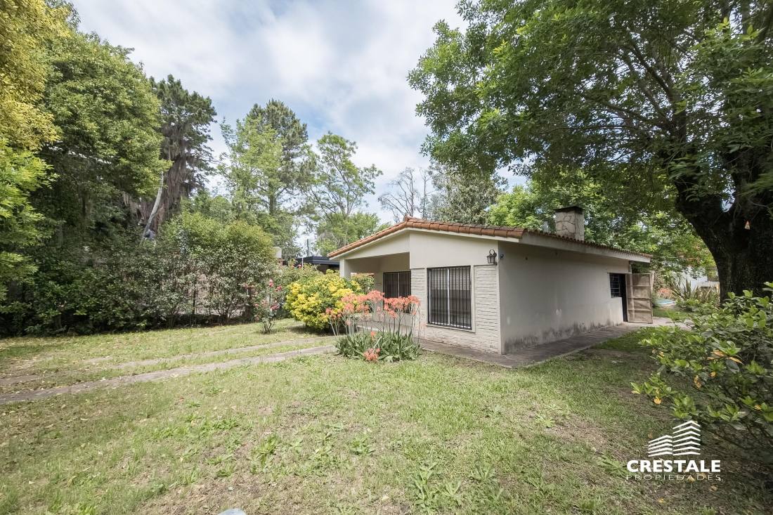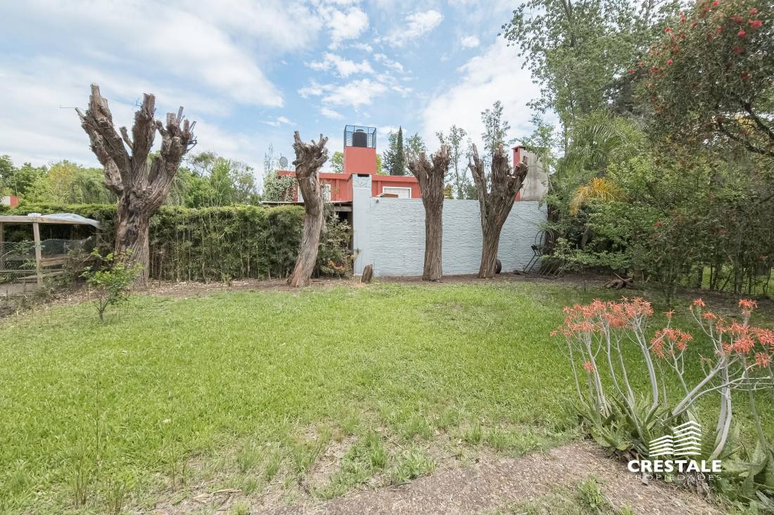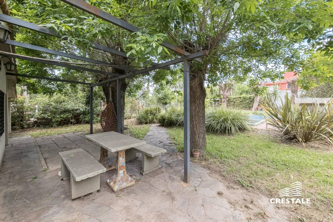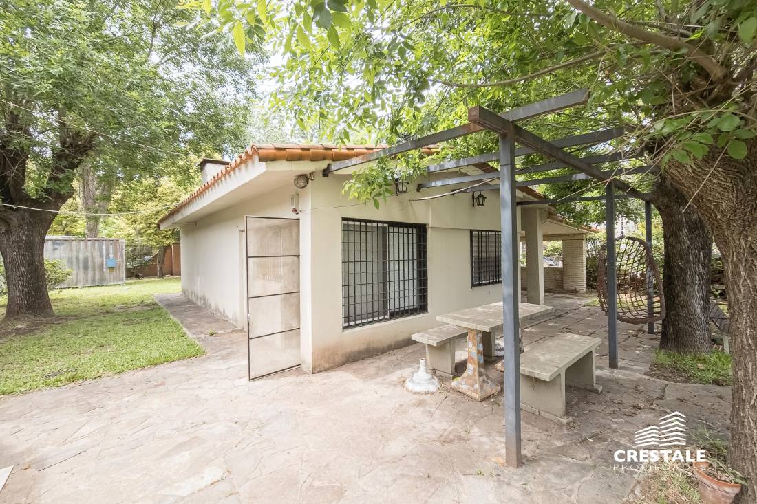 Casa desarrollada en una planta sobre un lote de 20 m x 55 m, implantada en el centro del terreno y rodeada de un jardín arbolado con áreas de sombra y espacios de juego. Ingreso mediante porche semicubierto al living comedor de cómodas dimensiones. Cocina independiente conectada directamente con el sector de parrilla. Dos dormitorios con vistas al jardín y cortinas de enrollar para oscurecimiento. Baño principal completo.En el exterior, baño de servicio y cuarto de guardado ubicado junto al parrillero. La piscina, de 5 m x 9 m, se encuentra hacia el fondo del terreno, acompañada por un entorno verde bien conformado.Ubicada en una zona residencial de Roldán, sobre la intersección de Andes y Ruta 9, con fácil acceso desde los principales corredores y a pocos minutos de áreas comerciales, servicios y propuestas recreativas. El barrio San Eduardo se caracteriza por lotes amplios, vegetación consolidada y un tejido barrial tranquilo, ideal para uso permanente o de fin de semana.Código web: CHO7179887