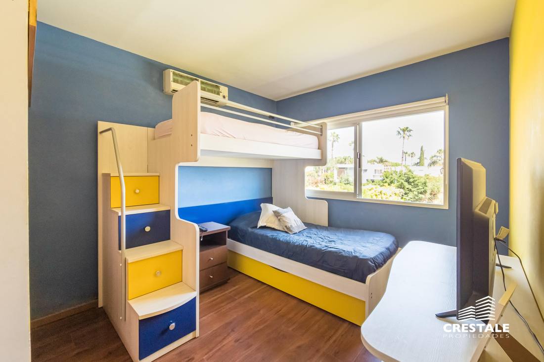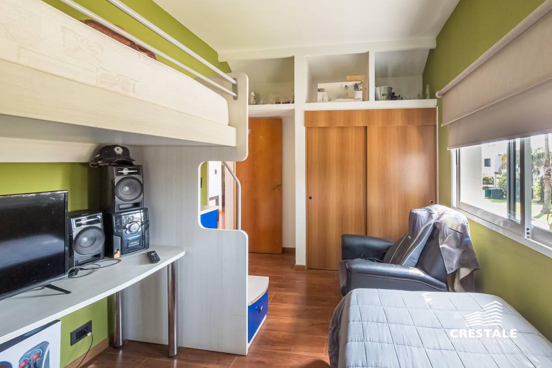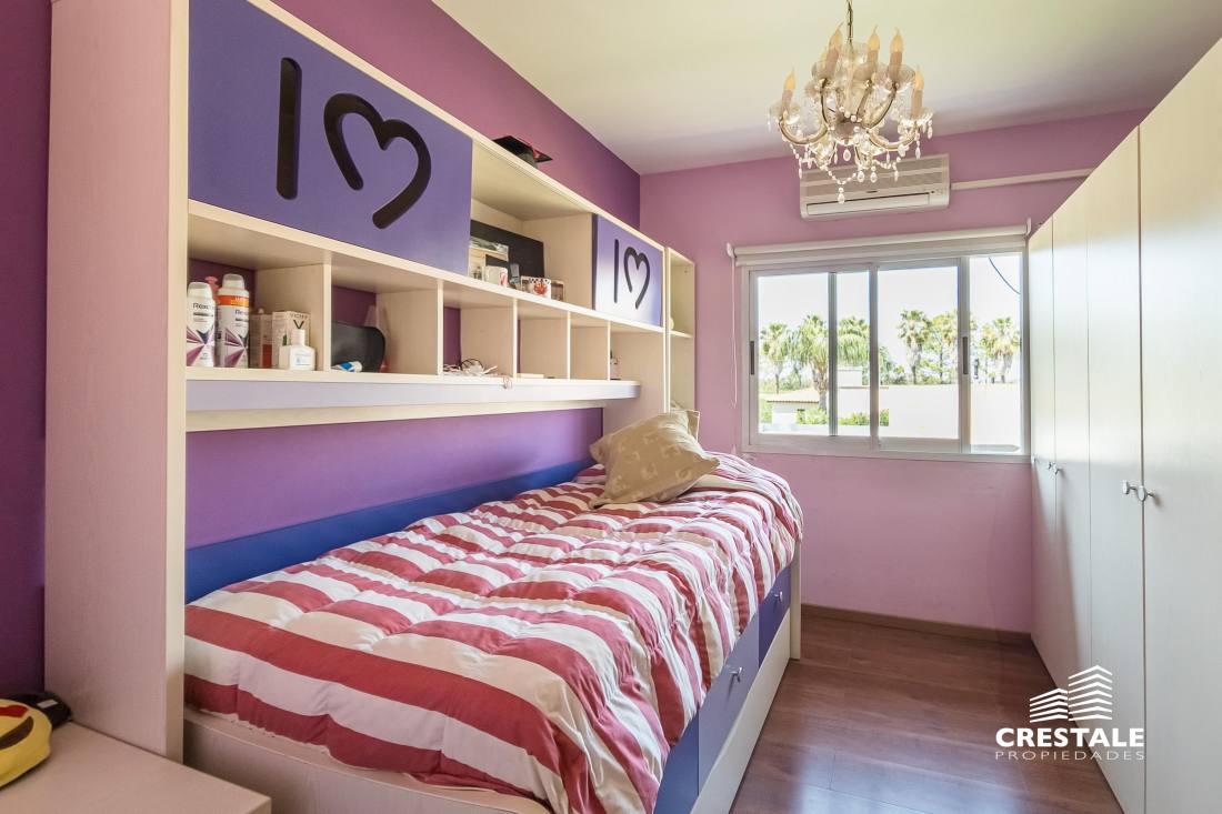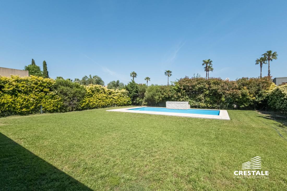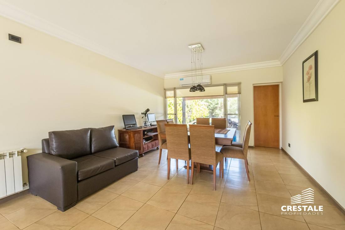 Propiedad desarrollada en dos plantas dentro del exclusivo barrio cerrado Funes Hills San Marino, sobre un lote de 800 m². En planta baja se ubica un amplio living comedor con ventanales que conectan el frente y el jardín, generando una excelente ventilación cruzada y gran luminosidad. Un escritorio con vista al jardín complementa el área social junto al toilette de recepción, recientemente reciclado. La cocina, con comedor diario, se vincula con el lavadero sectorizado y salida directa al exterior. La cochera pasante con portón eléctrico permite el ingreso de dos a tres vehículos y se utiliza también como quincho cerrado, totalmente vidriado y equipado con parrillero. En planta alta se disponen cuatro dormitorios: dos con placares empotrados, un dormitorio adicional y una suite principal con vestidor y baño privado. Ambos baños de la planta fueron reciclados a nuevo. El jardín se presenta completamente parquizado, con piscina equipada con cascada y doble bomba. Sistema de calefacción mediante caldera dual y radiadores en todos los ambientes.Funes Hills San Marino es uno de los barrios más consolidados de Funes, con amplias calles asfaltadas, arbolado maduro y seguridad las 24 horas. Ubicado a pocos minutos del centro de Funes y de los principales accesos hacia Rosario. Cercano a centros educativos como el Colegio Mirasoles, Paseo Comercial Funes Mall y espacios recreativos de la zona.Código web: CHO7461563
