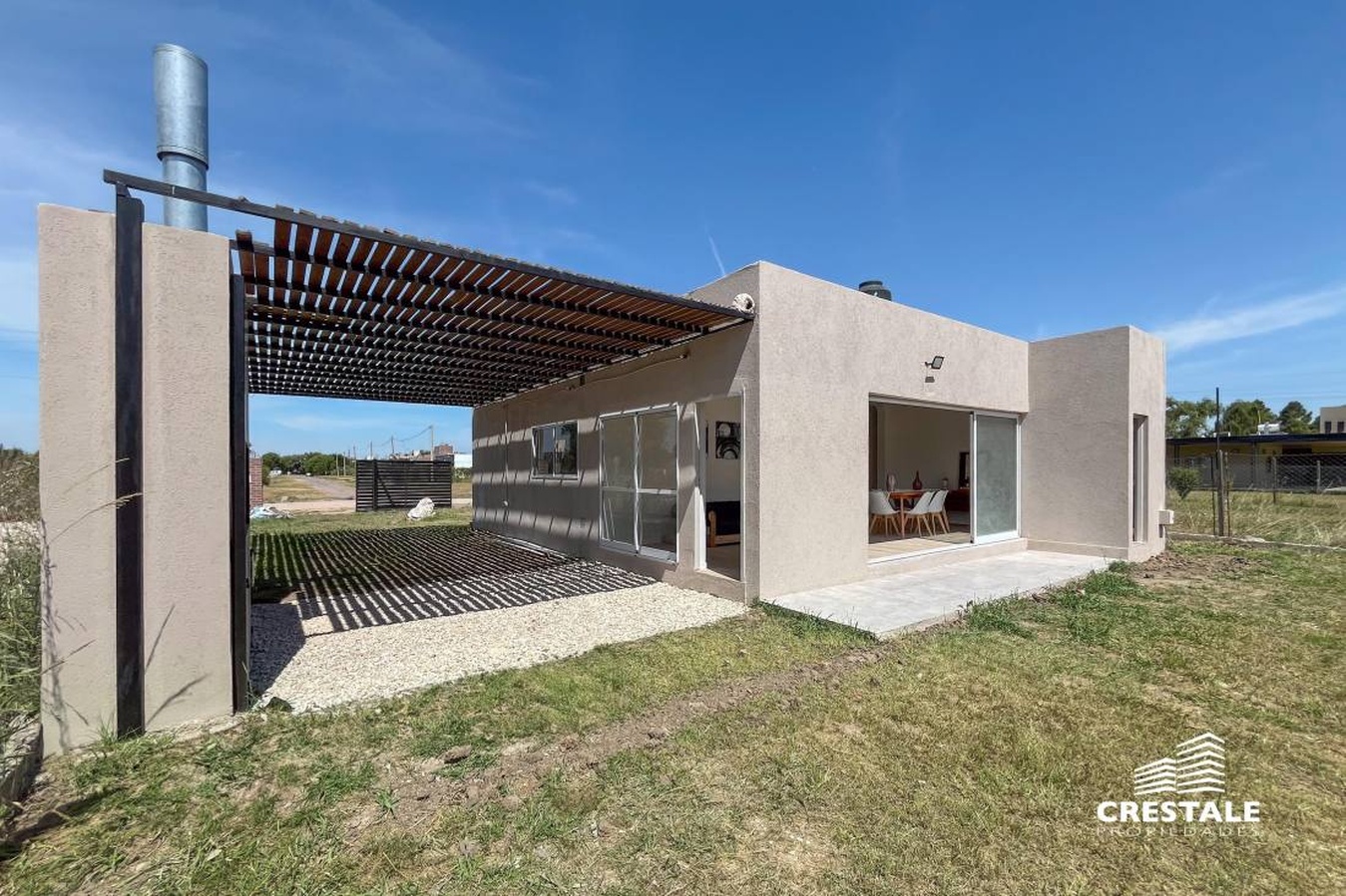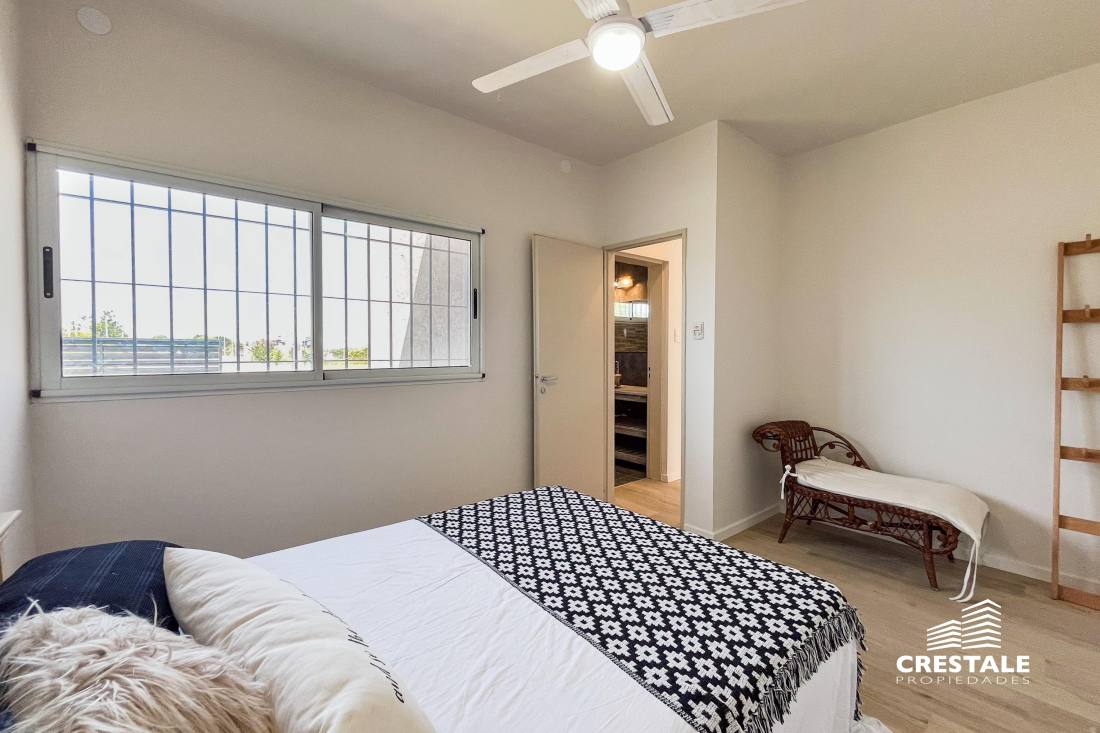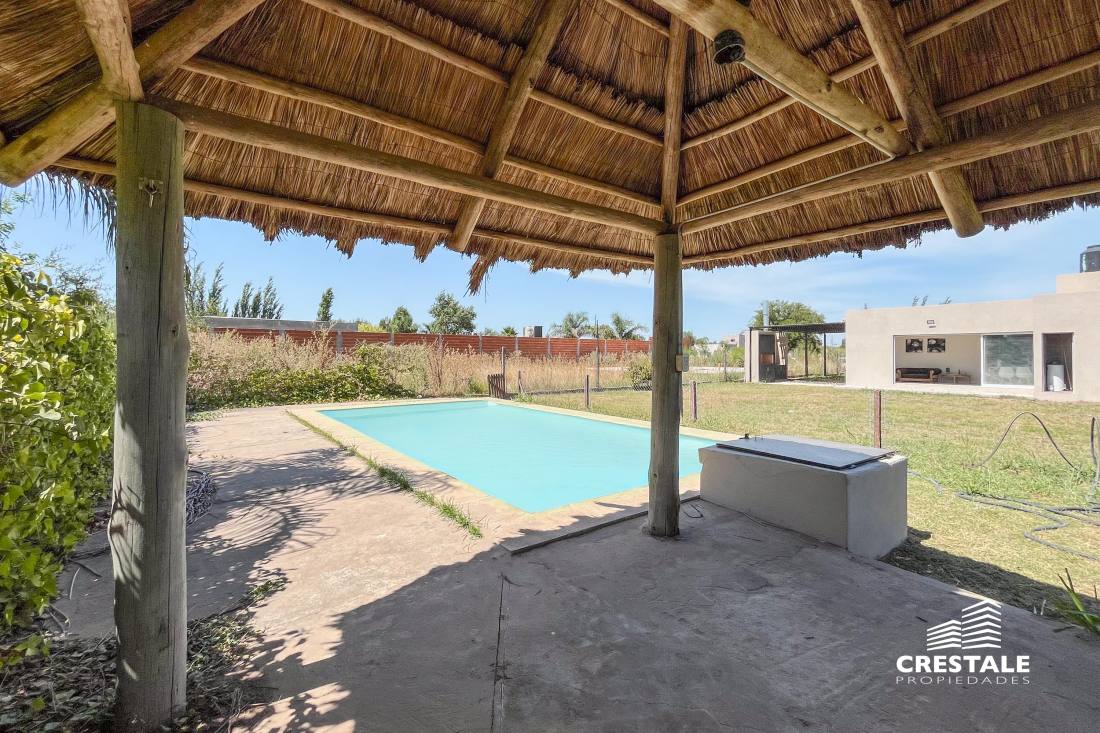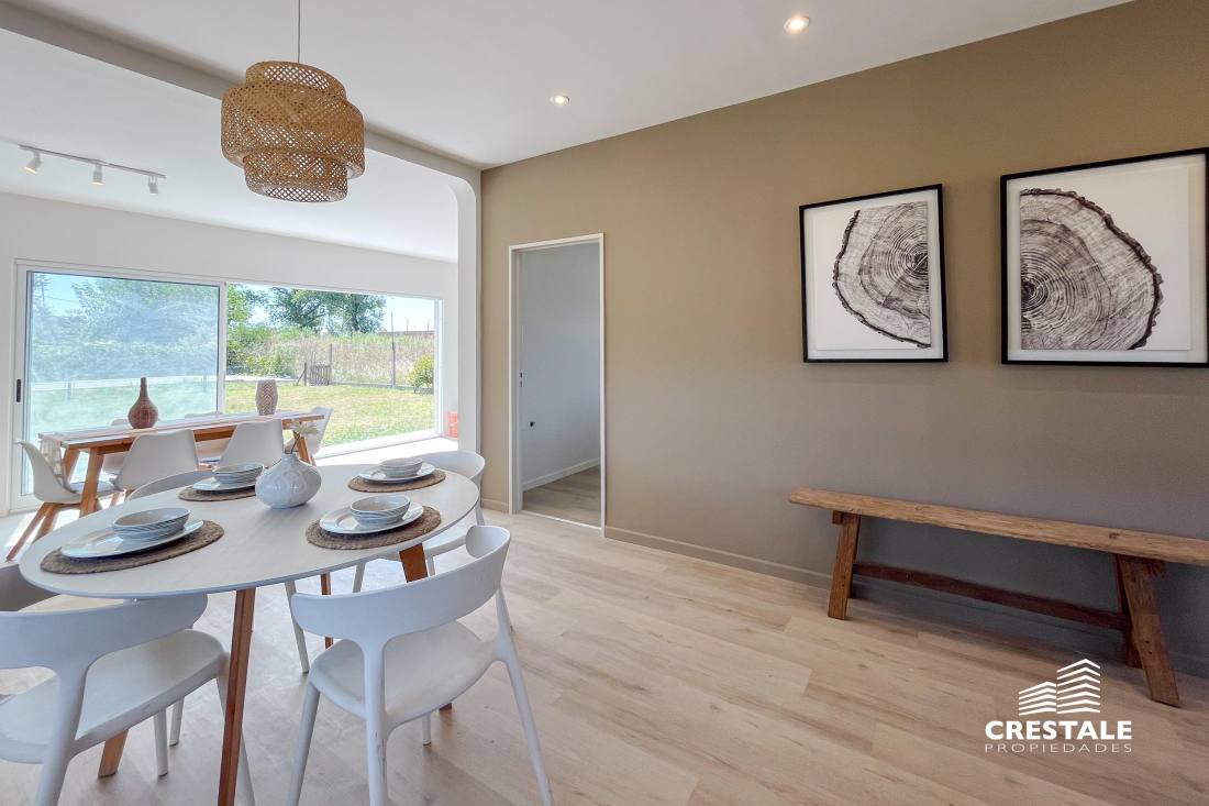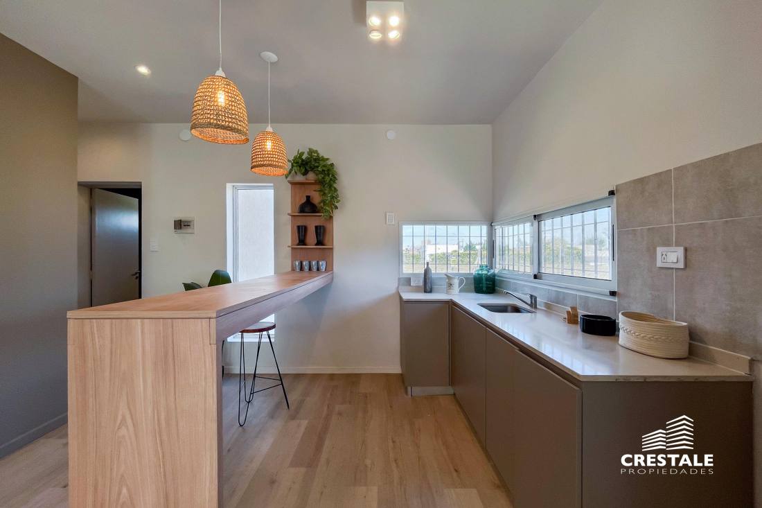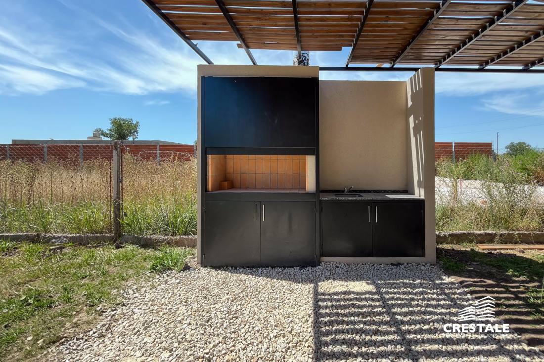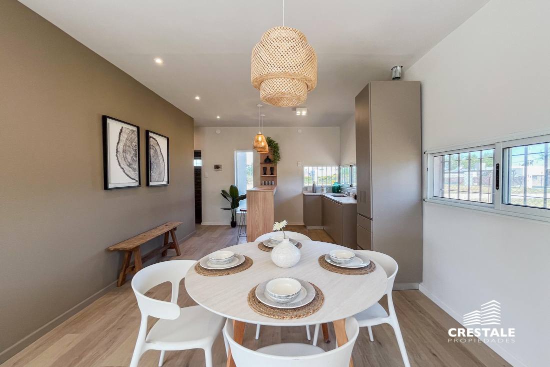 Casa al frente desarrollada íntegramente en una sola planta, ubicada en el barrio Funes Town, con rápido y cómodo acceso desde Ruta 9. La propiedad cuenta con dos dormitorios y dos baños completos. Dispone de una cochera cubierta que actualmente se utiliza como quincho, equipada con parrillero y bacha, lo que la convierte en un espacio ideal para reuniones sociales. El sector exterior se desarrolla sobre un amplio terreno, destacándose una pileta de 8 x 4 metros ubicada al fondo del lote, acompañada por una pérgola, generando un entorno funcional y disfrutable. La vivienda se encuentra a estrenar, en excelente estado, con orientación este y disposición al frente, lista para habitar. Ubicada en Funes Town, un barrio residencial consolidado, caracterizado por su entorno tranquilo y su cercanía a los principales accesos de la ciudad de Funes. La zona ofrece un entorno ideal para vivienda permanente o de fin de semana, con buena conectividad y crecimiento sostenido. Código web: CHO7690887