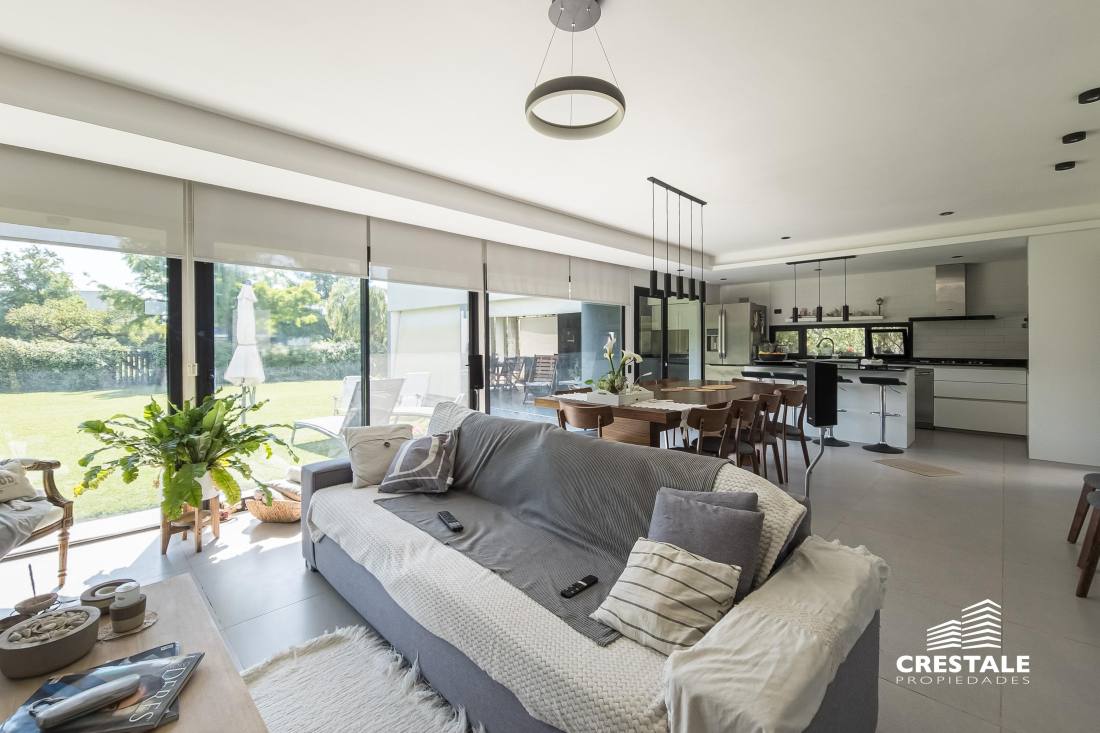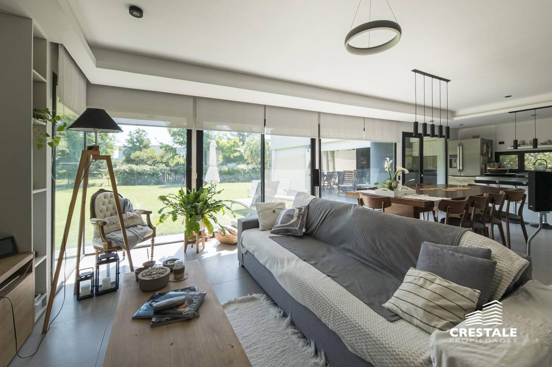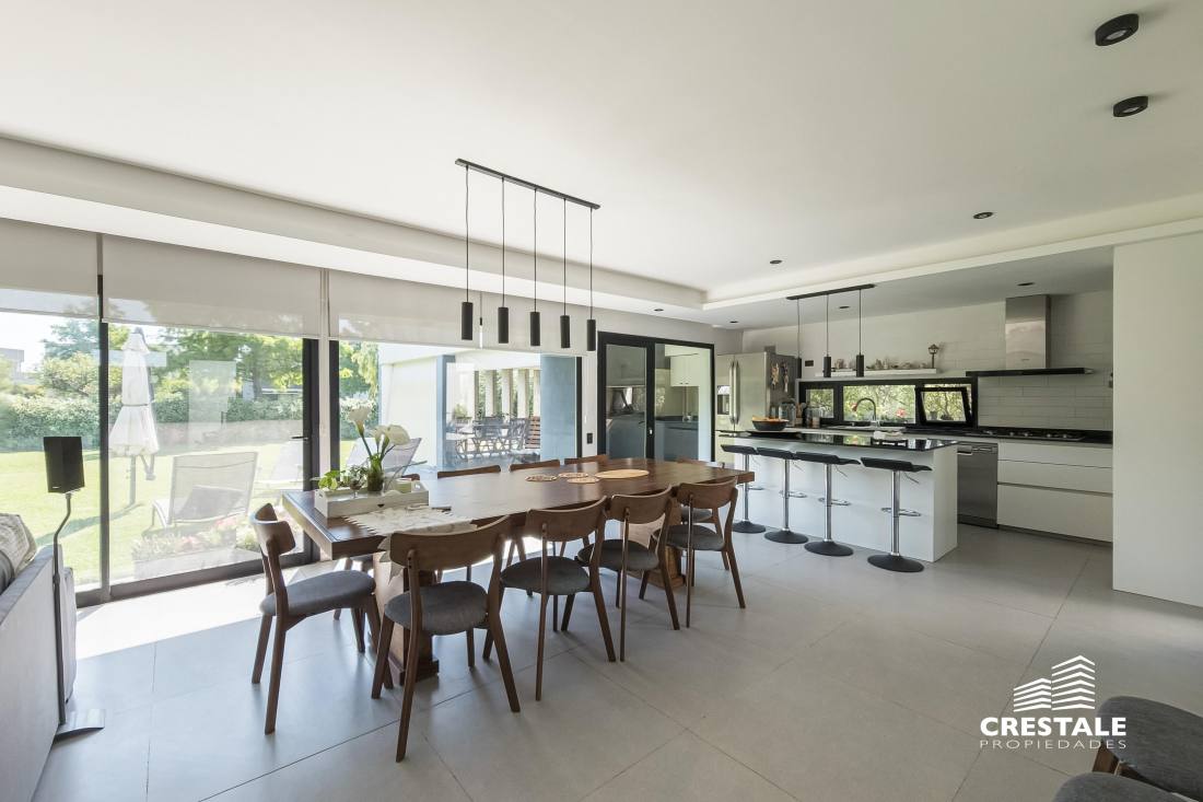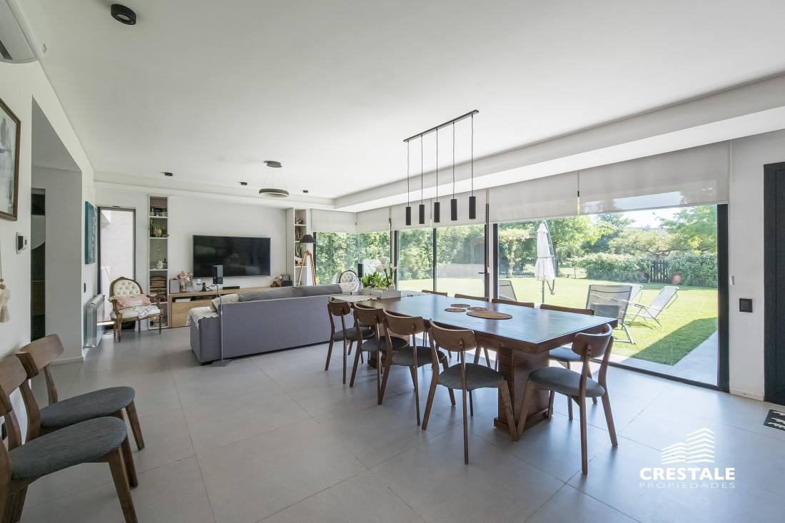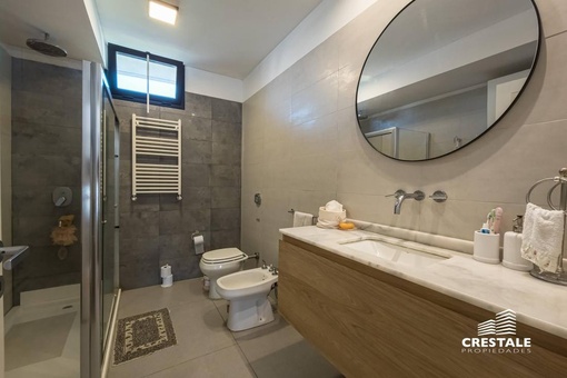 Ubicada en el exclusivo barrio San Sebastián, esta propiedad se desarrolla en dos plantas sobre un lote de 800 m², con una ubicación privilegiada que ofrece fondo sin vecinos y vistas abiertas al bosque del barrio, garantizando privacidad y entorno natural. Al ingresar, un recibidor distribuye hacia el dormitorio principal en suite, un baño de cortesía y un amplio living-comedor integrado con la cocina mediante una isla estilo americano. Grandes ventanales conectan este espacio con el jardín, aportando luminosidad y una integración fluida con el exterior. La cocina se comunica directamente con la galería con parrillero, ideal para reuniones y momentos al aire libre. El lavadero independiente, ubicado entre la cocina y la cochera, cuenta con amplios placares tipo despensa para mayor funcionalidad. En la planta alta, se desarrollan dos dormitorios que comparten un baño completo con ducha. La cochera cubierta para dos autos ofrece espacio de guardado adicional. En el exterior, el jardín cuenta con una pérgola cubierta de glicinas, que crea un rincón único de descanso con vistas al bosque de pinos que caracteriza el fondo del lote. Una casa que combina diseño, confort y naturaleza, dentro de uno de los barrios más valorados de Funes.San Sebastián se encuentra en una ubicación inmejorable de Funes, a pocos minutos del centro de Rosario. El barrio cuenta con 68 hectáreas urbanizadas, 587 lotes que oscilan entre 800 m² aproximadamente. Área de amenities del barrio, concebida para actividades recreativas y esparcimiento, así también como sectores comerciales. Asfaltado en calle con cordón-cuneta de hormigón, Red eléctrica subterránea, Red interna de agua, Red interna de gas natural, Red cloacal, Red de telefonía y datos, Red de ductos para TV-cable, Forestación en veredas, Alumbrado público en calles y áreas comunes.Código web: CHO7454729
