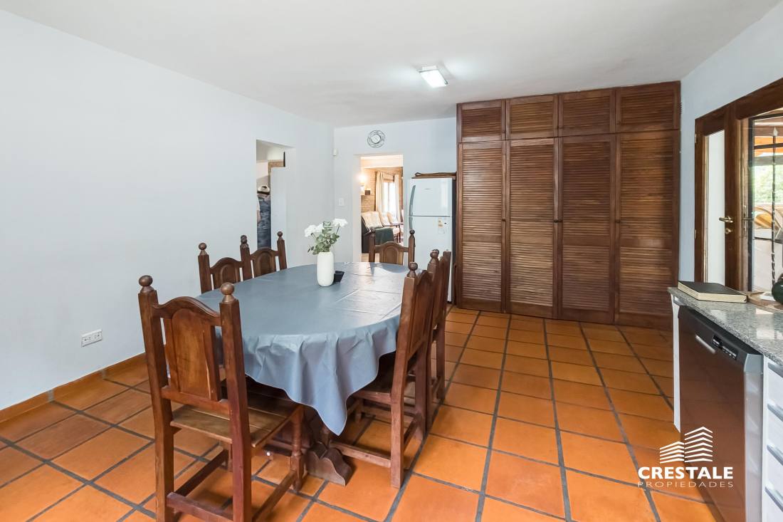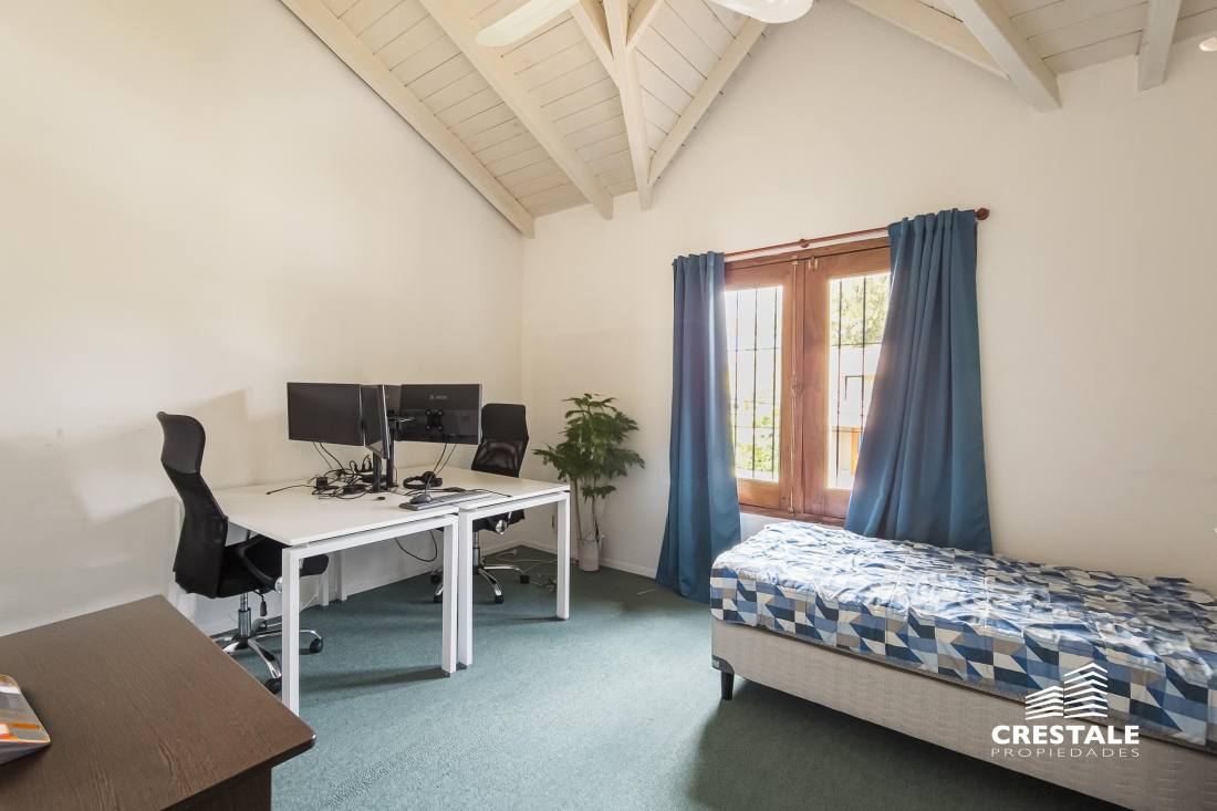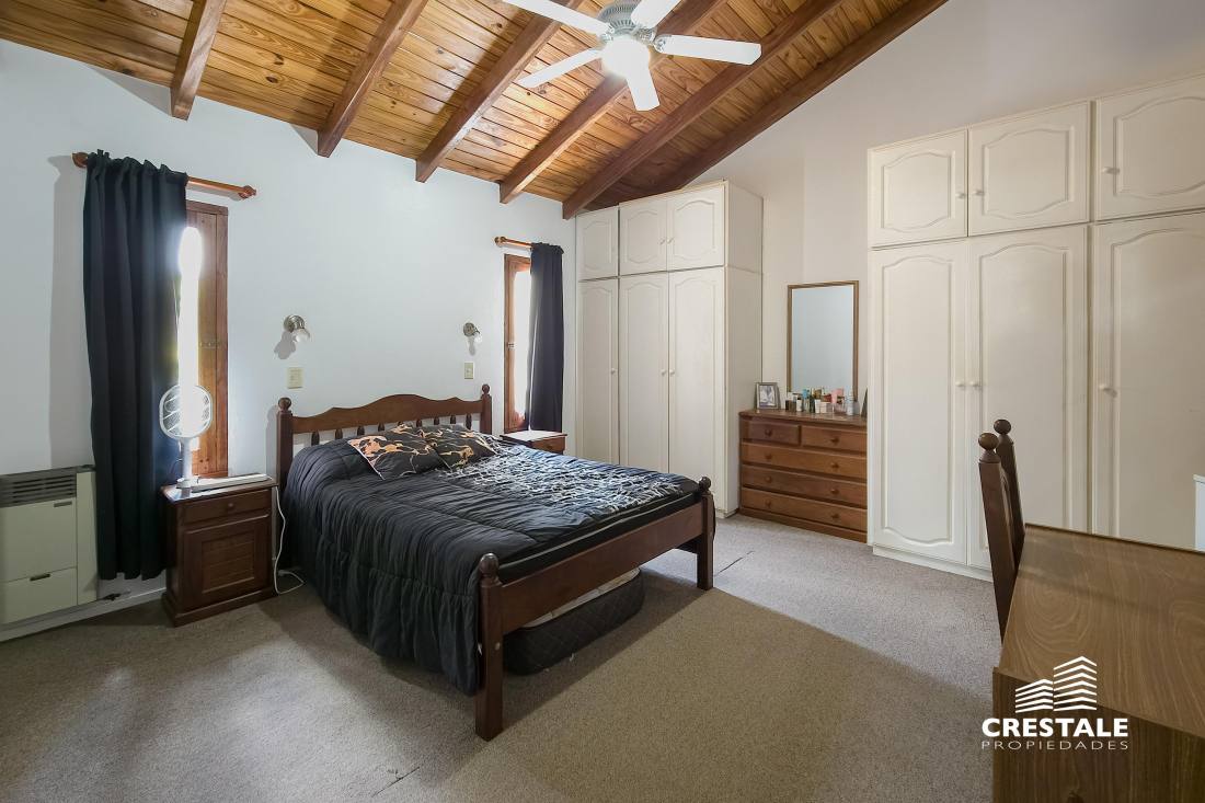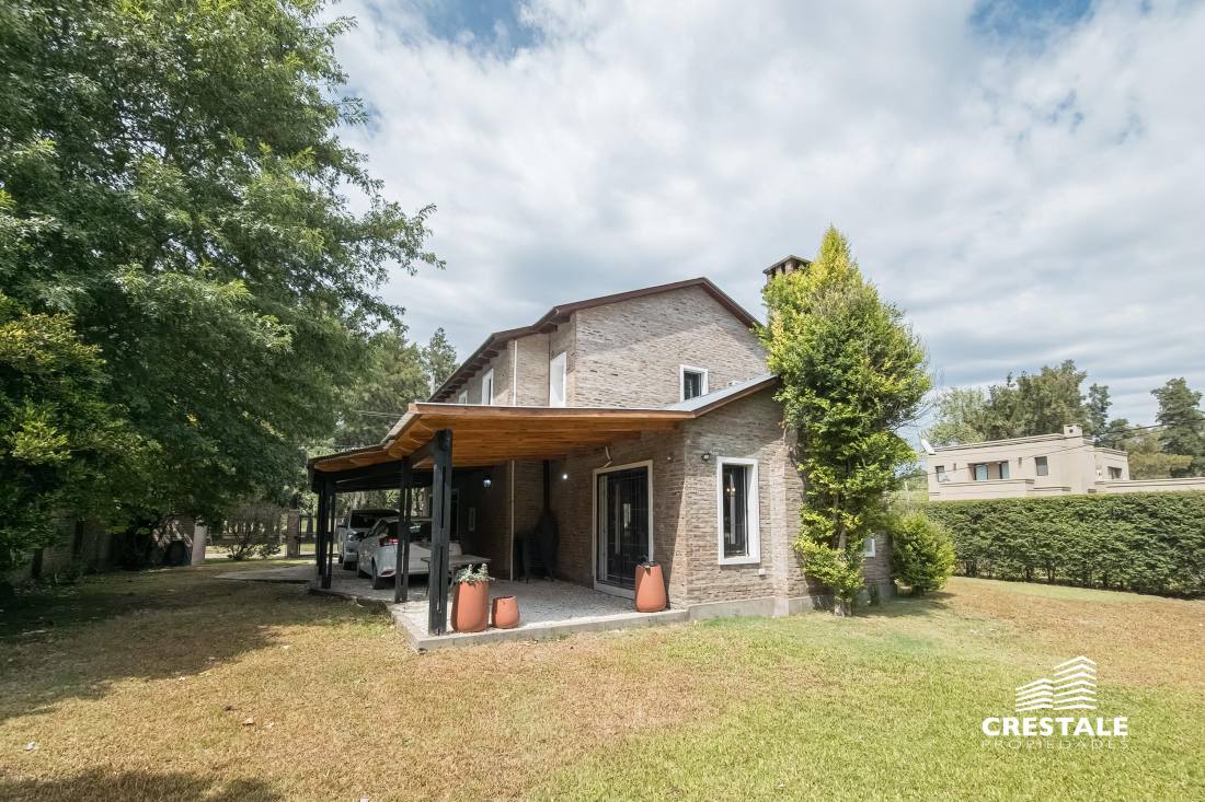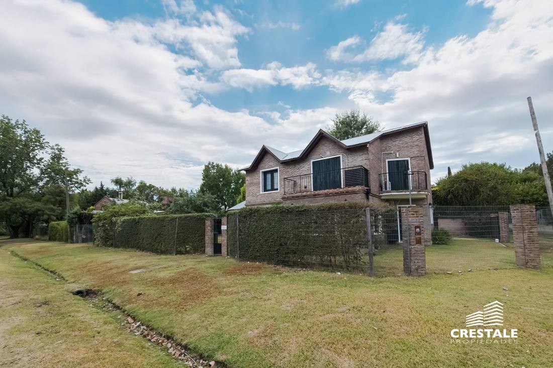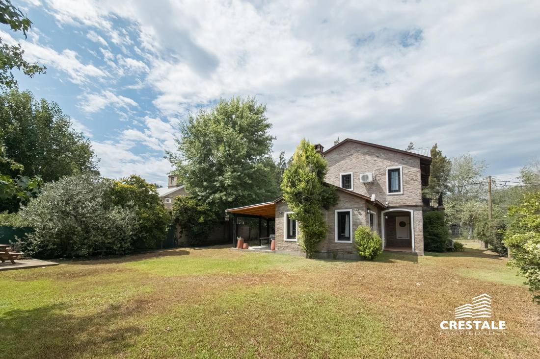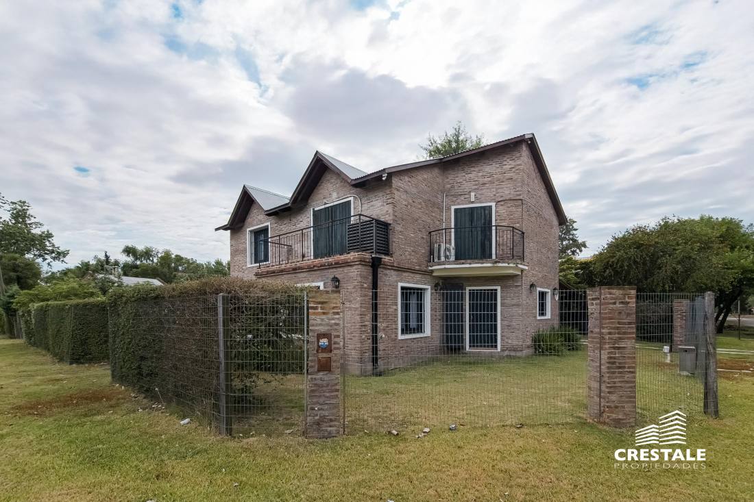 Propiedad desarrollada en dos plantas, implantada sobre un amplio lote de esquina de 790 m², con doble ingreso y excelente orientación noreste.En planta baja, la casa dispone de una cochera pasante semicubierta que funciona también como galería, con capacidad para dos vehículos. El ingreso principal conduce a un amplio living–comedor, bien ventilado y con vistas al jardín. La cocina se presenta separada, con comedor diario, ofreciendo un espacio funcional y cómodo para el uso cotidiano.En este nivel se encuentra además un dormitorio de generosas dimensiones en suite, ideal para uso principal o huéspedes, y un toilette de recepción.En planta alta se desarrolla el sector íntimo, compuesto por tres dormitorios, uno de ellos en suite, y un baño completo que asiste a los restantes.El exterior se destaca por un gran jardín con amplios espacios verdes, ideal para disfrutar al aire libre, y un depósito que aporta capacidad de guardado adicional.La propiedad presenta una distribución equilibrada, ambientes bien definidos y un excelente potencial tanto para vivienda familiar como para quienes buscan amplitud de terreno en una ubicación consolidada de Fisherton. Ubicada en el barrio Aldea, dentro de Fisherton, una zona residencial de baja densidad, caracterizada por viviendas unifamiliares, calles tranquilas y un entorno arbolado.El sector ofrece buena conectividad con arterias principales, cercanía a colegios, centros comerciales, clubes y servicios, consolidándose como una de las áreas más buscadas para residencia permanente en la ciudad de Rosario.La ubicación en esquina y el tamaño del lote aportan privacidad, luminosidad y posibilidades de uso y expansión. Código web: CHO7765165