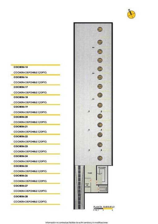 Cochera cubierta - sub suelo - Información y medidas provistas aproximadas, las cuales se ratificarán con la documentación pertinente suministrada por organismos públicos. En estos casos, al igual que las fotografías ilustrativas, no comprometen contractualmente a nuestra empresa pues no son vinculantes ni contractuales.
