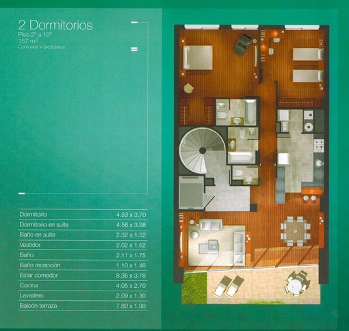 balcón terraza. Baño principal en suite. Vestidor. Baño recepción. Patio y