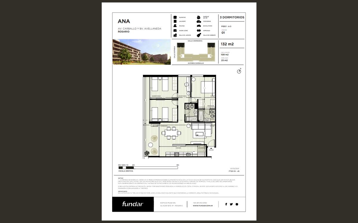 VENTA DESDE EL POZO. Nuevo emprendimiento de FUNDAR CONSTRUCCIONES : EDIFICIO ANA. Av. Carballo y Bv. Avellaneda Amplios departamentos de tres dormitorios. Desde 116 m2 totales hasta 142 m2 totales. Gran living comedor, cocina totalmente equipada, tres baños, balcón y lavadero. Todos externos. Opción frente, vista a la calle o vista parque interior Mínimo anticipo y máxima financiación Consultanos por forma de pago