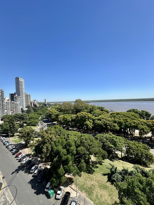 Departamento de 3 dormitorios con vista franca al río, ubicado en el piso 11 del Edificio Río V, en pleno Barrio Martin, a metros del Parque Urquiza y la costanera, dentro de un entorno residencial tranquilo con excelente accesibilidad y servicios. Superficie exclusiva: 143 m². Cuenta con palier exclusivo y doble ingreso. El principal conduce a un amplio living comedor con salida al balcón y vista abierta al río. La cocina es independiente, reciclada, con espacio para comedor diario. Lavadero independiente y baño de servicio. El sector íntimo se compone de un dormitorio principal con salida al balcón. Dos dormitorios al contrafrente. Todos cuentan con placares completos, persianas de enrollar y pisos de parquet. Dos baños completos. Presenta aberturas de PVC con DVH, aire acondicionado individual, calefacción central y terminaciones de categoría. Incluye COCHERA y BAULERA (4,56 m²).