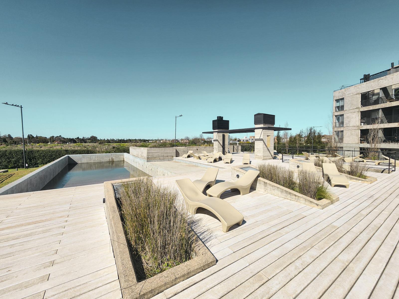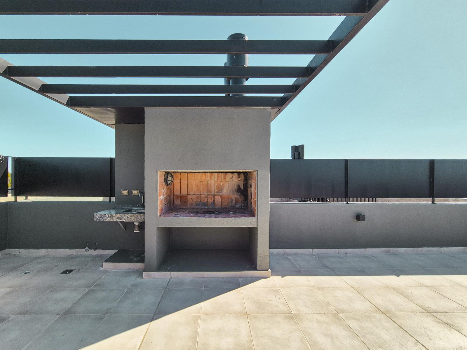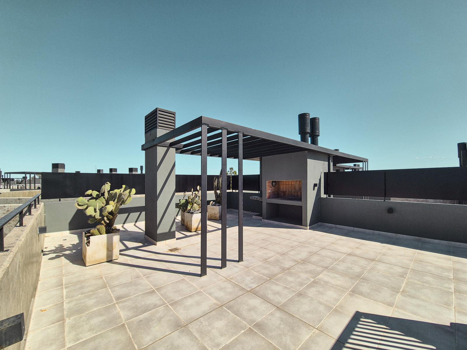 Departamento de 1 dormitorio con terraza exclusiva con acceso directo desde la unidad. Ingreso mediante hall recibidor, cocina semi integrada por barra desayunadora a living comedor, balcón con escalera a terraza exclusiva. Baño completo con bañera con mampara colocada. Dormitorio con placar empotrado con interiores diseñados. Pisos de porcelanato. Cocina con muebles de primera calidad con alacenas y bajo mesadas, cocina a gas marca Longvie, extractor marca Cata, bacha de acero inoxidable doble y mesada de mármol, espacio técnico para lavarropas, caldera marca Baxi y heladera. Calefacción por radiadores, pre instalación de A/A en todos lo ambientes. Aberturas de aluminio con vidrio DVH y mosquiteros, cortinas Black out roller colocadas en dormitorio. Balcón con escalera hacia terraza exclusiva muy amplia con parrillero, mesada, bacha exterior y estructura para futura pérgola. Alarma instalada. • Proyecto: Ocho Sauces se organiza bajo la figura de un barrio cerrado pero en altura. Está formado por ocho condominios de planta baja y tres pisos cada una. Cada condominio está compuesto por tres módulos de tres departamentos por piso cada uno. Cada unidad de viviendas agrupadas, incluye una variada tipología de departamentos de uno, dos y tres dormitorios, con amplias expansiones de uso exclusivo, que se suman a las áreas verdes y de amenities. Seguridad 24 horas. Cuenta con 1 ascensor por Torre. Piscina con solárium out-door, piscina climatizada in door, sector infantil, vestuarios, gimnasio, seguridad privada, sala de masajes, wine-room, senda aeróbica interna, bicisendas, espacios de estacionamiento de cortesía y cocheras subterráneas para liberar las áreas verdes. • Ubicación: En la mejor zona de Funes, área consolidada entre los barrios privados Cadaques y Miraflores, con acceso pavimentado por Avenida Fuerza Aérea. • Observación: Unidad de 3º piso con balcón y terraza exclusiva. Entrega inmediata. Antigüedad 2021. No cuenta con cochera. Superficie aproximada. NOTA: Las medidas informadas incluyen el 50% de los muros medianeros y el 100% de los muros interiores. Todas las fotos publicadas son propiedad intelectual de Vanzini Black S.A. No es permitida su utilización comercial. Las medidas y superficies expuestas son estimativas y a corroborar con sus respectivos planos y títulos. La publicación de este inmueble es a solo título informativo, la venta de la propiedad está supeditada a que el propietario cumplimente el trámite ante la AFIP para la obtención del Número de COTI correspondiente. La información no es contractual. Si querés saber el valor de tu propiedad, contactate con nosotros y tasamos tu propiedad en 48hs. Si querés saber el valor de tu propiedad, contactate con nosotros y tasamos tu propiedad en 48hs.