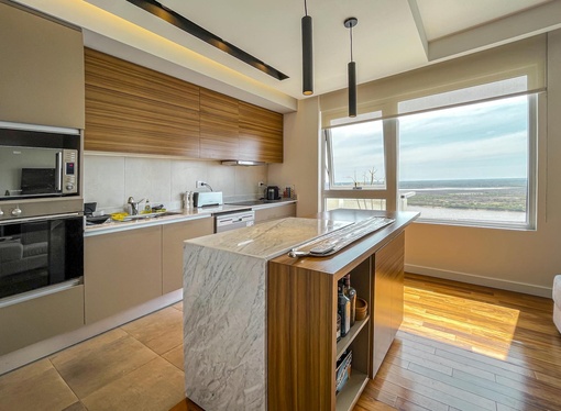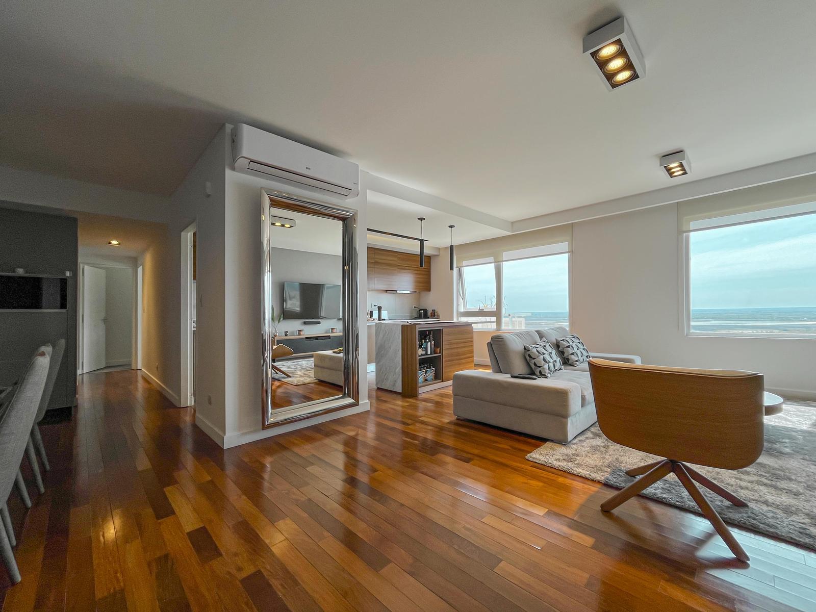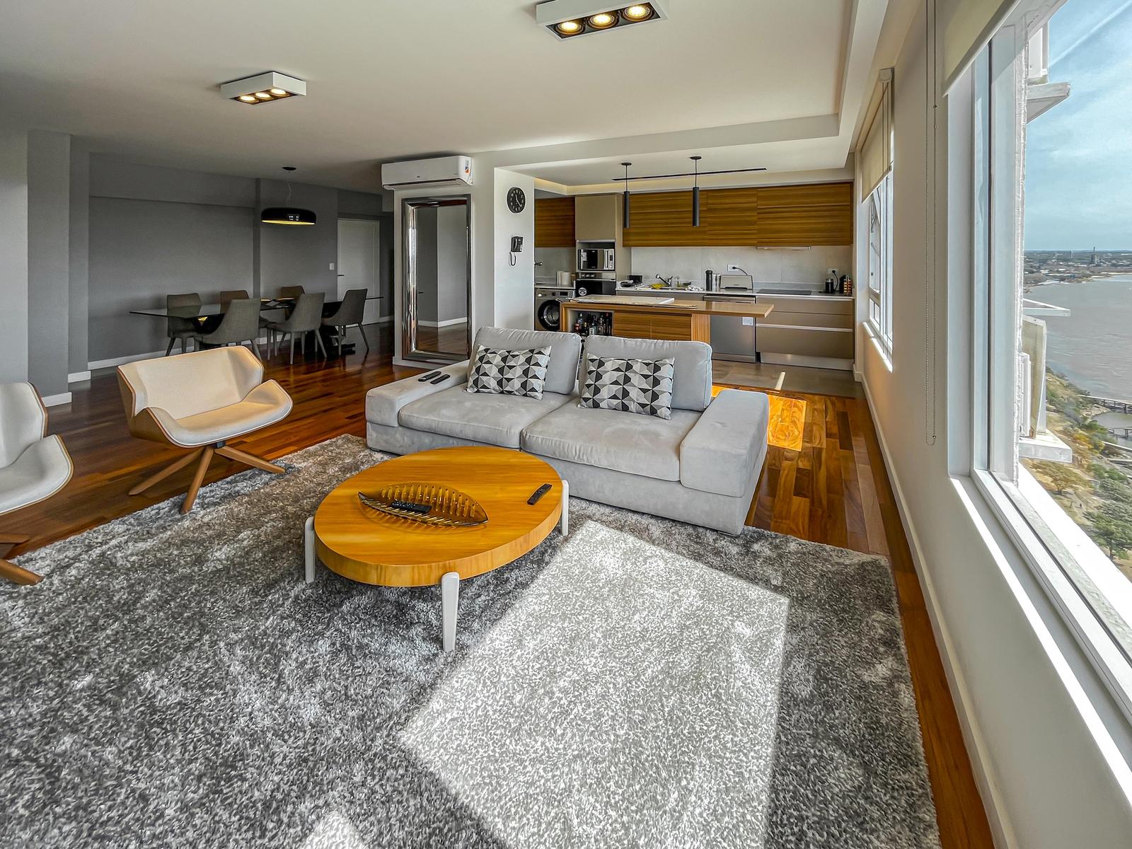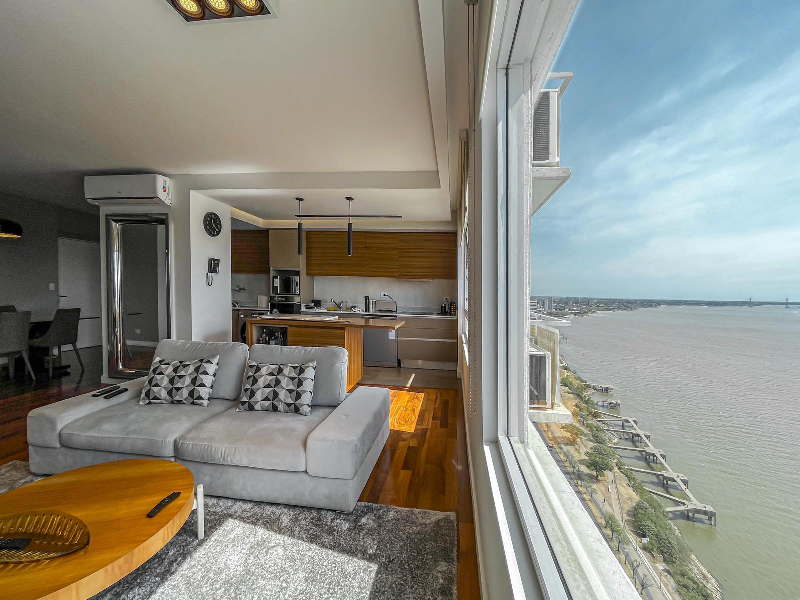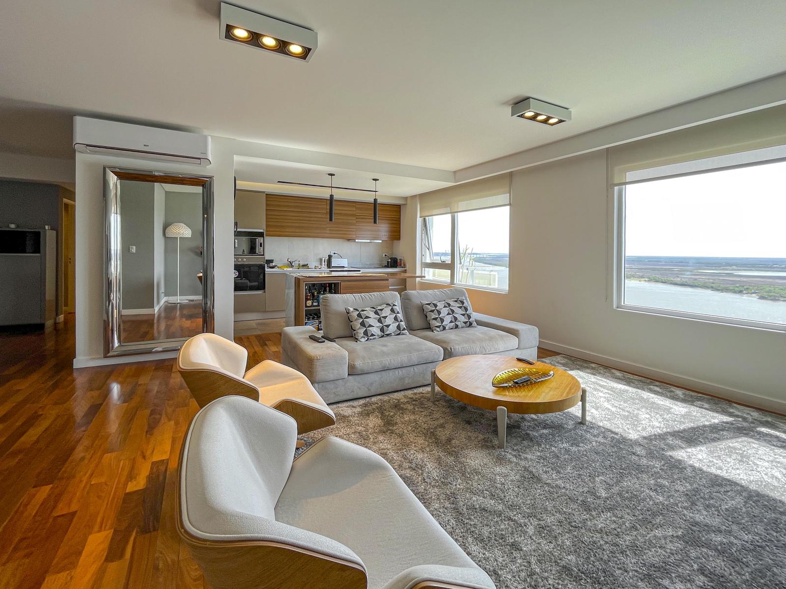 Departamento de 2 dormitorios premium frente al río con ambientes amplios, 3 baños (uno suite, baño secundario y toilette), vestidor, cochera y vista al río. Impecable estado. Ingreso doble, el principal a comedor diferenciado con living, cocina anexa con isla de madera y lavadero incorporado, dormitorio en suite con vestidor, 2 dormitorios, baño secundario y toilette. Todos los espacios tienen vista al río. Cochera cómoda ubicada en el primer subsuelo. Terminación de calidad con pisos de ingeniería en madera combinados con porcelanato en áreas húmedas y alfombras en los dormitorios, aberturas de alta prestación con DVH, Splits frío/calor en todos los ambientes y losa radiante eléctrica en los baños, agua caliente central del edificio, revestimiento en los baños de piso a techo, extractores, mampara de vidrio donde corresponda, mesada de mármol con bacha de cerámica y griferías de primeras marcas. Cortinas de la marca Hunter Douglas. La cocina anexa tiene toda la onda, con mobiliario completo de alacena, bajo mesada, horno eléctrico y anafe diferenciados, gran mesada de mármol con detalles en madera, bacha doble de acero inoxidable, lavavajillas, espacio técnico para heladera con doble puerta y lavadero sectorizado que cuenta con bacha independiente. • Ubicación: En Puerto Norte, la zona con más crecimiento inmobiliario de Rosario donde todos quieren vivir e invertir. En la primera línea al río y a sus islas. • Proyecto: Torre Maui con 2 torres de 44 pisos con franca vista al RIO y la ciudad. 6 ascensores de frecuencia variable y de última tecnología. Mantenimiento del edificio mediante servicio de limpieza. Seguridad (chip de control de acceso, persona física 24 horas). Amenities de alta jerarquía que incluyen gran pileta, sauna, gimnasio, SUM y seguridad 24 horas. • Observación: No tiene balcón. Vista al río franca. Cuenta con cochera. Se ceden los derechos y acciones en caso de venta. No es apto crédito. Permutaría por menor valor. NOTA: Las medidas informadas incluyen el 50% de los muros medianeros y el 100% de los muros interiores. Todas las fotos publicadas son propiedad intelectual de Vanzini Black S.A. No es permitida su utilización comercial. Las medidas y superficies expuestas son estimativas y a corroborar con sus respectivos planos y títulos. La publicación de este inmueble es a solo título informativo, la venta de la propiedad está supeditada a que el propietario cumplimente el trámite ante la AFIP para la obtención del Número de COTI correspondiente. La información no es contractual. Si querés saber el valor de tu propiedad, contactate con nosotros y tasamos tu propiedad en 48hs.