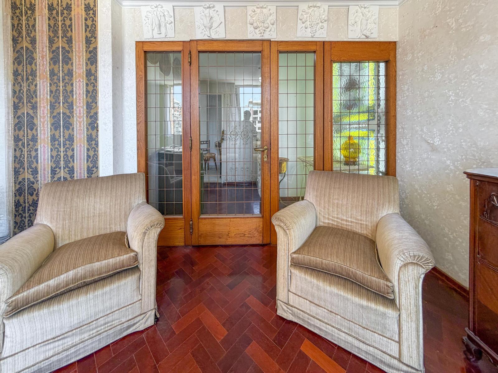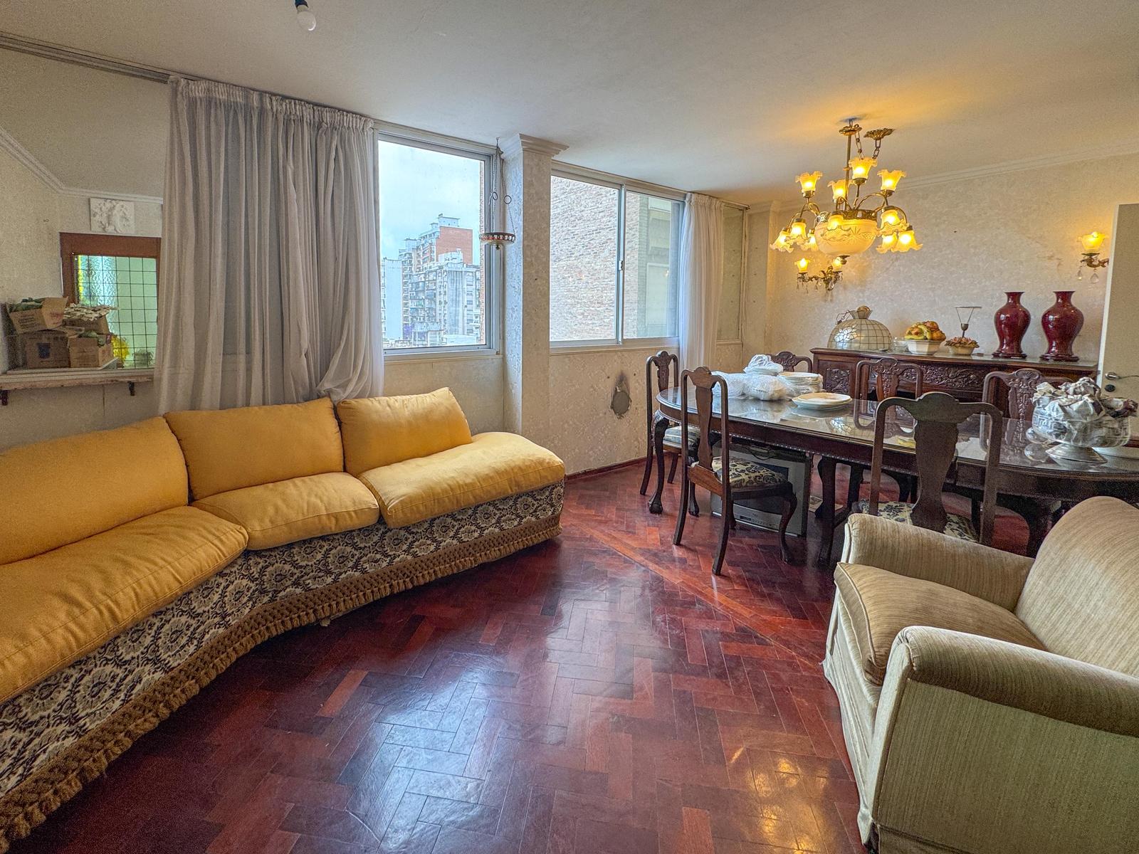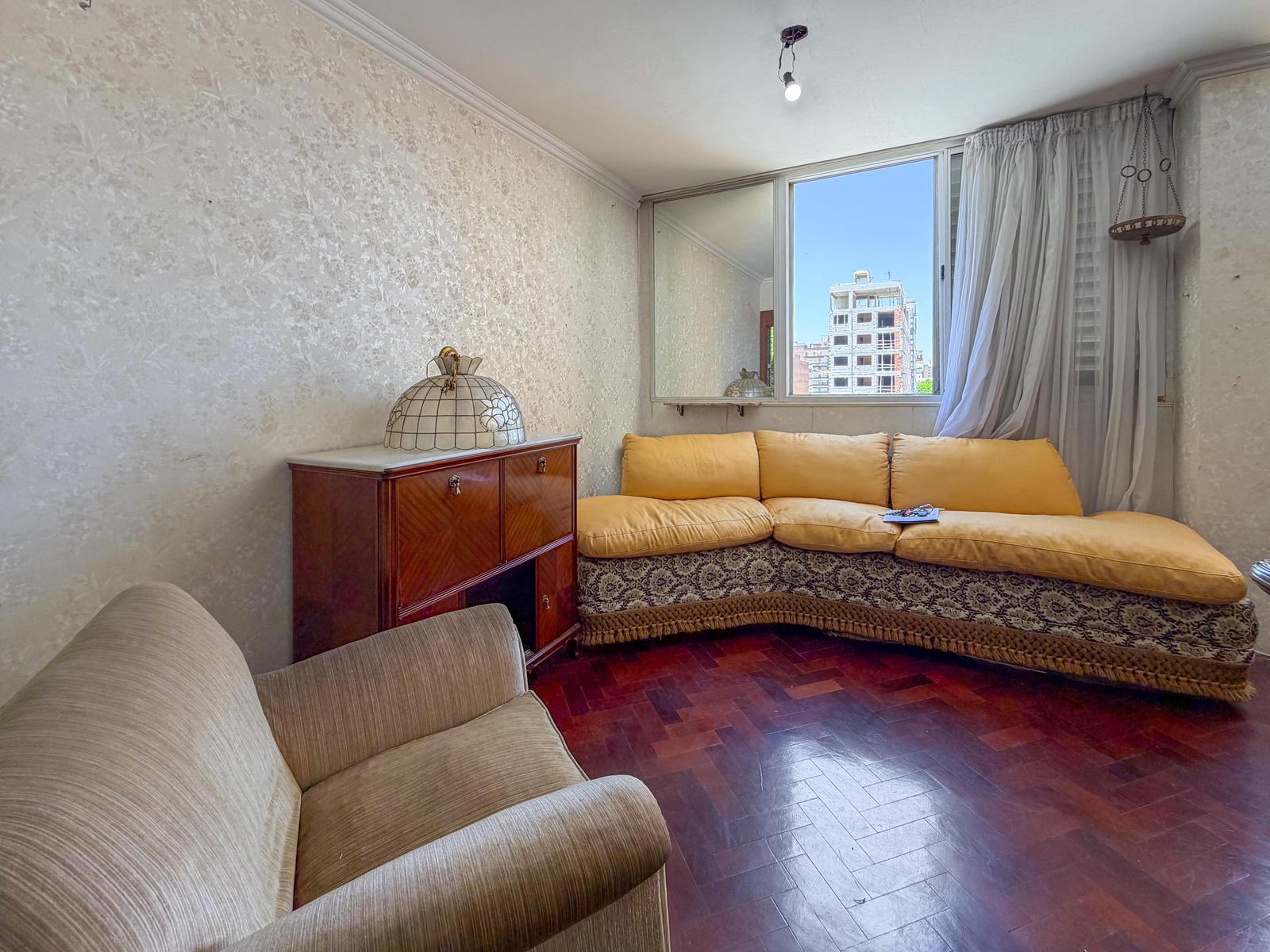 Hermoso departamento de 2 dormitorios totalmente original, muy bien cuidado. Su ingreso a la propiedad cuanta con doble enrejado en su puerta principal, y da a un hermoso recibidor con vitro. Conectado se encuentra un amplio living comedor con orientación Este que permite ingreso de un hermoso sol por la mañana. Desde el recibidor de la propiedad se encuentra un pasillo que conecta al baño y a los dos dormitorios. Su cocina se encuentra totalmente separada con mobiliario completo y mucho espacio de guardado, ventilación y extractor, espacio técnico para lavarropas y disposición para una mesa de comedor diario. Terminaciones de época con piso de parquet de madera muy bien cuidados en espacios sociales, ingreso, pasillo, living comedor y dormitorios. En espacios húmedos como cocina y baño, cuenta con porcelanato. Sistema de calefacción por estufa a gas, sistema de climatización a través de aires acondicionados y sistema de agua caliente por calefón a gas. Aberturas de aluminio con persianas, placares con interiores, baño de antiguo pero en correcto funcionamiento. • Proyecto: Hermoso palier acondicionado a nuevo, planta baja con local comercial con consultorio odontológico. Cuenta con 10 pisos, y cuatro departamentos por planta, dos ascensores. Portería. Control de acceso, cámaras de seguridad. Portón automático de cocheras. • Ubicación: En pleno centro de la ciudad, a cuadras de las peatonales. Zona comercial con amplias vías de transporte. • Observación: Originalmente era un 3 dormitorios pero se unieron ambientes y quedo de 2 dormitorios. Escriturado, apto Crédito. Antigüedad 1964. Cuenta con Cochera. Opcional Amoblado. Adecuación de gas realizada. Tiene portero. Superficie cubierta 60,59m2 más 27m² de muros, superficie con espacio comunes 88,91m2. NOTA: Las medidas informadas incluyen el 50% de los muros medianeros y el 100% de los muros interiores. Todas las fotos publicadas son propiedad intelectual de Vanzini Black S.A. No es permitida su utilización comercial. Las medidas y superficies expuestas son estimativas y a corroborar con sus respectivos planos y títulos. La publicación de este inmueble es a solo título informativo, la venta de la propiedad está supeditada a que el propietario cumplimente el trámite ante la AFIP para la obtención del Número de COTI correspondiente. La información no es contractual. Si querés saber el valor de tu propiedad, contactate con nosotros y tasamos tu propiedad en 48hs.