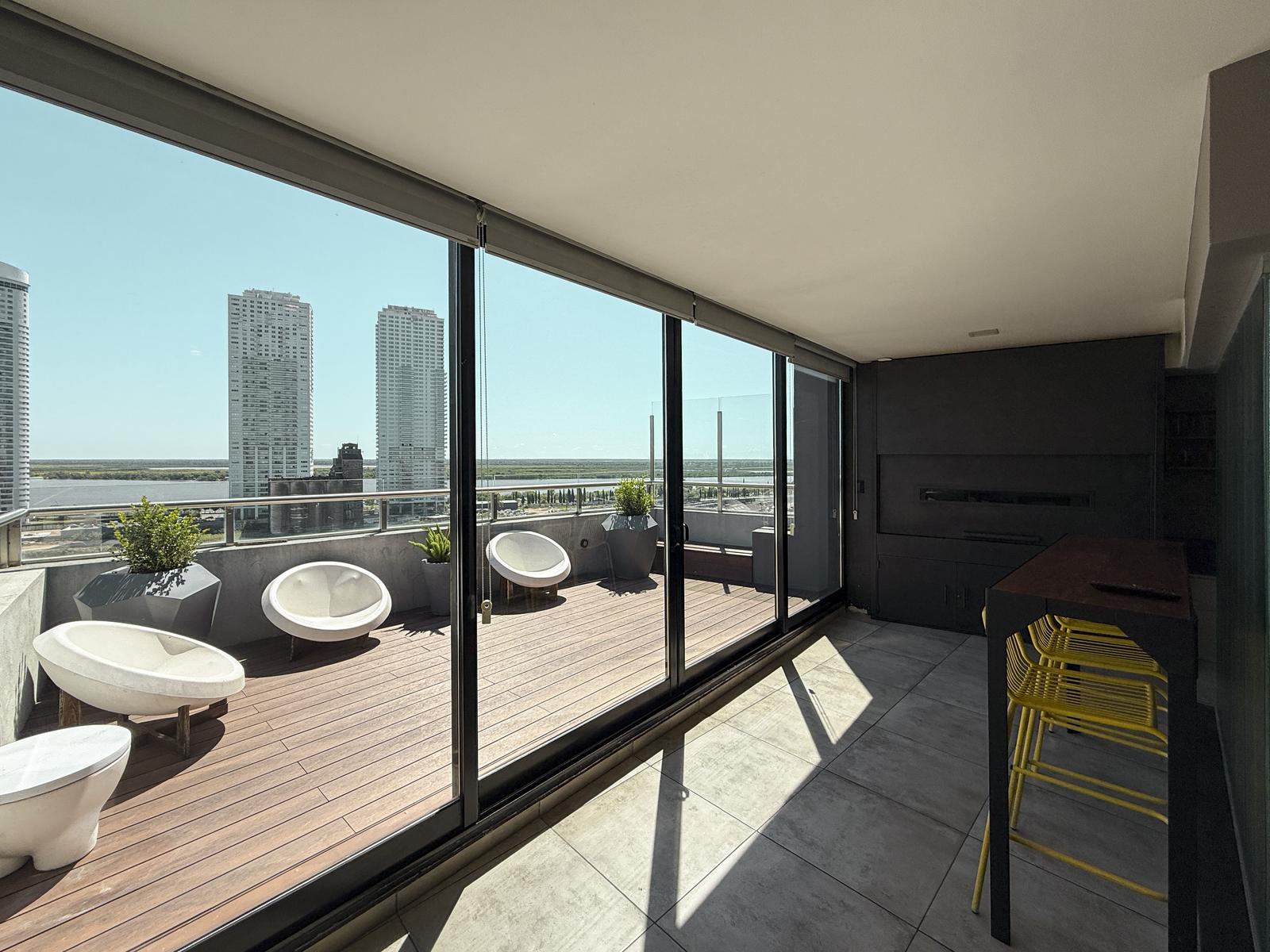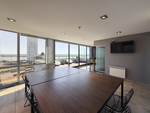 Departamento de 2 dormitorios con balcón al frente y vista despejada a puerto norte, cocina separada con pequeño comedor, lavadero independiente, 2 baños (uno en suite), doble ingreso y extenso living-comedor. Calidad constructiva premium con pisos de madera de ingeniería color natural, aberturas de aluminio con DVH, persianas de PVC en dormitorios, placares completos con puertas corredizas, espejo e interiores colocados, agua caliente mediante caldera dual, radiadores para calefacción (no incluye artefactos) y preinstalación de A/A. Cocina con mobiliario completo de bajo mesada, alacena, horno y anafe independiente, bacha de acero inoxidable doble sobre mesada negra, purificador de aire y espacio técnico para heladera más lavavajillas. Baños de diseño íntimo, loza sanitaria y griferías de primeras marcas. Balcones con deck de PVC símil madera. • Proyecto: Edificio Mirador con planta baja más 11 pisos con unidades residenciales de 2 y 3 dormitorios, 2 ascensores, control de acceso, cámaras y tótem de seguridad, entre piso con gimnasio, sauna y spa más correctos vestuarios. Grupo generador para espacios comunes, 3 niveles de cocheras por rampa fija y portón automático, azotea común con quincho cerrado, solárium con pileta y mirador 360º con área de relax. • Ubicación: En Ovidio Lagos y el Río, el edificio limita entre el tradicional barrio Pichincha y el exclusivo barrio Puerto Norte. Un lugar con una excelente conexión a puntos clave de la ciudad y cercano a un paseo gastronómico con diversos bares y restaurantes de gran nivel. • Observación: Entrega inmediata. Opcional cochera. A estrenar, antigüedad 2024. Escritura inmediata. NOTA: Las medidas informadas incluyen el 50% de los muros medianeros y el 100% de los muros interiores. Todas las fotos publicadas son propiedad intelectual de Vanzini Black S.A. No es permitida su utilización comercial. Las medidas y superficies expuestas son estimativas y a corroborar con sus respectivos planos y títulos. La publicación de este inmueble es a solo título informativo, la venta de la propiedad está supeditada a que el propietario cumplimente el trámite ante la AFIP para la obtención del Número de COTI correspondiente. La información no es contractual. Si querés saber el valor de tu propiedad, contactate con nosotros y tasamos tu propiedad en 48hs.