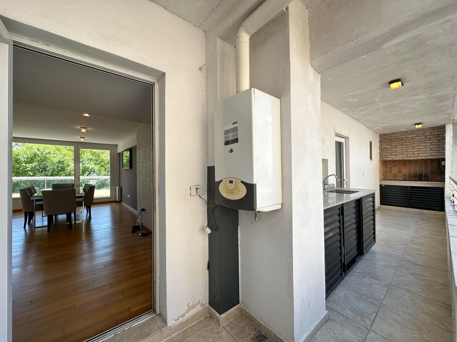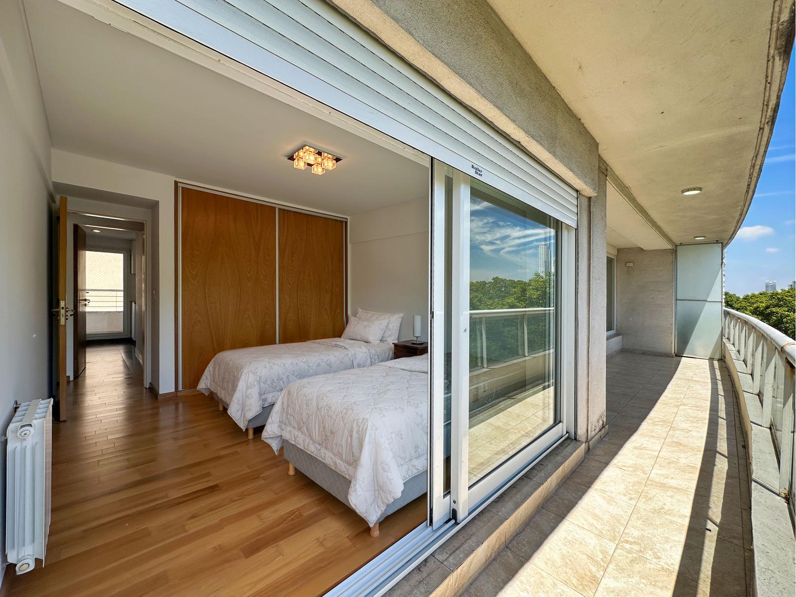 En la primera línea de la ciudad, frente al parque y el río, a 1 cuadra de Bv. Oroño y Pichincha. La zona más buscada de vivienda de Rosario. Departamento premium con vista parcial al río, amenities de pileta y quincho. Cochera incluida. Distribución de planta perfecta con un mega living, seguido de balcón aterrazado al frente Norte, cocina semi separada con lavadero sectorizado y balcón al contra frente con parrillero exclusiva, espacio para mesada y lugar de guardado, baño secundario completo, 2 dormitorios, uno en suite con ante baño, doble circulación y ventilación cruzada de algunos ambientes. Calidad de terminación premium con pisos de madera de ingeniería, aberturas de aluminio de alta gama, cortinas de enrollar eléctricas, cielorrasos con yeso tradicional, placares con interiores en dormitorios, puerta blindada, caldera y radiadores más pre instalación para equipos de aire acondicionado. Cocina con equipamiento completo, muebles en melamina blanca con bajo mesada, alacena, bacha de acero inoxidable, cocina a gas instalada, mesada de granito, espacio para heladera y microondas. Baños con pisos de porcelanato y revestimiento acorde, extractores colocados, bañera con mampara de vidrio, mesada de mármol con bacha blanca, artefactos de loza sanitaria y griferías de primeras marcas, baño principal con ventilación natural. La unidad parece a estrenar con su pintura impecable y sus pisos sin detalles. • Observación: Cochera por monta coches. Se vende amoblado (Mesa living, mesas ratonas, sommier individuales y mesa de luz, televisor) • Ubicación: En la primera línea de la ciudad, frente al parque y el río, a 1 cuadra de Bv. Oroño y Pichincha. La zona más buscada de vivienda de Rosario. • Proyecto: Edificio emplazado en esquina con 2 ascensores, control de acceso, cámaras de seguridad, 4 niveles de cocheras por monta coches. Azotea común con gran quincho, deck con solárium y pileta con vista al río. Son 13 pisos residencial de categoría con un gran palier de entrada. Si querés saber el valor de tu propiedad, contactate con nosotros y tasamos tu propiedad en 48hs.