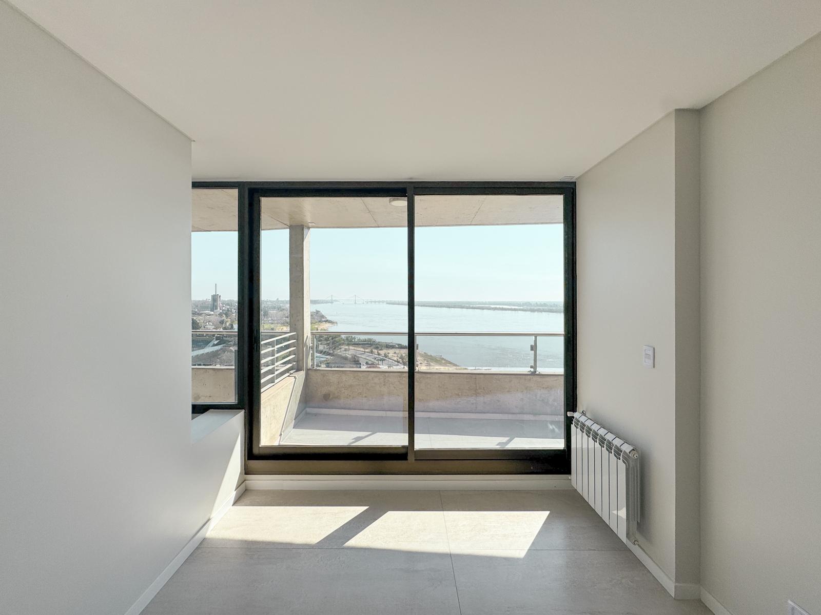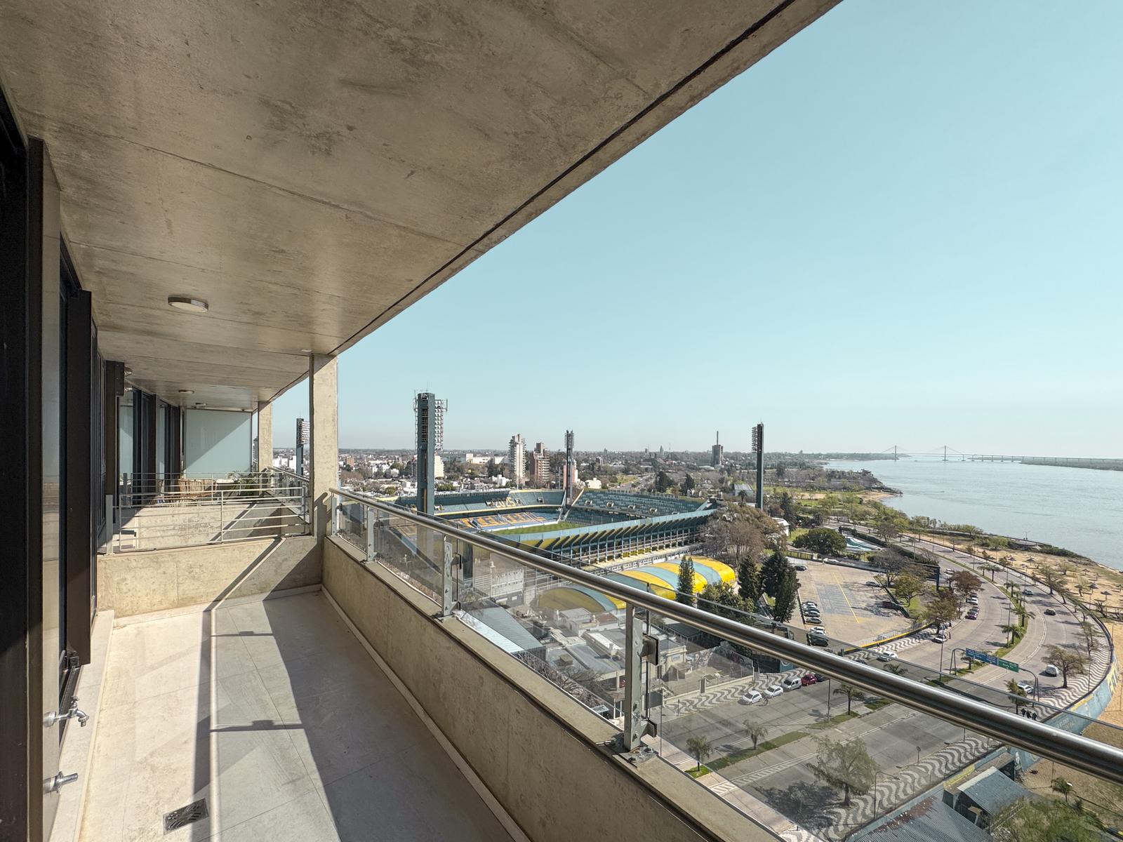 Único departamento en Rosario, con la mejor vista de la ciudad, al río y al puente Rosario-Victoria, completamente orientado hacia el Norte, con un balcón aterrazado gigante, gran living-comedor, cocina con doble mesada separada, lavadero independiente, 2 baños completos y 2 dormitorios, el principal en suite con vestidor. Calidad a estrenar, de la mano de la constructora Fundar, pisos de porcelanato en toda la unidad, aberturas de aluminio con DVH A40 y control solar, barandas en acero inoxidable y vidrio, radiadores instalados, agua caliente central, preinstalación de aire acondicionado, vestidor completo con interiores colocados, baños con revestimiento en paredes, extractores colocados, vanitory, accesorios completos, espejo, plato de ducha y loza sanitaria más griferías de primeras marcas. Amplia cocina con mesadas en silestone, alacenas, bajo mesadas, bacha de acero inoxidable, espacio técnico para microondas, lavavajillas y heladera, anafe y horno eléctricos. Canilla en balcón. Lavadero independiente con bacha y mueble tipo despensa. • Ubicación: Emplazado estratégicamente en la intersección de Bv. Avellaneda y Av. Génova, cuenta con una vista privilegiada del Río Paraná y frente al Estadio gigante de Arroyito. • Proyecto: Brisa es un edificio en torre compuesto por 78 unidades de vivienda de 1, 2 y 3 dormitorios, distribuidos en planta baja y 26 pisos de altura. El proyecto se alza en un entorno natural con más de 1.500m2 de parque donde se encuentra el solárium, pileta y espacios de recreación con juegos para niños. Cuenta con oficinas comunes, Laundry, bicicletero, sala de reunión, playroom, gimnasio y en azotea 2 quinchos exclusivos con parrilleros (completamente equipados) y vista al río. Control de acceso y seguridad 24 horas. 3 ascensores de última generación y 2 subsuelos de cocheras mediante rampa de hormigón y portón automático. Grupo generador para espacios comunes. Generador para espacios comunes, heladeras y toma de emergencia en cada unidad. • Observación: Cocheras opcionales. Agua caliente central. Cuenta con 113m². A estrenar, antigüedad 2023. Final de obra otorgado y luz definitiva conectada. NOTA: Las medidas informadas incluyen el 50% de los muros medianeros y el 100% de los muros interiores. Todas las fotos publicadas son propiedad intelectual de Vanzini Black S.A. No es permitida su utilización comercial. Las medidas y superficies expuestas son estimativas y a corroborar con sus respectivos planos y títulos. La publicación de este inmueble es a solo título informativo, la venta de la propiedad está supeditada a que el propietario cumplimente el trámite ante la AFIP para la obtención del Número de COTI correspondiente. La información no es contractual. Si querés saber el valor de tu propiedad, contactate con nosotros y tasamos tu propiedad en 48hs.