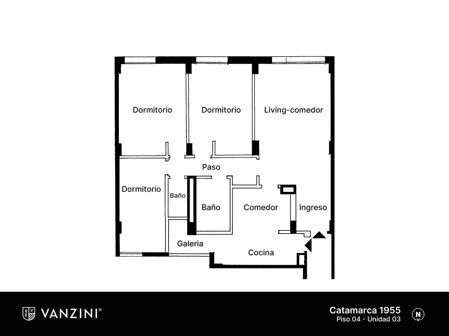 Departamento con 3 dormitorios, 2 baños (uno toilette), doble ingreso, cocina separada y espacio de lavadero. Estructura edilicia solida de época con un amplio living comedor con pisos de madera tipo parque recién pulidos, gran ventanal en aluminio al contrafrente, persianas de PVC y muy luminoso, la cocina cuenta con espacio de bajo mesada y alacenas completas nuevos, calefón Longvie, horno a gas más anafe diferenciado y espacio lavavajillas, revestimiento en paredes y piso de porcelanato, lavadero independiente en balcón cerrado. Los dos dormitorios principales cuentan con placares completos. Baño completo con loza sanitaria y griferías de primeras marcas, revestimiento en paredes hasta el techo, duchador, vanitory y ventilación natural. Calefacción prevista por estufa grande marca Longvie. • Ubicación: En la zona río de Rosario, a pasos de Bv. Oroño y donde todos buscan vivir. • Proyecto: Edificio de planta baja más 8 pisos con 3 unidades por planta, cocheras en PB. Servicio de limpieza y 1 ascensor. • Observación: Escriturado, no apto crédito. Contrafrente. Antigüedad 1971. La propiedad se encuentra reciclada 2025. Superficie de 77,32m2 exclusivos 2,2m2 de tender y 22m2 de muros. Totales 99m2. La cochera es doble pasante y se comparte con otro propietario del mismo edificio. NOTA: Las medidas informadas incluyen el 50% de los muros medianeros y el 100% de los muros interiores. Todas las fotos publicadas son propiedad intelectual de Vanzini Black S.A. No es permitida su utilización comercial. Las medidas y superficies expuestas son estimativas y a corroborar con sus respectivos planos y títulos. La publicación de este inmueble es a solo título informativo, la venta de la propiedad está supeditada a que el propietario cumplimente el trámite ante la AFIP para la obtención del Número de COTI correspondiente. La información no es contractual. Si querés saber el valor de tu propiedad, contactate con nosotros y tasamos tu propiedad en 48hs.