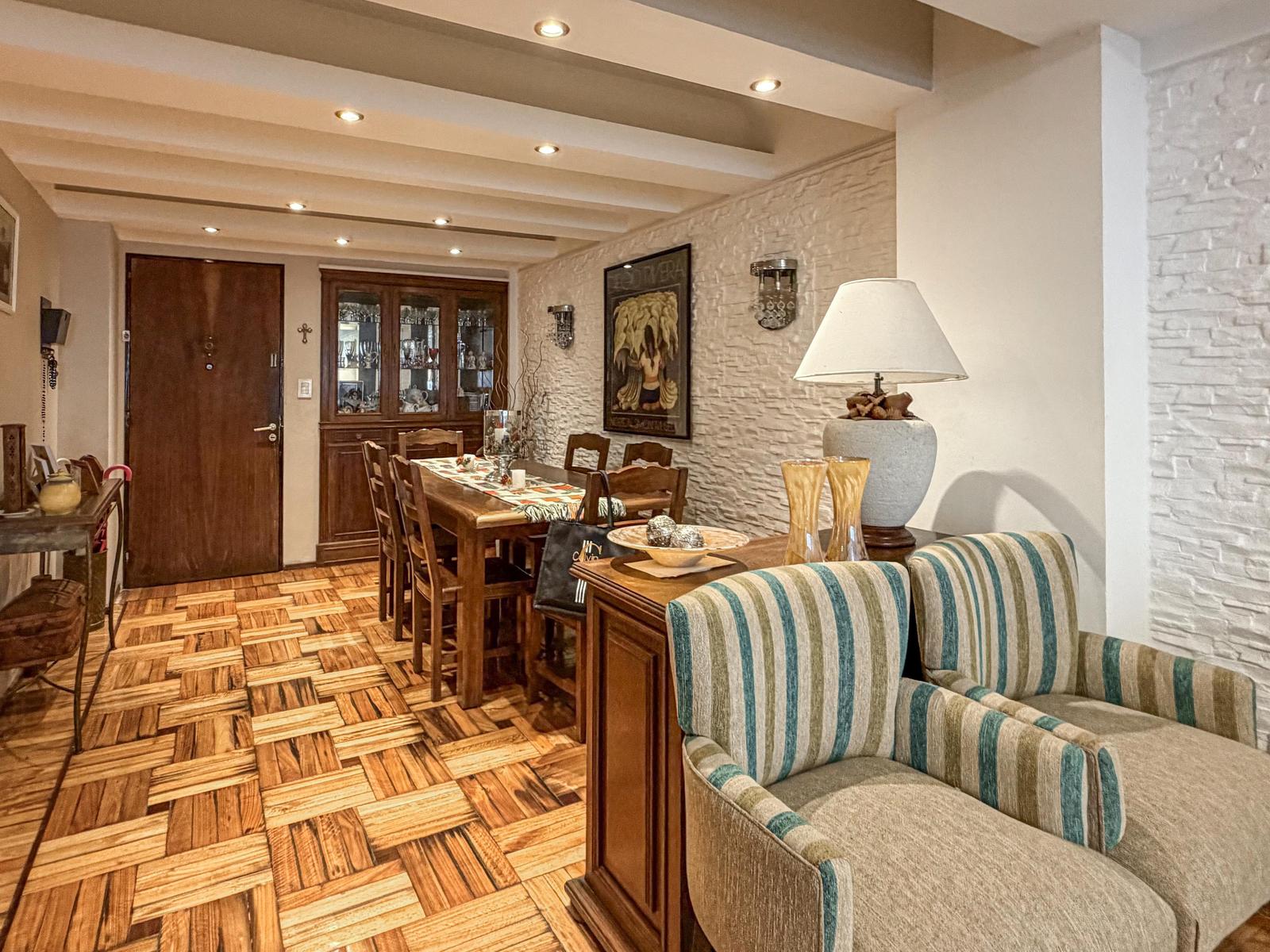 Amplio departamento con ventilación cruzada de 3 dormitorios, desarrollado al frente con balcón y patio exclusivo. Al ingresar nos recibe un living comedor de generosas dimensiones, integrado al living principal con salida al balcón. La cocina se encuentra totalmente independiente, con pisos de porcelanato, mobiliario completo, extractor y espacio para comedor diario. Desde allí se accede al lavadero con conexión para lavarropas, salida inmediata al patio con pileta y al cuarto de servicio. El sector íntimo dispone de tres dormitorios con placares empotrados: dos al frente (uno con salida al balcón) y uno al contrafrente con ingreso al patio. Pisos de madera en living comedor y dormitorios; porcelanato en cocina, aberturas metalicas con persianas de enrollar. Sistema de calefacción central por aire y climatización por aires split. Agua caliente por calefón. Gas Regularizado • Proyecto: Acceso con puerta de ingreso con pin electrónico y puerta de vidrio antirrobo. En planta baja funciona un local comercial actualmente aprovechado como dietética. Edificio de planta baja más 9 pisos, dos departamentos por planta y dos ascensores. Servicio de limpieza tercerizado y cámaras de seguridad. • Ubicación: Pleno centro de Rosario, a media cuadra de Av. Pellegrini. En la esquina se ubica el emblemático McDonald’s 24 horas. Calle Corrientes con dirección hacia el centro y el río. Zona con excelente conectividad y servicios. • Observaciones: Declaratoria de herederos realizada; resta finalizar la sucesión una vez exista un interesado. Año de construcción 1975. No cuenta con cochera, opción amueblado. Permuta. Superficie cubierta de 116,52m², superficie semicubierta: 10,69 m² de patio, muros 32m², total 148,52m² NOTA: Las medidas informadas incluyen el 50% de los muros medianeros y el 100% de los muros interiores. Todas las fotos publicadas son propiedad intelectual de Vanzini Black S.A. No es permitida su utilización comercial. Las medidas y superficies expuestas son estimativas y a corroborar con sus respectivos planos y títulos. La publicación de este inmueble es a solo título informativo, la venta de la propiedad está supeditada a que el propietario cumplimente el trámite ante la AFIP para la obtención del Número de COTI correspondiente. La información no es contractual. Si querés saber el valor de tu propiedad, contactate con nosotros y tasamos tu propiedad en 48hs.