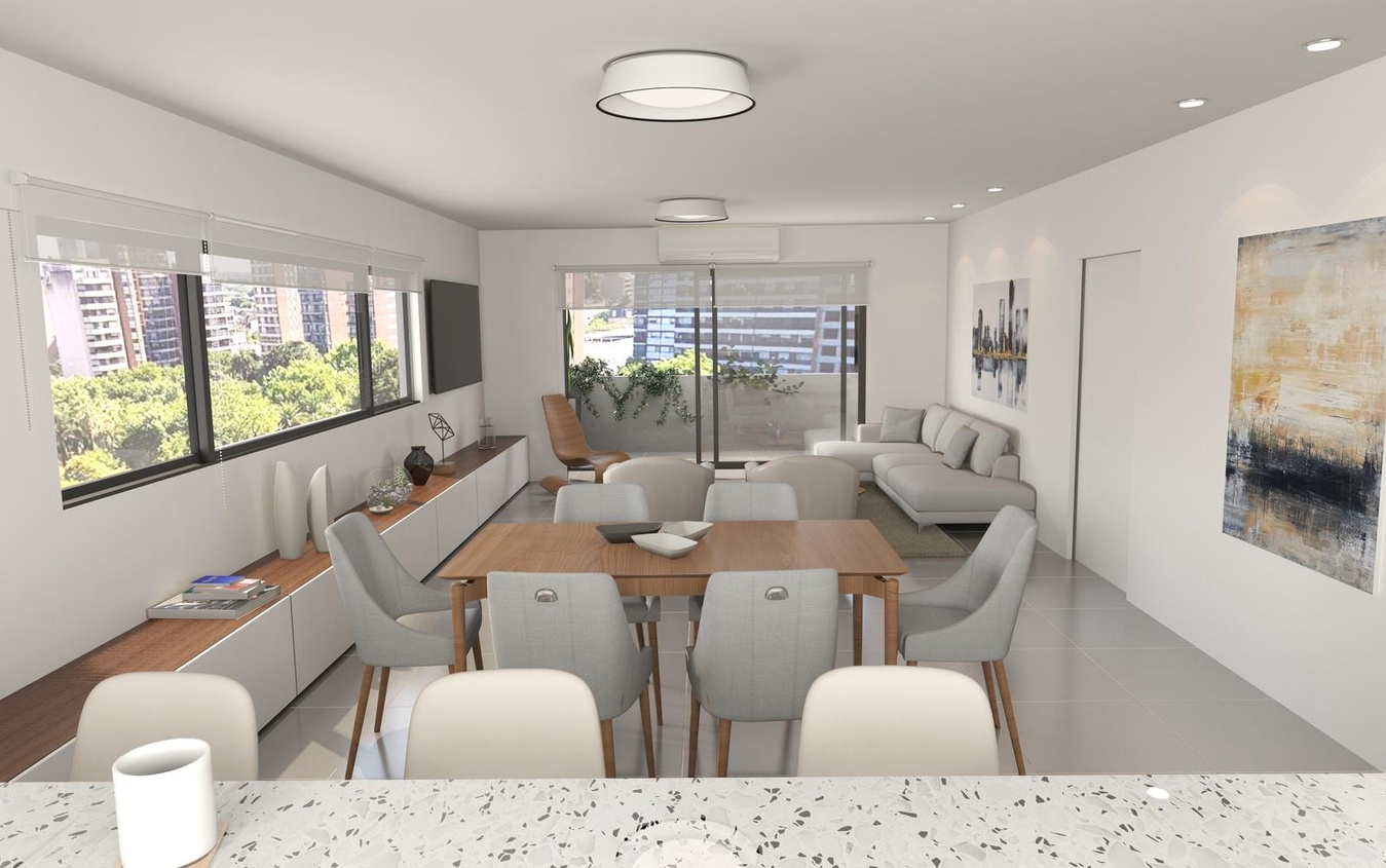 Departamento de dos dormitorios en piso exclusivo. Compuesto por un amplio living comedor y cocina semi separada por una barra. Balcón corrido al frente con accesos desde habitación principal y estar comedor. En el intimo se desarrollan dos dormitorios, el principal en suite y el secundario con placar. Baños completos con ante baño. Esta unidad cuenta con ventilación cruzada GENERALIDADES El edificio se desarrolla en 8 plantas con pisos exclusivos de 2 dormitorios orientados al norte que ofrecen una hermosa vista a Bv. Oroño . Materiales de primera línea, terminaciones de calidad y diseño. Cocheras disponibles en el proyecto. UBICACION Quality 9, esta ubicado sobre calle Santa Fe casi esquina Bv. Oroño . En una zona privilegiada por estar a pasos del Boulevard y a pocas cuadras del centro de la ciudad. TERMINACIONES - Cocina: pileta Johnson, grifería monocomando Peirano - Mesada de granito Ebony Cristal, muebles bajo mesada y alacena en melamina blanca con cierre amortiguado - Ccocina a gas de alta gama + horno eléctrico. - Carpintería: puertas interiores en melamina Plack Full o similar, puerta de seguridad en ingreso con cerradura especial. - Vidrios: DVH y doble laminado según aberturas. - Pisos: porcelanato de primera calidad. - Estructura de Hormigón Armado con sectores y detalles de hormigón a la vista. - Basamento sobre pilotes y cabezales de hormigón armado. - Se colocarán pisos y zócalos de porcelanato de primera calidad AMENITIES - Quincho con parrillero FECHA DE ENTREGA Noviembre 2026 FORMA DE PAGO Contado. Financiación: anticipo del 30% + cuotas ajustadas al CAC.