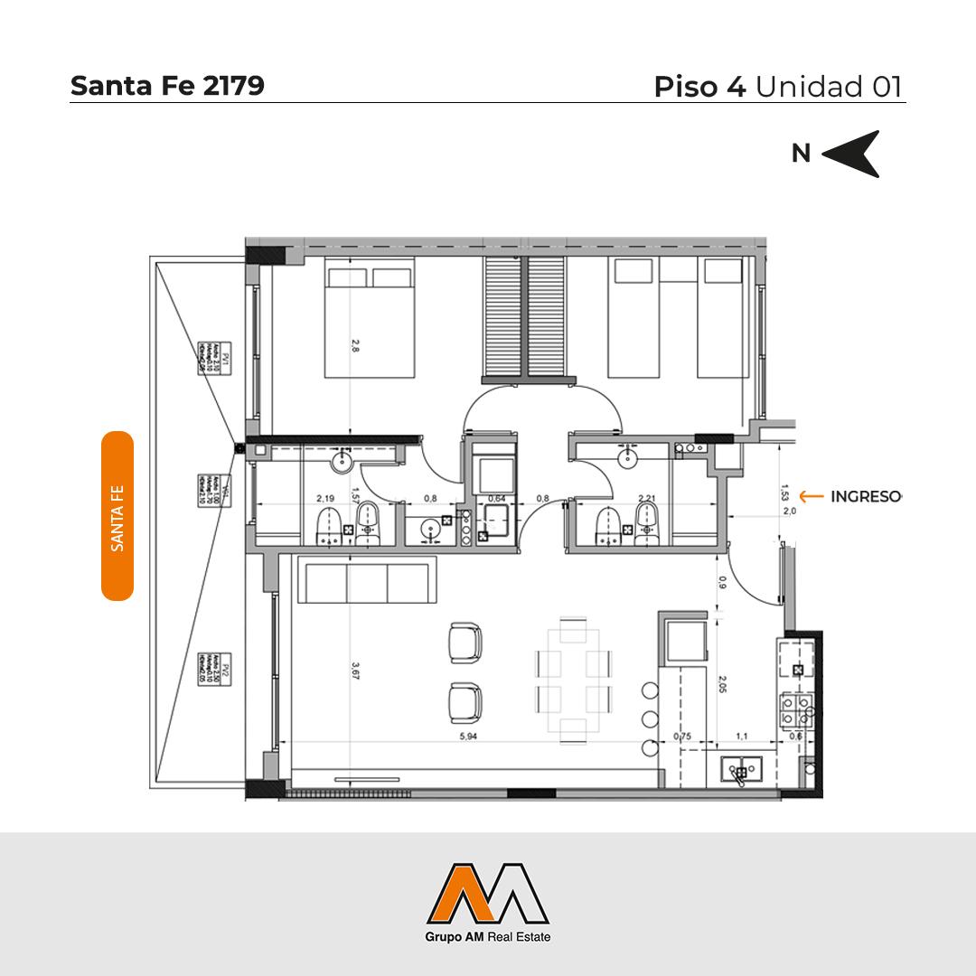 GRUPO AM REAL ESTATE: Santa Fe 2179. Piso 4. Unidad 01 u$s181000 (3413029102)