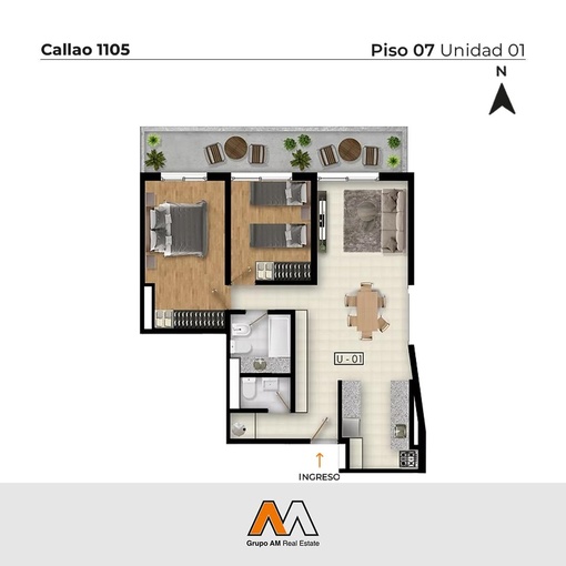 GRUPO AM REAL ESTATE: Callao 1105. Piso 7. Unidad 01 u$s158000 (3413029102)
