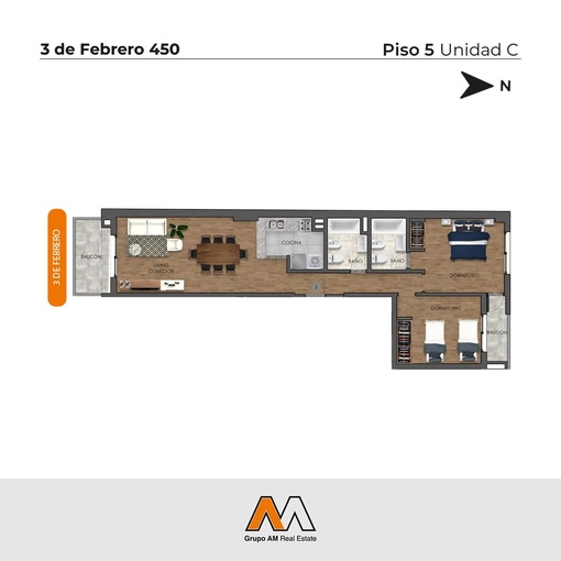 Departamento de dos dormitorios. Compuesto por un living comedor, cocina semi separada por una barra y balcón al frente con acceso desde el estar comedor. Dormitorio principal en suite con placar. Dormitorio secundario con acceso a un balcón al contrafrente y placar. Baños completos. COCHERA No incluida en el precio, valor USD 19.000 GENERALIDADES El edificio se desarrolla en dos bloques de 9 plantas que posee unidades de un dormitorio, dos dormitorios y ambientes únicos. Cuenta con tres niveles de cocheras, SUM y áreas de esparcimiento, parrillero, piscina y solárium. Las unidades disponibles tienen una disposición habitual para cada tipología. UBICACION El edificio se encuentra a pocas cuadras del Monumento a la Bandera, facultades, sanatorios y Estación Fluvial. También se destaca por su cercanía al Parque Urquiza. AMENITIES - Pileta - Solárium - SUM - Quincho con parrillero TERMINACIONES - Pisos de madera flotante y porcelanato de primera línea para espacios húmedos de cocina y baños. - Cocina completa con muebles de alacena y bajo mesada - Bacha de acero inoxidable - Artefactos de baños completos con griferías de primeras marcas - Placares con interiores (cajoneras y barral) - Aberturas en aluminio con DVH (doble vidriado hermético) - Persiana de enrollar en PVC - Horno visor con anafe. - Cuentan con calefón para unidades de 2 dormitorios, termotanque para 1 dormitorio y monoambientes, pico de gas para calefactores en living-comedor. ESPACIOS COMUNES – Ingreso a Cocheras automatizado. – Control de acceso. - Puerta de ingreso al edificio con cerradura magnética. – Ascensores con puertas automáticas. – Aberturas exteriores de aluminio de primera línea en cocinas, baños, espacios comunes y monoambientes. FECHA DE ENTREGA Julio 2026 FORMA DE PAGO Contado. Entrega del 75% + 9 cuotas.