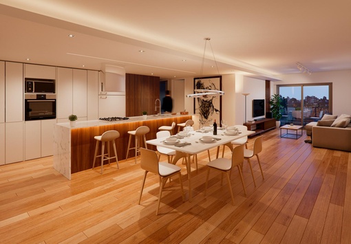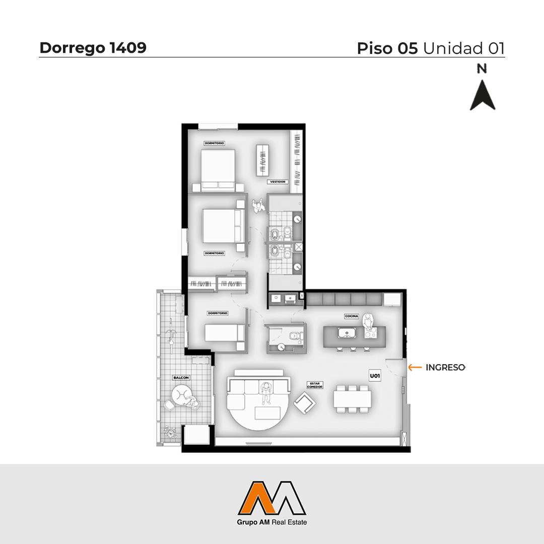 Departamento de 3 dormitorios en Dorrego 1409, Entre 9 de julio y Zeballos | Zona Centro. Piso 05. Unidad 01 Compuesto por un amplio living comedor y cocina integrada con una isla. Balcón corrido al frente. En el intimo se desarrollan tres dormitorios, el principal en suite con vestidor mientras que uno de los secundarios con acceso al balcón, ambos con placares. Baños completos y toilette. GENERALIDADES Emprendimiento residencial de calidad premium con las siguientes características: - Planta baja (con local comercial), 8 pisos de viviendas y 2 niveles de subsuelo para cocheras con montacoche. - Tipologías: Departamentos monoambientes, de 1, 2 y 3 dormitorios (incluyendo opciones en dúplex y tríplex). IMAGENES ILUSTRATIVAS DEL PROYECTO UBICACION Edificio emplazado en una esquina estratégica del Barrio Centro. En la intersección de calle Dorrego 1409 y 9 de Julio. Su ubicación destaca por la cercanía a Bv. Oroño, Av. Pellegrini, zona de facultades, locales gastronómicos y comerciales. TERMINACIONES El proyecto utiliza materiales orientados a una arquitectura moderna y funcional: - Pisos: porcelanato en ambientes principales. - Cocina: Mobiliario completo de bajo mesada y alacena con perfiles de aluminio; mesada de granito, bacha Johnson de acero inoxidable y grifería FV. Incluye horno empotrado y anafe. - Dormitorios: Placares con frentes de melamina (18 mm) y kit de aluminio para sistema corredizo. - Climatización: Equipado para calefacción por caldera/radiadores o pre-instalación de aire acondicionado (según unidad). - Aberturas: Balcones amplios al frente con cerramientos de alta calidad. AMENITIES - Quincho - Parrillero - Piscina - Solárium de uso común FECHA DE ENTREGA Mayo 2026 FORMA DE PAGO A convenir