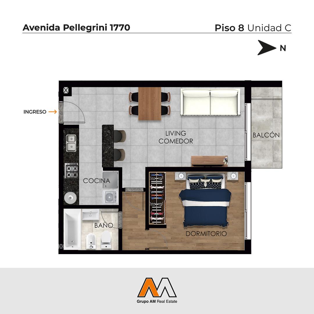 Departamento de un dormitorio. Compuesto por un living comedor, cocina semi separada por una barra y espacio para lavadero. Balcón al contrafrente con acceso desde el estar comedor. Dormitorio con placar. Baño completo. GENERALIDADES Scuba 52 es una torre moderna de 13 plantas con departamentos de uno, dos y tres dormitorios, y monoambientes. Dos niveles de cocheras con un enchufe de cargador para auto eléctrico por planta. OBSERVACION Edificio sustentado por paneles solares. UBICACION Este proyecto se encuentra a escasos metros de los mejores restaurantes, bares, centros comerciales, universidades y centros de salud TERMINACIONES - Amplios espacios y luminosidad natural. - Preinstalación de aire acondicionado. - Carpintería de aluminio con DVH. - Pisos de porcelanato. - Cocina completa con mesada de granito y anafe a gas. - Baños con bañera o ducha y grifería de primera línea. AMENITIES - Dos niveles de cocheras con un enchufe de cargador para auto eléctrico por planta. - SUM con expansión, parrillero y amenities. - Espejo de agua - Solárium - Gimnasio. FECHA DE ENTREGA Diciembre 2025 FORMA DE PAGO Contado