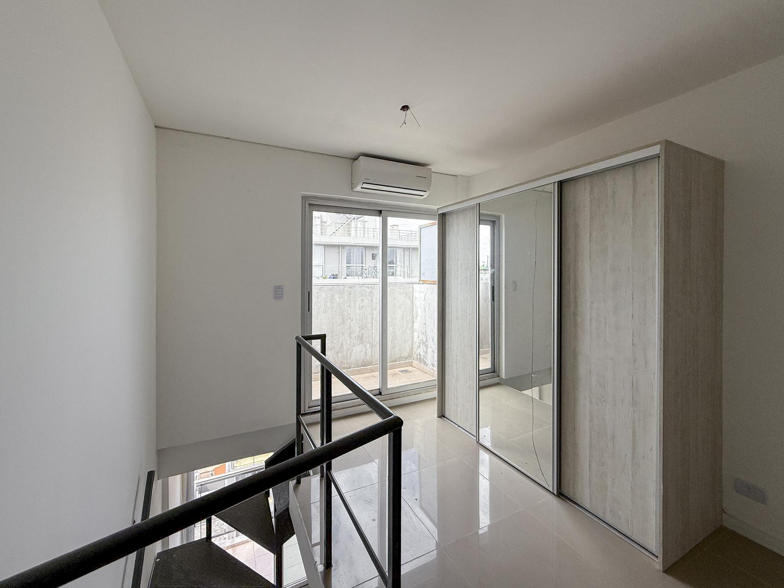 Departamento a estrenar tipo dúplex de 1 dormitorio con 2 baños, uno en suite, espacio para lavarropas, doble balcón y al frente. Calidad moderna con pisos de porcelanato, aberturas de aluminio con DVH, 2 equipos de aire acondicionado frío/calor instalados, placares completos e interiores colocados y puerta espejo, cortina con bandas horizontales colocada, agua caliente por termotanque eléctrico y escalera metálica. Cocina con mobiliario completo de bajo mesada, alacena, bacha de acero inoxidable, espacio técnico para heladera y lavarropas, mesada de granito con anafe eléctrico y horno empotrado. Baños con revestimiento en paredes, loza sanitaria y griferías de primeras marcas, duchador, vanitory, accesorios y espejos colocados. • Proyecto: Edificio DOT de planta baja más 11 pisos con 1 ascensor, cocheras y local comercial en PB, además cuenta con cámaras de seguridad y control de acceso. • Ubicación: Sobre el corredor urbano de Av. Francia, próximo al centro de la ciudad y de la zona facultades. • Observación: Antigüedad 2021, a estrenar. Opcional de cochera. Escrituración inmediata, no apto crédito. Último piso. Cuenta con 68m² totales con semicubiertos y parte de comunes. Edificio eléctrico. NOTA: Las medidas informadas incluyen el 50% de los muros medianeros y el 100% de los muros interiores. Todas las fotos publicadas son propiedad intelectual de Vanzini Black S.A. No es permitida su utilización comercial. Las medidas y superficies expuestas son estimativas y a corroborar con sus respectivos planos y títulos. La publicación de este inmueble es a solo título informativo, la venta de la propiedad está supeditada a que el propietario cumplimente el trámite ante la AFIP para la obtención del Número de COTI correspondiente. La información no es contractual. Si querés saber el valor de tu propiedad, contactate con nosotros y tasamos tu propiedad en 48hs.
