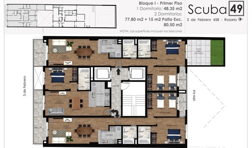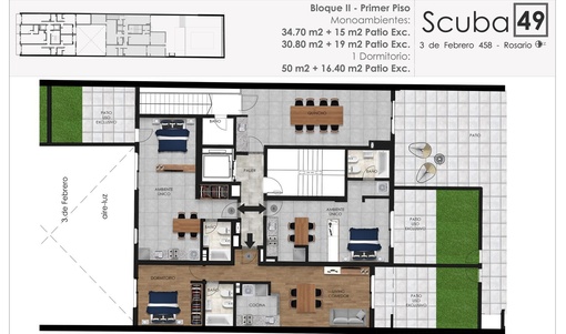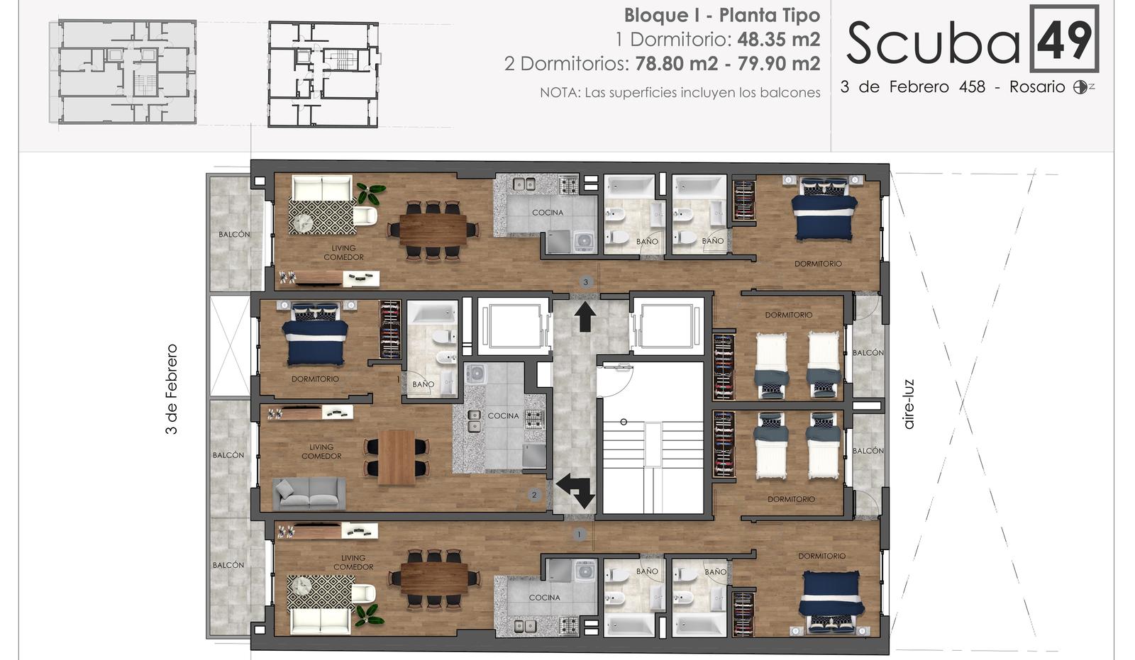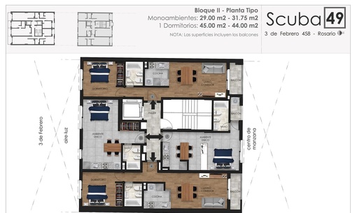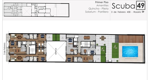 En barrio Martin sobre calle 3 de Febrero 458, a pocas cuadras del parque Urquiza y del monumento a la Bandera, se ubica el SCUBA 49. Edificio con dos bloques de 9 plantas que posee unidades de un dormitorio, dos dormitorios y ambientes únicos. Cuenta con 3 niveles de cocheras, SUM y áreas recreativas con parrillero, piscina y solárium. Fecha de Entrega: JUNIO 2026 Amenities Panel solar Portón eléctrico Llave eléctrica Cargador coche eléctrico Solarium Quincho Pileta Parrilla Cochera Código del inmueble: CAP6147938 Encontrá todas nuestras propiedades en: cccarlachiani. com. ar C.I. Mauro Carlachiani Mat. N° 280 *Toda la información y medidas provistas son aproximadas y deberán ratificarse con la documentación pertinente y no compromete contractualmente a nuestra empresa. Los gastos (Expensas, API, TGI, AGUAS, etc.) expresados, refieren a la última información recabada y deberán confirmarse. Fotografías no vinculantes ni contractuales.