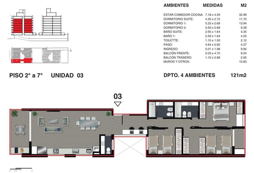 Departamento al frente de 3 dormitorios con ventilación cruzada. Ingreso a amplio living-comedor con salida al balcón hacia la calle Sector de cocina integrada muy completa y equipada Conexión para lavarropas Íntimo con lugar para escritorio 3 Dormitorios con placares completos (principal con doble placard). Secundario con vestidor. 2 baños completo (principal en suite) Toilette de rececpción Balcón al frente y al contrafrente con salida del dormitorio secundario. TERMINACIONES Ingreso: . Control de acceso en puerta principal, ascensores y espacios comunes. Cámaras de vigilancia estratégicas. . Portón automatizado. . Iluminación inteligente en espacios comunes. . Ascensores de última generación, en acero inoxidable, espejos y mármol. Departamentos . Aberturas de aluminio y vidrio higrotérmico. . Puertas de seguridad. . Revestimientos en porcelanato y cerámicos. . Amoblamiento de cocina completo con alacenas y bajo mesadas. Mesadas de Silestone, granito o similar. . Caldera a gas. Calefacción por radiadores (provistos) . Anafe a gas. Horno eléctrico. Purificador. . Instalación para aire acondicionado, TV por cable, teléfono e internet. . Equipamiento completo de baños, con espejos y accesorios. Sanitarios y griferías. . Iluminación inteligente en baños. . Interiores de placares completos. Frente con espejos. . Espacio e instalación para lavarropas. . Balcones con mesada y grill eléctrico. Código del inmueble: CBU67684 AP7483049 Encontrá todas nuestras propiedades en: cccarlachiani. com. ar C.I. Mauro Carlachiani Mat. N° 280 *Toda la información y medidas provistas son aproximadas y deberán ratificarse con la documentación pertinente y no compromete contractualmente a nuestra empresa. Los gastos (Expensas, API, TGI, AGUAS, etc.) expresados, refieren a la última información recabada y deberán confirmarse. Fotografías no vinculantes ni contractuales.