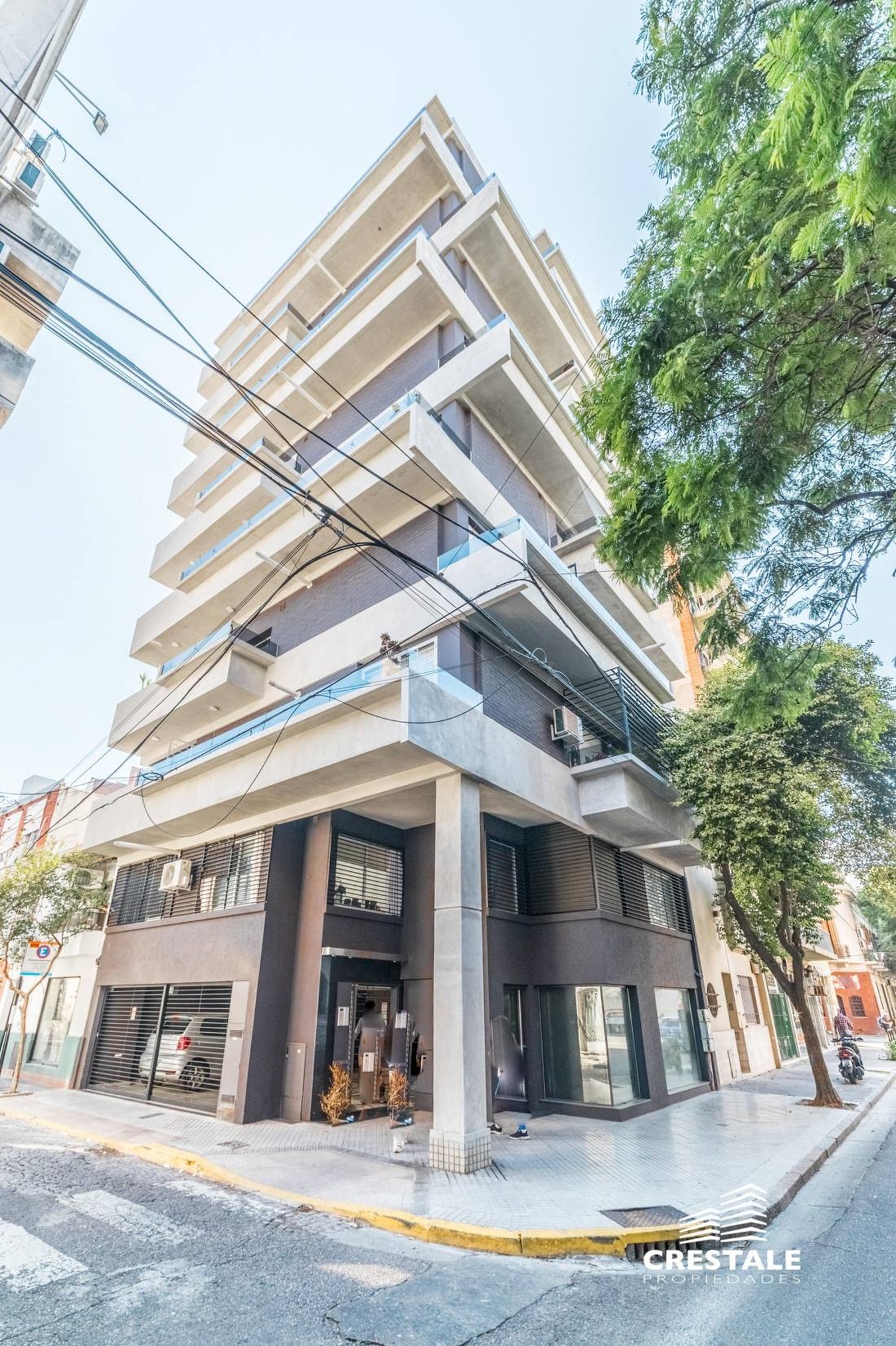 Ingreso a un amplio living comedor con salida directa a un balcón corrido que da a la calle 9 de Julio. La cocina está semiseparada, ofreciendo una disposición práctica. El dormitorio principal cuenta con baño completo en suite. El sistema de calefacción es por radiadores (radiadores no instalados). CARACTERISTICAS GENERALES Edificio en construcción de excelente calidad constructiva. Ubicación destacada: A media cuadra de Bv. Oroño, compuesto por departamentos de 1 dormitorio. TERMINACIONES Ascensor con puertas automáticas; Puertas de seguridad en ingreso a los departamentos; Puertas placa interiores a medida; Aberturas de aluminio color; Pisos en estar-comedor y cocina de porcelanato; Piso flotante en íntimo y dormitorios; Dormitorios y living con persianas de enrollar o corredizas; Placares: 2 hojas corredizas en laminado color blanco con marcos de aluminio e interiores terminados; Cielorrasos y paredes terminados con enlucido de yeso y pintura látex satinado mate color blanco; Muebles de cocina a medida en laminado blanco; Bajo mesada con manijas perfil “J” y alacenas con puertas de melanina blanca con marcos de aluminio; Mesada de mármol granito gris mara; Bacha de acero y grifería monocomando FV; Anafe sobre mesada a gas; Horno eléctrico empotrado bajo mesada y purificador marca Longvie; Baños: revestidos con cerámicos base porcelanato; Loza de baño marca Ferrum línea Bari y vanitory; Grifería marca FV; Cañería instalada para aire acondicionado; Caldera Peisa Mini Duo con cañería para calefacción y agua caliente sin radiadores. FORMA DE PAGO Contado y financiación. Código web: CAP2576690