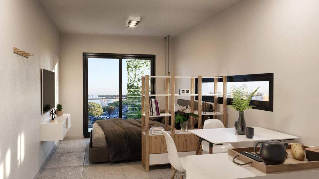 Departamento monoambiente con ingreso a estar comedor integrado con cocina integrada y salida directa a un balcón al frente sobre el Pje. Noruega. Baño completo. Diseño funcional que prioriza iluminación y ventilación natural en todos los ambientes principales. Edificio en construcción sobre Av. Francia, en el tradicional barrio Lourdes de Rosario, con fecha estimada de entrega en septiembre de 2026. Su ubicación estratégica brinda rápida conexión con toda la ciudad, destacándose la cercanía al Parque Independencia, principal pulmón verde de Rosario, y a importantes instituciones educativas como la Facultad de Medicina, la Facultad de Ciencias Bioquímicas y Farmacéuticas y la Facultad de Odontología (UNR). El entorno combina espacios residenciales, comercios de proximidad y un acceso ágil a corredores clave como Av. Pellegrini y Bv. Oroño. El proyecto se desarrolla en planta baja y 13 pisos, con unidades modernas, funcionales y luminosas, y una terraza de uso común que invita a disfrutar al aire libre. AMENITIES Terraza de uso común; Solárium; Parrillero TERMINACIONES Pisos de porcelanato de primera calidad; Carpinterías de aluminio con DVH; Interiores de placares completos; Cocina equipada con bajo mesada y alacenas; Mesadas de granito; Artefactos de cocina de primera marca; Griferías y sanitarios de calidad; Instalación prevista para aire acondicionado split; Preinstalación para calefacción FORMA DE PAGO Financiación. Contado. COCHERA Consultar.Código web: CBU66337 AP7811977